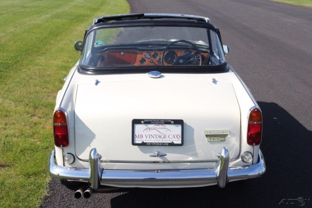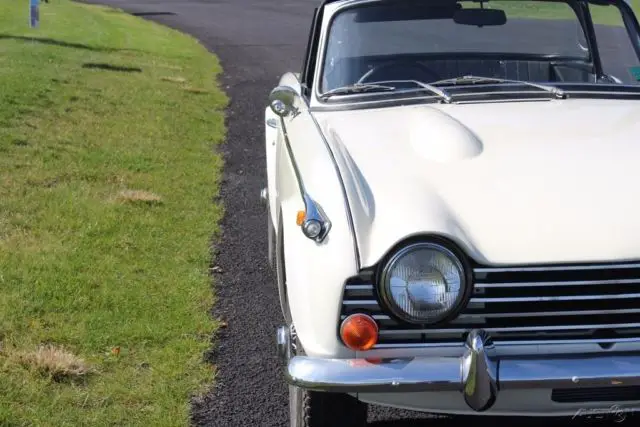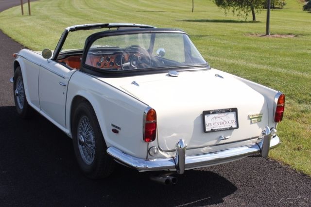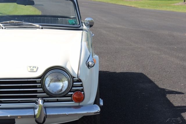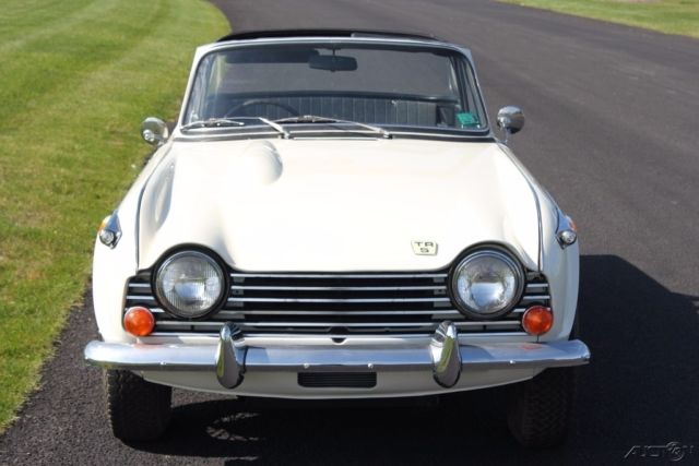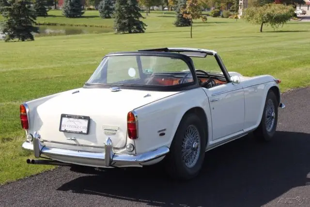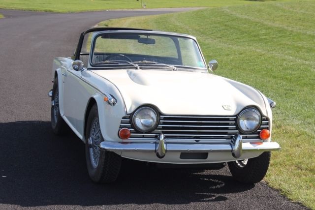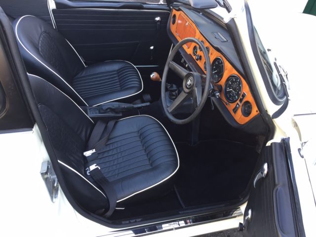 A 1968 Triumph TR5 PI Roadster, RHD, all matching numbers. White with a black leather interior. Wire wheels. Overdrive.
