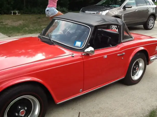 1974 Tiumph TR6. Red body, Black Convertible top. Very Low Milage 32,954. Garage kept for many years. Local pick up. Located in Ocean County, NJ. Must See.