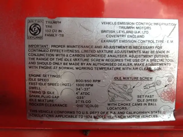 1974 Triumph TR-6 Additional Info: