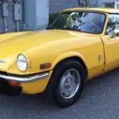 1973 TRIUMPH SPITFIRE Roadster. Yellow with saddle interior and a black soft top. This is a driver quality vehicle. It runs and drives well and turns heads everywhere. The soft top is in good condition and shows little wear. The mileage is believed to be original. - Contact Sales Department at 215-795-5931 or for more information. -