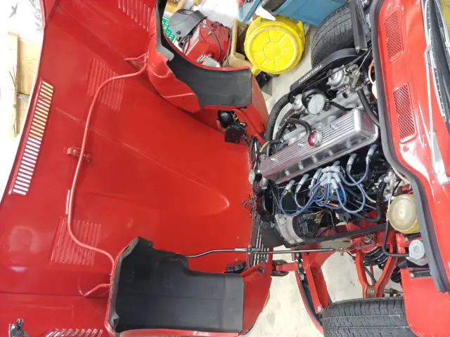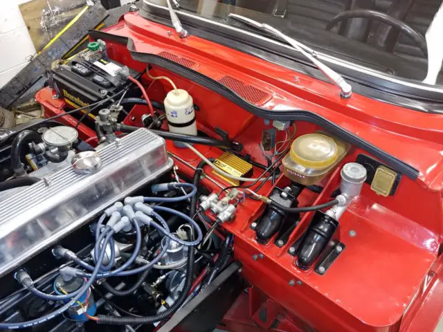 There was a small hole at the driver’s feet in the floorpan. This was cut out with a new panel welded in by a professional and seam sealed. The entire underside of the car was treated with undercoating. At the time of the 1989 restoration, an all steel front valance was not available, so the front valance is fiberglass. There is no evidence of accident damage and the valance was replaced due to superficial damage.