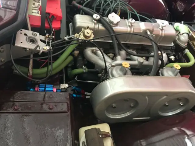 Listed below are all the items that go with the car as well as five original wheels and the original steering wheel.* New exhaust header ceramic wrapped* New Monz exhaust system* Stainless pipes connecting header to muffiens* Stainless exhaust rubber mounted hangar* New shocks and springs* New front disk brakes* New firmed rear drums and shoes* New fuel tank & lines* New fuel pump & aeroquip fuel lines and filter( this solved the vapor locking problems some TRs have in the summer)* New Motolita wood steering wheel( $400). factory original steering wheel goes with car.* New Burl wood shifter knob ($100), original goes with the car* New optima battery with Lucas Sticker* Numerous electrical items have been replaced including new ignition switch, LED brake lights, head light relay, new tail light lenses, new turn signal assembly* New Moss starter* Newspin on oil filter assembly. Makes changing oil a breeze.* New slave cylinders with adjustable linkage(original was not adjustable) and new reservoir* New Patronic ignition and correct new wires. The distributor had been replaced previously* New green correct water heater, hoses and clamps. (Very few you see on the internet have correct clamps)* Radiator Recored - runs very cool* Valve cover & air cleaner bead basted and powedered to the correct color. New air filters.* New emergency hood release. (The factory hood release is noted for failing)* Five Vredestien classic tires - appear as new* Spare original wheel was bead blasted and powder coated to the original gray color* New original spare tire hold down key* New moss truck surround panels* New trunk carpet. Paint in trunk. Trunk shows as new. Jack painted Carmine as car. Moss Whitworth 8 piece leather wrapped tool set* 4 books on shop manuals, restoration, and history go with the car. The Moss complete service book shows every assembly in great detail and how to fix($100).* 3 point shoulder harness* New 2 point lap belt goes with car-not installed. I find the 3 point shoulder harness a pain to use to use* New roll bar painted perfect match to car color.* New bullet mirrors* Numerous small items to bring the car to original specs.* receipts for these and many small items go with the car.