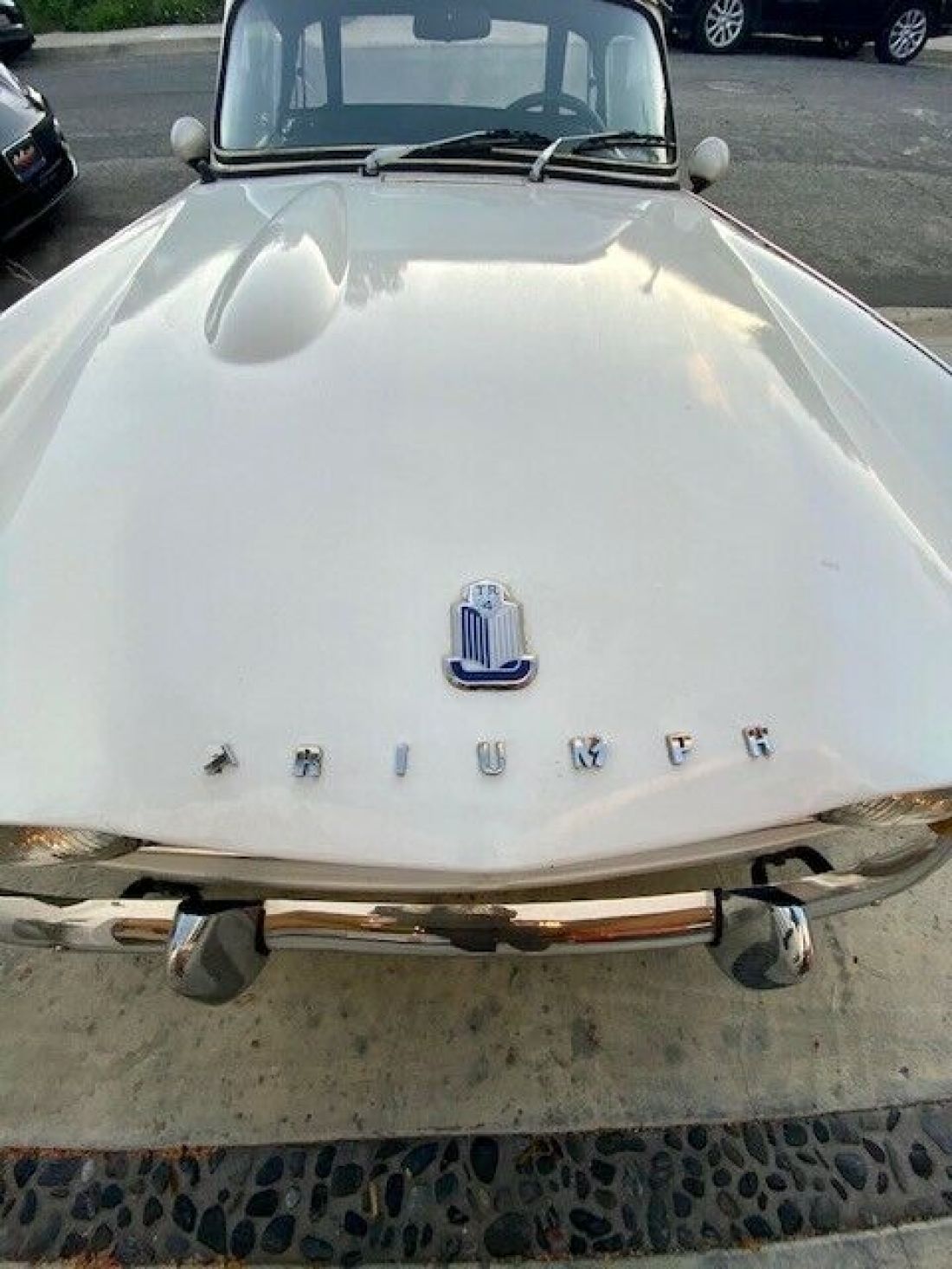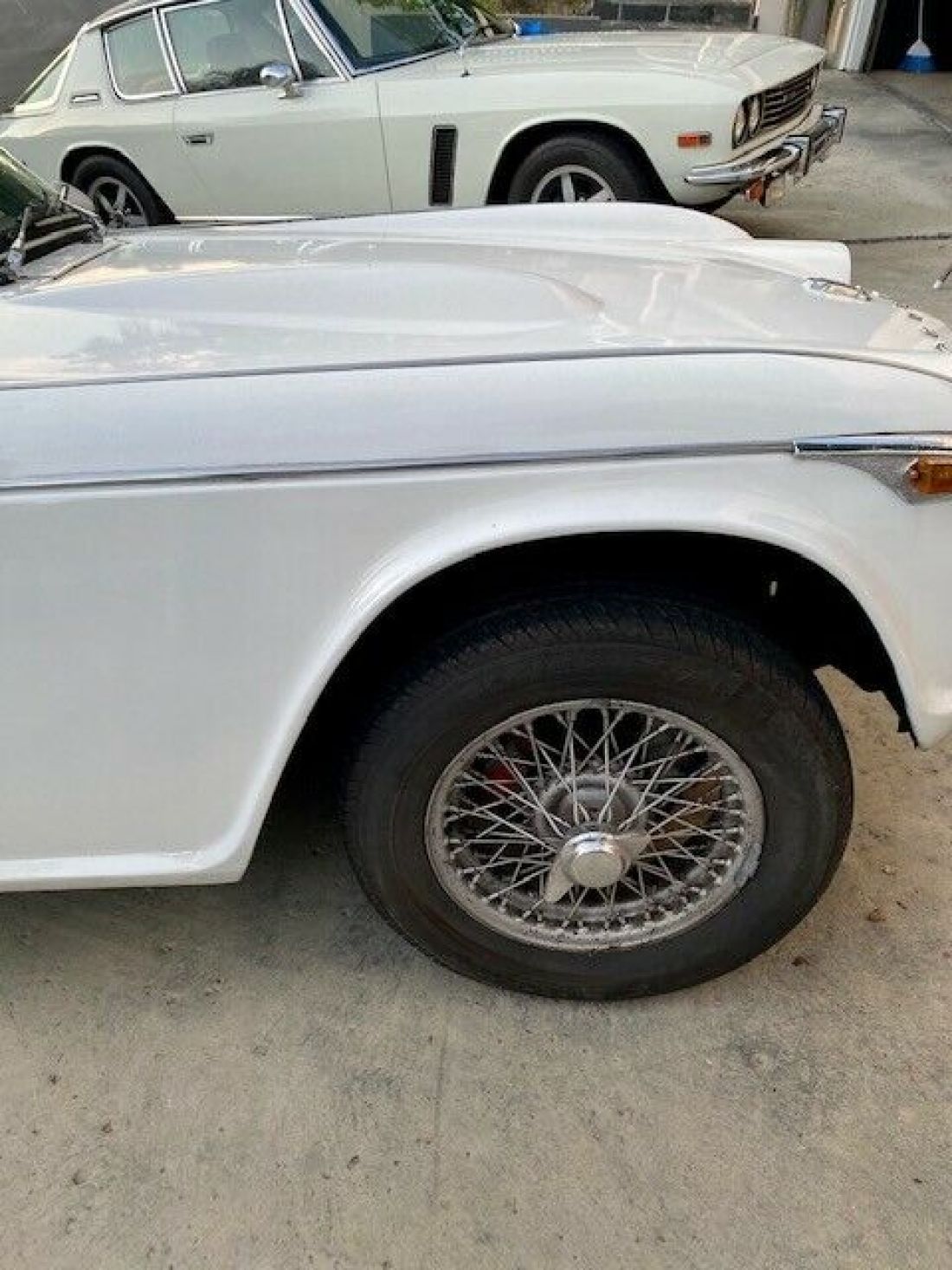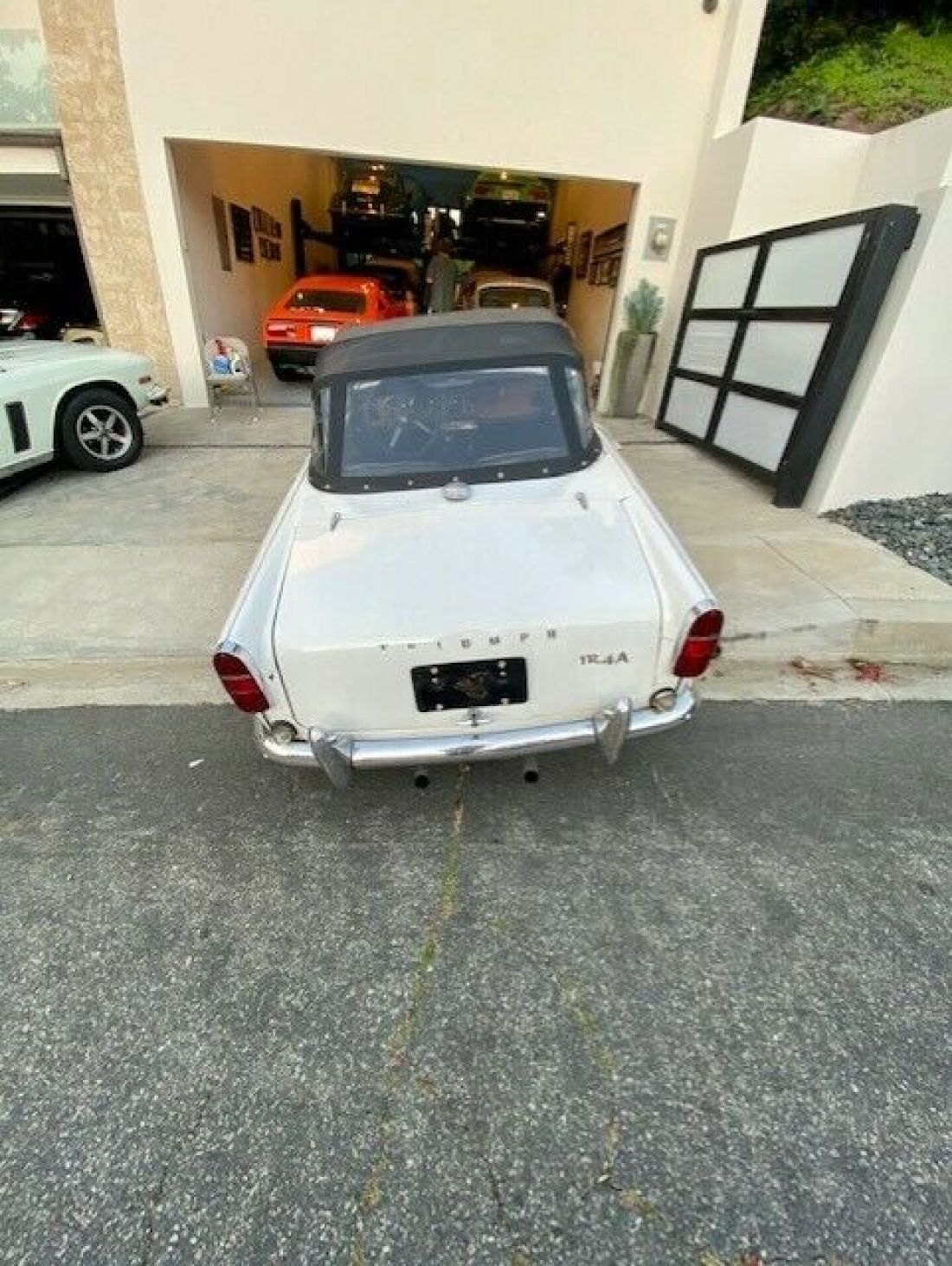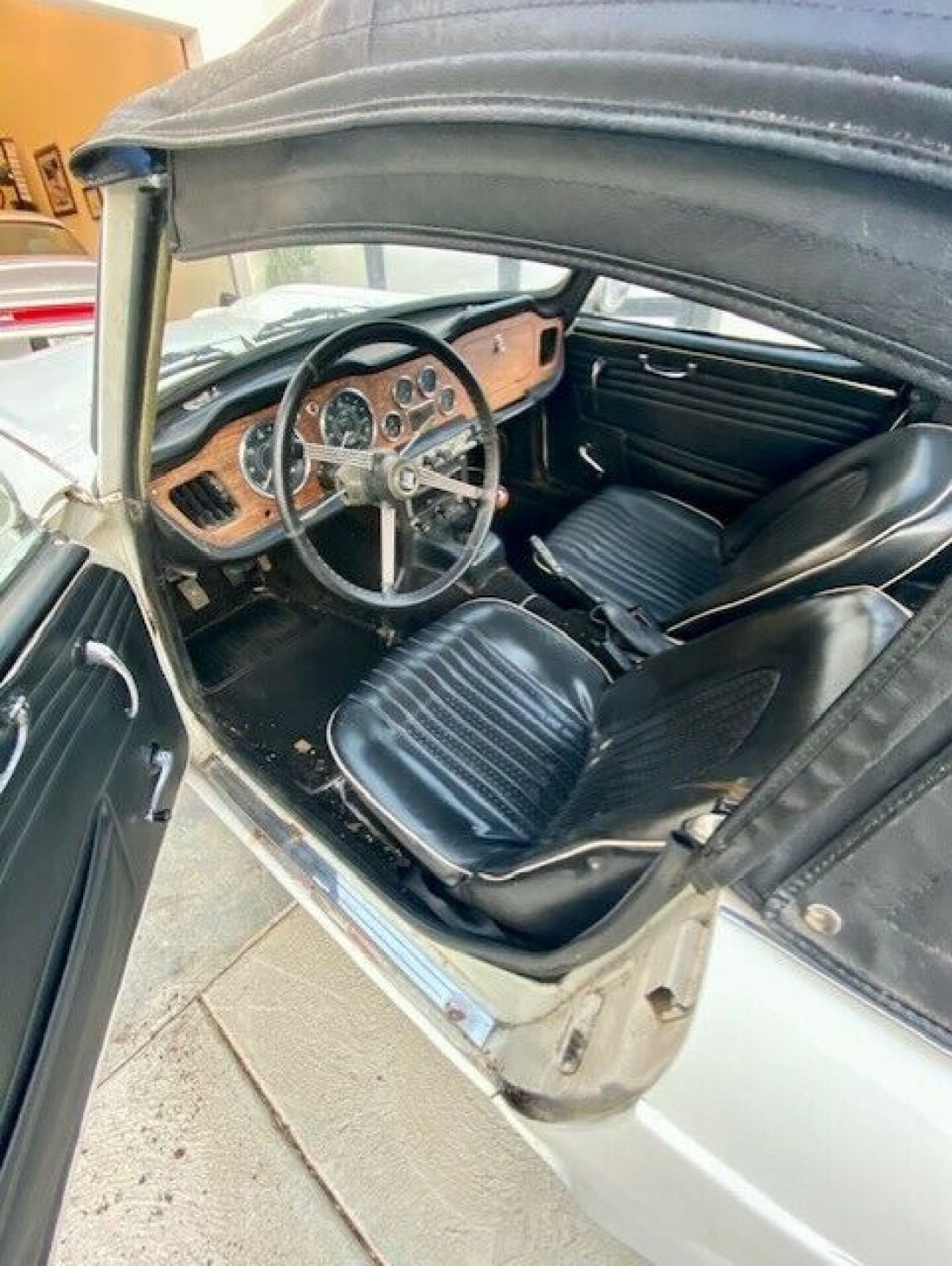 1967 TRIUMPH TR4 with rare overdrive option. The car runs and drives well. The engine is strong and transmission and clutch operate well. The engine does not smoke and the car starts running immediately upon turning the ignition on. Car is white over black, numbers matching, and can be driven and fixed up as you go or is an excellent candidate for a ground-up restoration. The car has a clean title. The top has no rips or tears. The car is an original survivor. The car is sold as-is. Please phone or text on (310)990-8772.