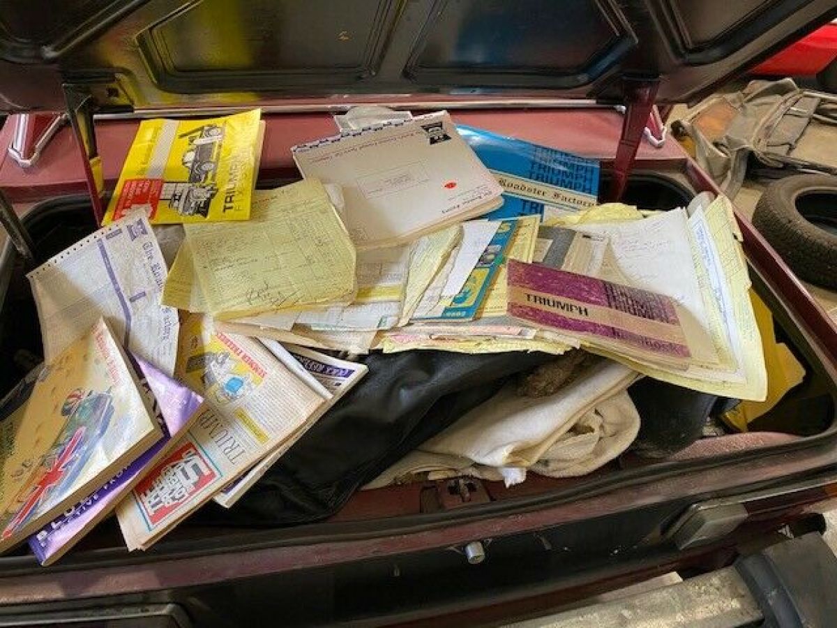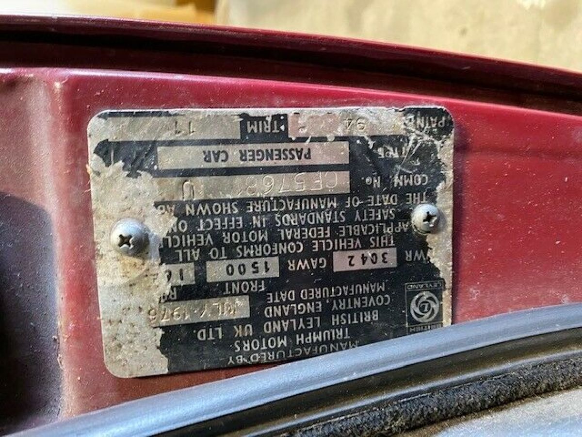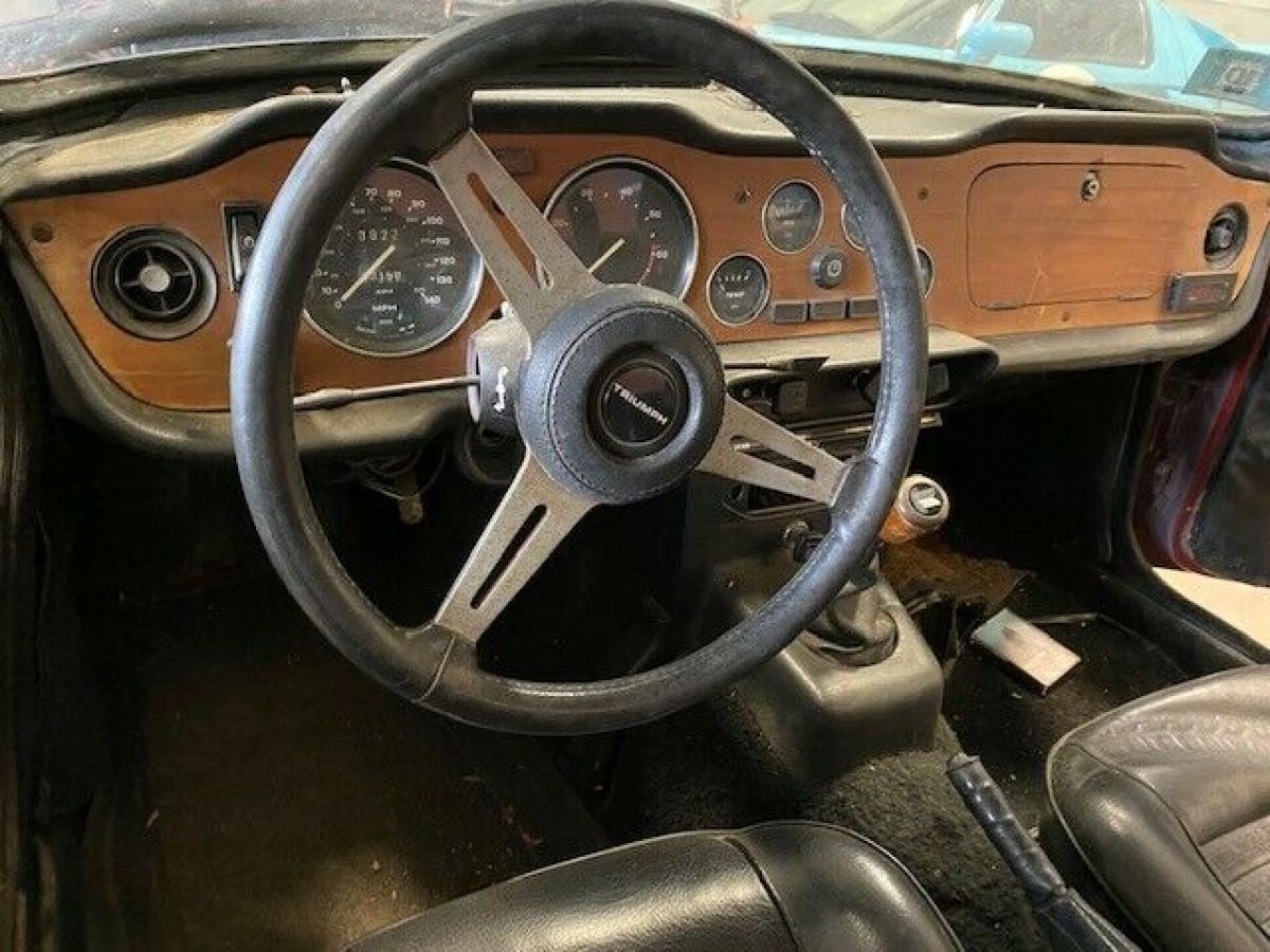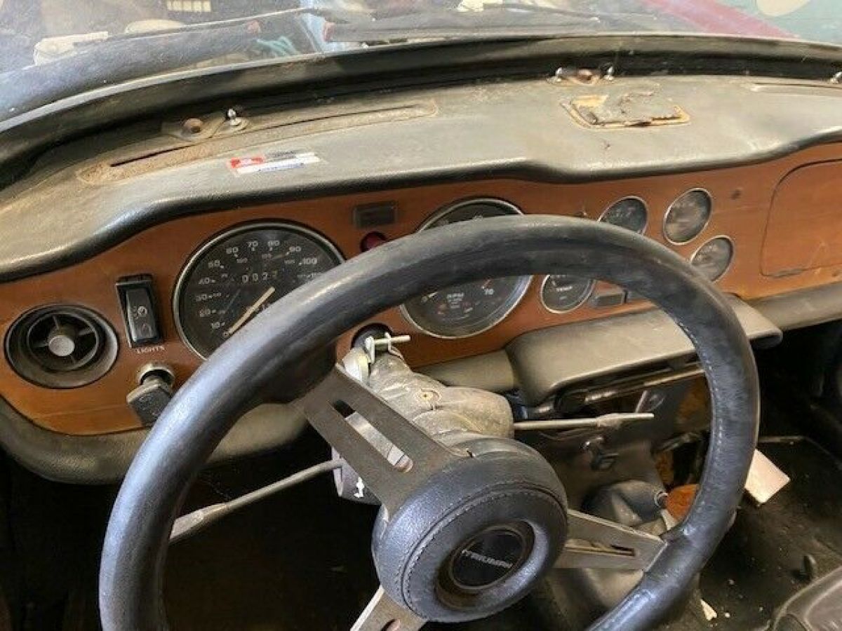 One owner lifelong Massachusetts car. In climate controlled storage since 1991. No serious rot or rust. No key, has not been started. Clean MA title. Includes hard top, soft top, extra parts - windshield, interior parts, etc... stack of receipts and old Triumph publications. I believe the lever to the right of the steering wheel is overdrive but I'm not sure.