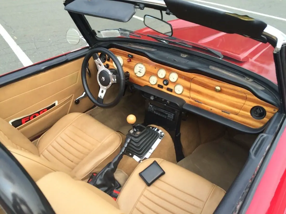 Triumph TR-6.6 V8TR6 with 400 ci chevy V8 (6.6 liter) world class close ratio T5 5 speed transmission and Corvette differential16" Panasport wheels with new tirescustom dash and gaugescustom steering wheelelectric power steeringroll barnew brakesnew clutch, flywheel, throwout bearing, bell housingnew gear reduction starternew shocks, rear converted to linear shocksnew carpetnew high volume aluminum water pump, aluminum radiatornew batterypictures do not do this car any justice, it's absolutely beautiful, runs cool, drives great, terrific cruiser