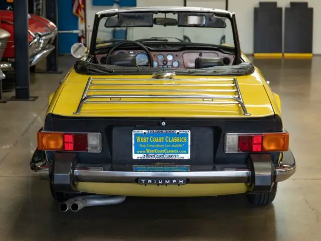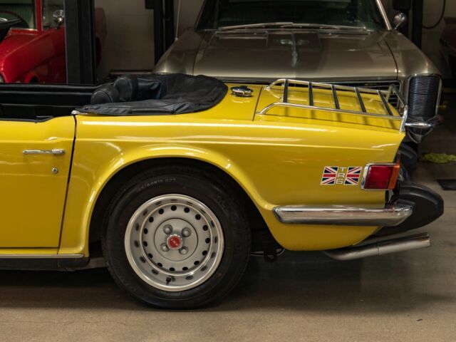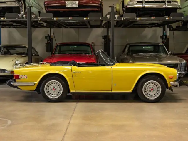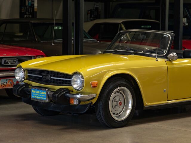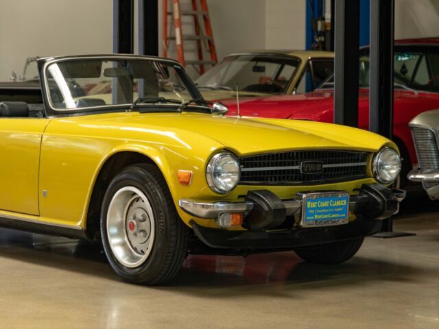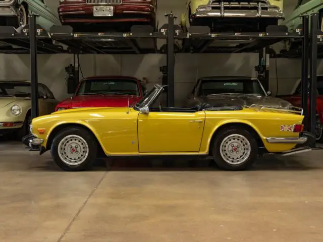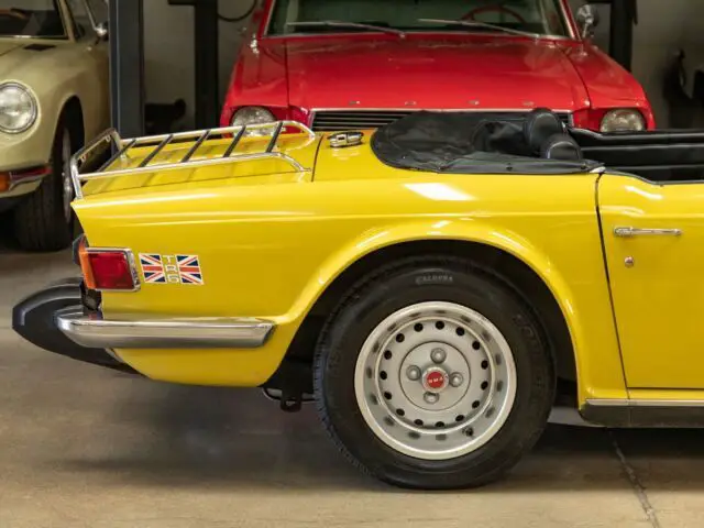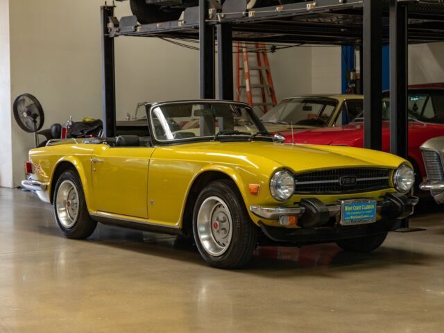 West Coast Classics are proud to present a great example of this 1975 TR6 Roadster Convertible in its original striking 'Mimosa Yellow' (color code 64) factory color paint with its original 'Black' (trim code 11) interior and Black soft top and tonneau cover and with a full weather tonneau cover and bra!