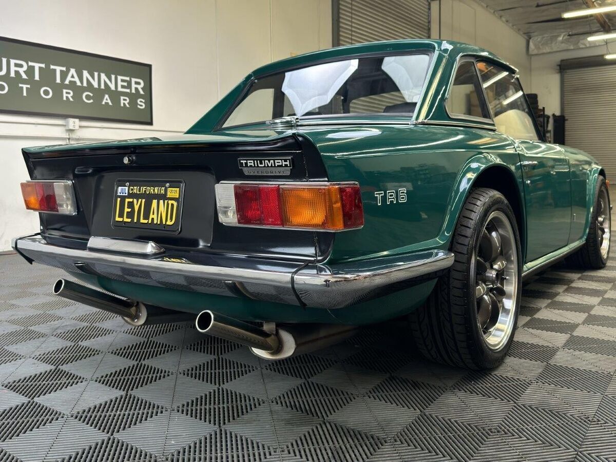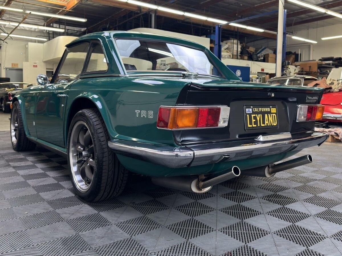 -Recently purchased from the Inland San Diego area from it’s fastidious owner of the past 11 years.-Superb, high performance/ high horsepower, reliable, TR-6 in attractive factory color scheme delivered with rare factory hardtop.-Mint condition, all factory original Emerald Green paintwork, save for repainted hardtop, trunk lid, driver’s door. Well preserved, mint condition original bodywork. All body rubbers replaced. Perfect brightwork. Original Triplex windshield.-Roadster Factory interior throughout. Wool carpets, OEM seat kit with matching panel kit, Walnut burl veneer dashboard facia with matching door tops. Custom black cloth soft top, matching cloth tonneau cover, mint vinyl black top boot. Restored hardtop headliner. PLEASE SEE WALK AROUND VIDEO.-Re-engineered/rebuilt mechanicals throughout. PLEASE SEE BUILD SHEET. High horsepower engine with triple Mikuni’s, camshaft, 9.5:1 compression, MSD ignition, roller rockers, tuned header/exhaust, Toyota 5-speed, special diff, shocks, anti-roll bars, etc. Very quick car…DRIVING VIDEO COMING SOON.-Overall, a super well-preserved original TR-6 in attractive factory colors, with a completely re-engineered performance drivetrain throughout, ready to deliver some extreme driving excitement to it’s next caretaker.YouTube Video Link (copy and paste):https://youtu.be/KEN0iilbV-o