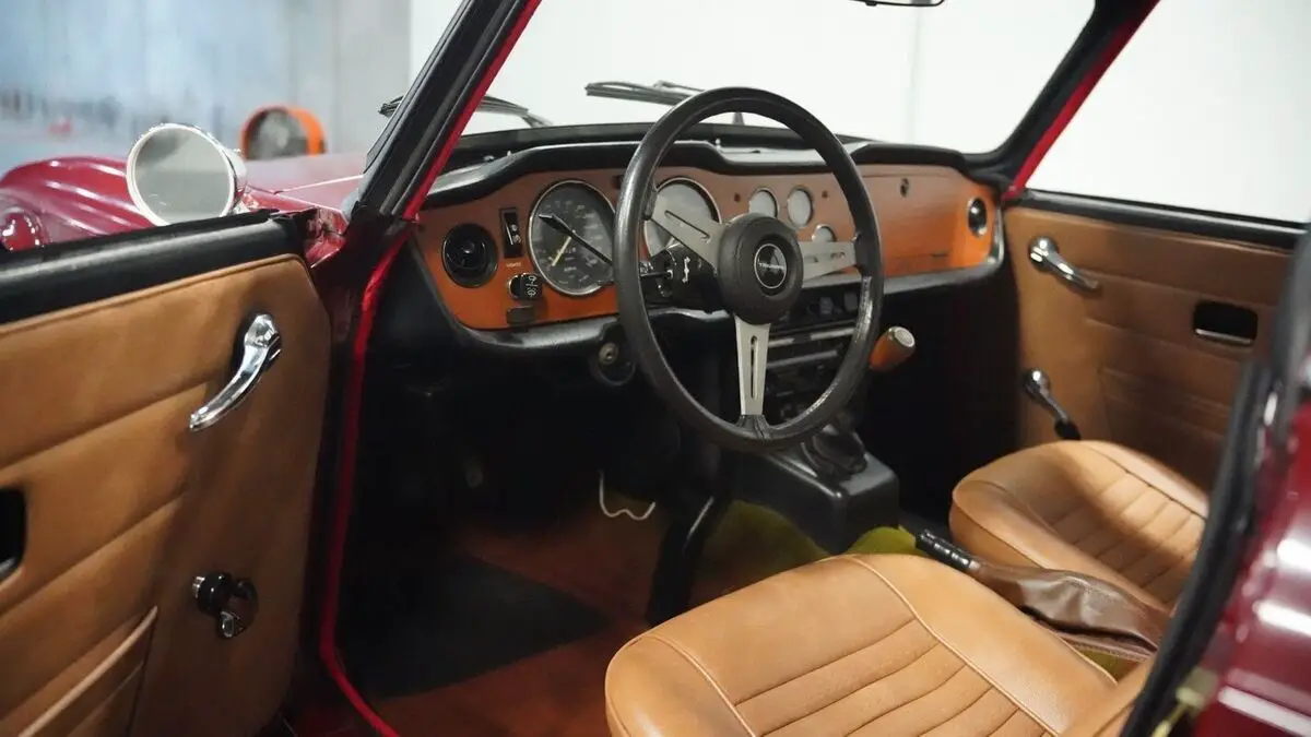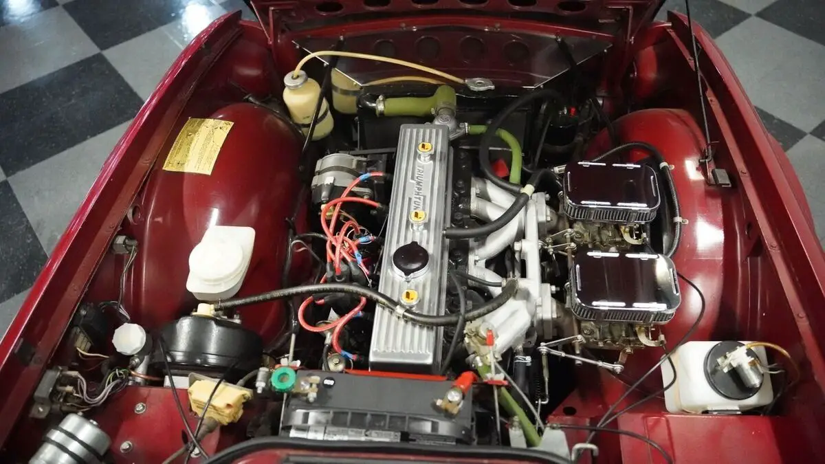 Vehicle Original VIN : CF51349U0• 2.5L Inline-6 Engine • 4-Speed Manual Transmission with electric overdrive • Dual Single-Barrel Carburetors • Pace Setter Dual Exhaust • Power Front Disc Brakes • Coil Spring Suspension • Front Stabilizer Bar • Carmine Red Paint • Fiberglass Removable Hardtop • 15-inch Factory Wheels in 185-15 Tires • Chrome Trim • Beige Interior with Bucket Seats • Floor-Mounted Shifter • Smith Gauges • AM/FM Cassette Player • Barrett-Jackson History • Owner's Manual • Maintenance Records • British Motor Industry Heritage Trust Documentation • Two-Owner History