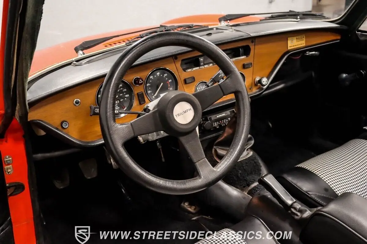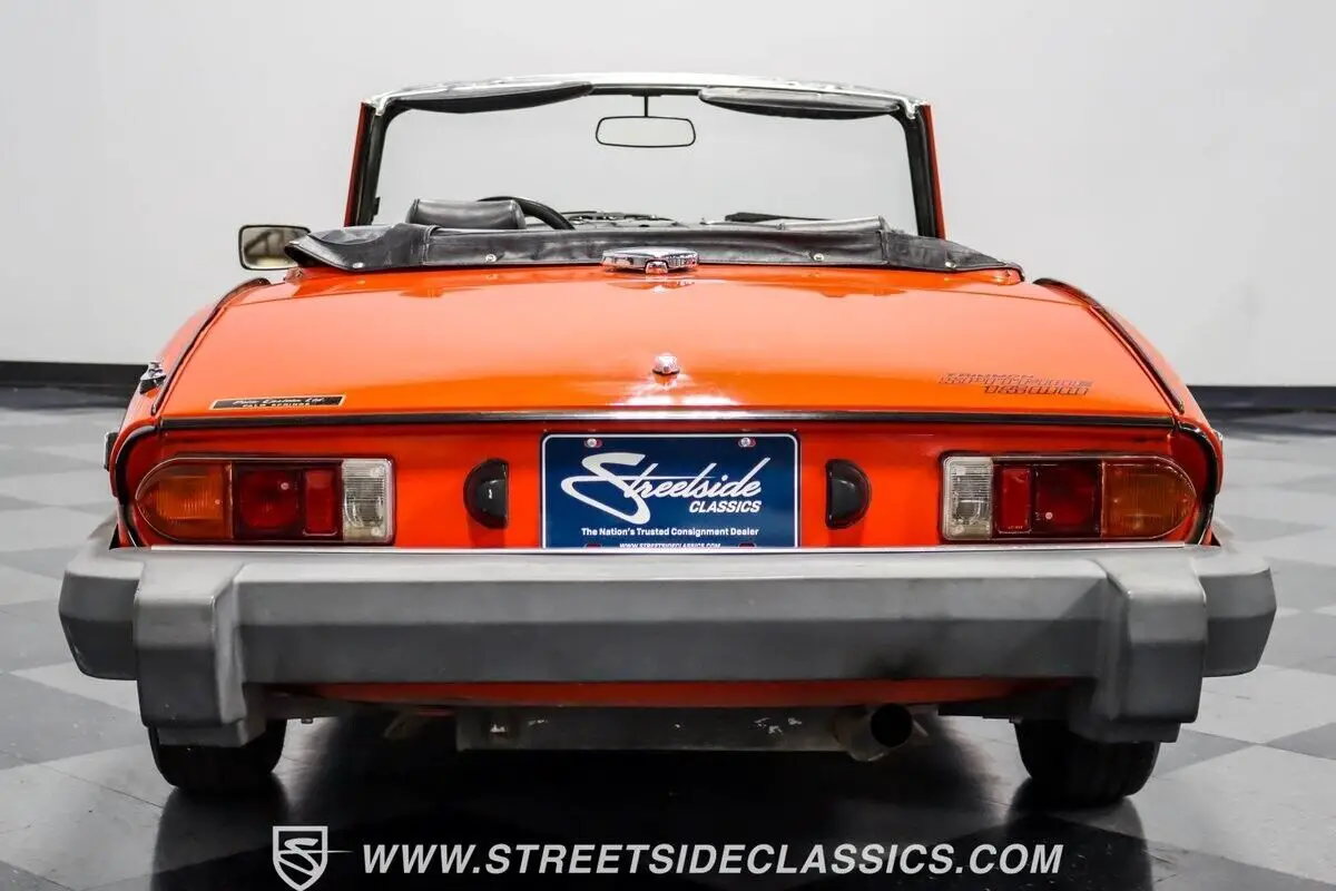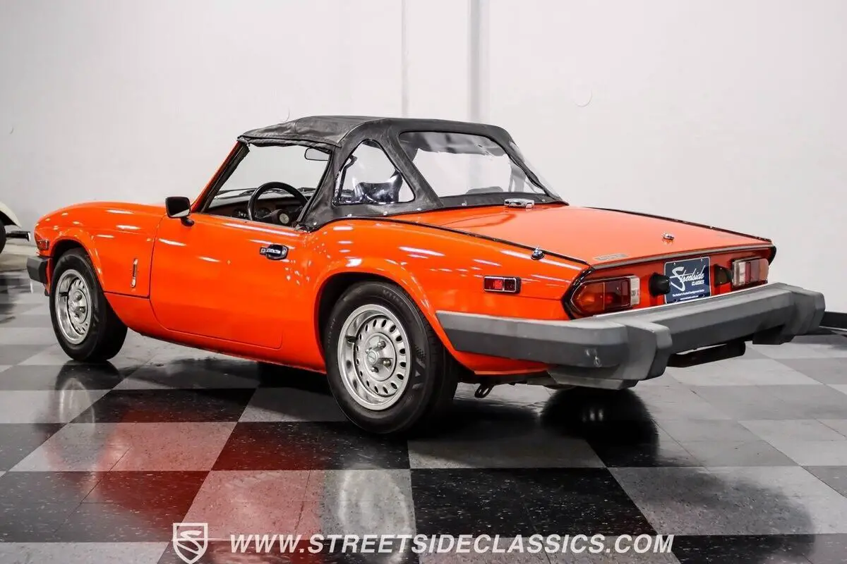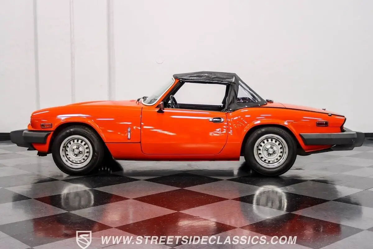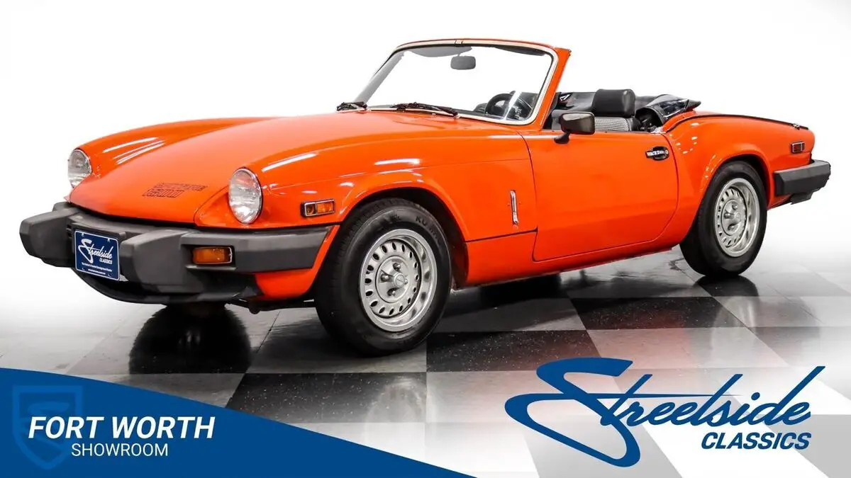 Vehicle Original VIN : FM102451UCA proper British motor offers versatility, and this 1979 Triumph Spitfire 1500 comes with both a rakish black vinyl soft top and an orange fiberglass hard top for any proper English weather condition. The brilliant orange finish pays homage to racing Triumphs of old, enhanced by the purposeful stance of factory 13-inch Triumph wheels wrapped in 155/80R13 Kumho tires. From the iconic low-slung nose to the sweeping rear quarters, this Spitfire carries all the hallmarks of British sports car aristocracy. The interior speaks pure British racing heritage with its fresh black houndstooth bucket seats positioned for proper sporting maneuvers. Traditional Smith gauges mounted in the wood grain dash panel broadcast vital information in true British fashion. The precise floor-mounted shifter falls naturally to hand, allowing its driver to enjoy the pure sporting environment. The 1500cc powerplant, mated to a crisp 4-speed manual gearbox, produces authentic British performance in grand tradition. Racing-inspired engineering shines through with front strut suspension, complemented by a sway bar and independent rear setup with a mono leaf spring. Front disc brakes provide proper stopping ability, while the factory-style single exhaust produces that unmistakable British sports car soundtrack. HIGHLIGHTS: • 1500cc Engine • 4-Speed Manual Transmission • Front Disc Brakes • Black Vinyl Convertible Top • Color Matched Fiberglass Hard Top • 13-inch Factory Triumph Wheels with 155/80R13 Kumho Tires • Black Houndstooth Interior • Wood Grain Dash Panel • Factory Smith Gauges • Car Cover This 1979 Triumph Spitfire 1500 brings together the best of British motoring - dual tops for any weather, the pure sporting spirit of a 1500cc engine, and legendary Triumph handling. Call today!