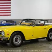 -Recently acquired from it’s older owner, this nicely restored Triumph TR-6 is beautifully finished in it’s original color scheme of Mimosa Yellow with black interior and a brand new fitted soft top, matching top boot and tonneau cover.-Details of improvements include very nice glossy newer paintwork, black cut pile carpet set, black crush grain vinyl soft top and seals, reupholstered OEM style seat kits with extra padding, sun visor set, trunk kit, newly fitted radial tires on restored wheel set with new stainless trim rings, engine tune-up, new coolant hose set, battery, fuel pump, alternator, starter, radiator ducting. Free flow upgraded Monza exhaust system. Original Triplex windshield glass. PLEASE SEE WALK AROUND VIDEO.-Excellent condition dashboard, detailed undercarriage. Clean and detailed engine bay.-Mechanically well maintained and drives great with no issues. DRIVING VIDEO COMING SOON.-Overall, a very nice turn key example ready to enjoy for the season.YouTube VIDEO LINK below (copy and paste):https://youtu.be/EjD7yTd9frM