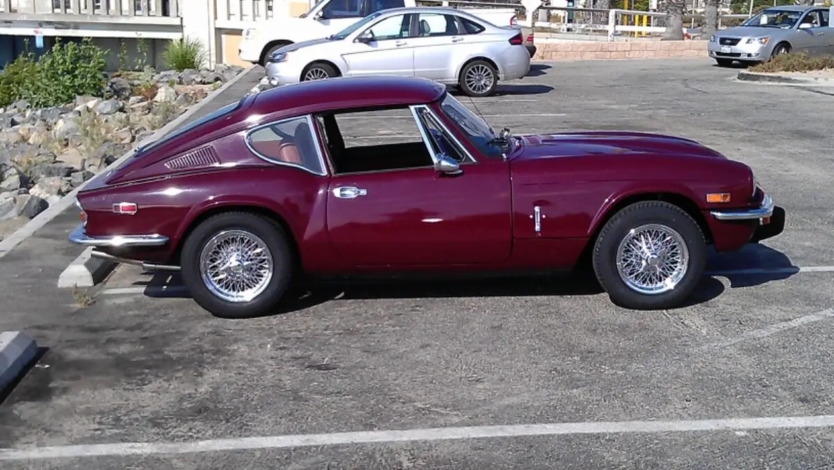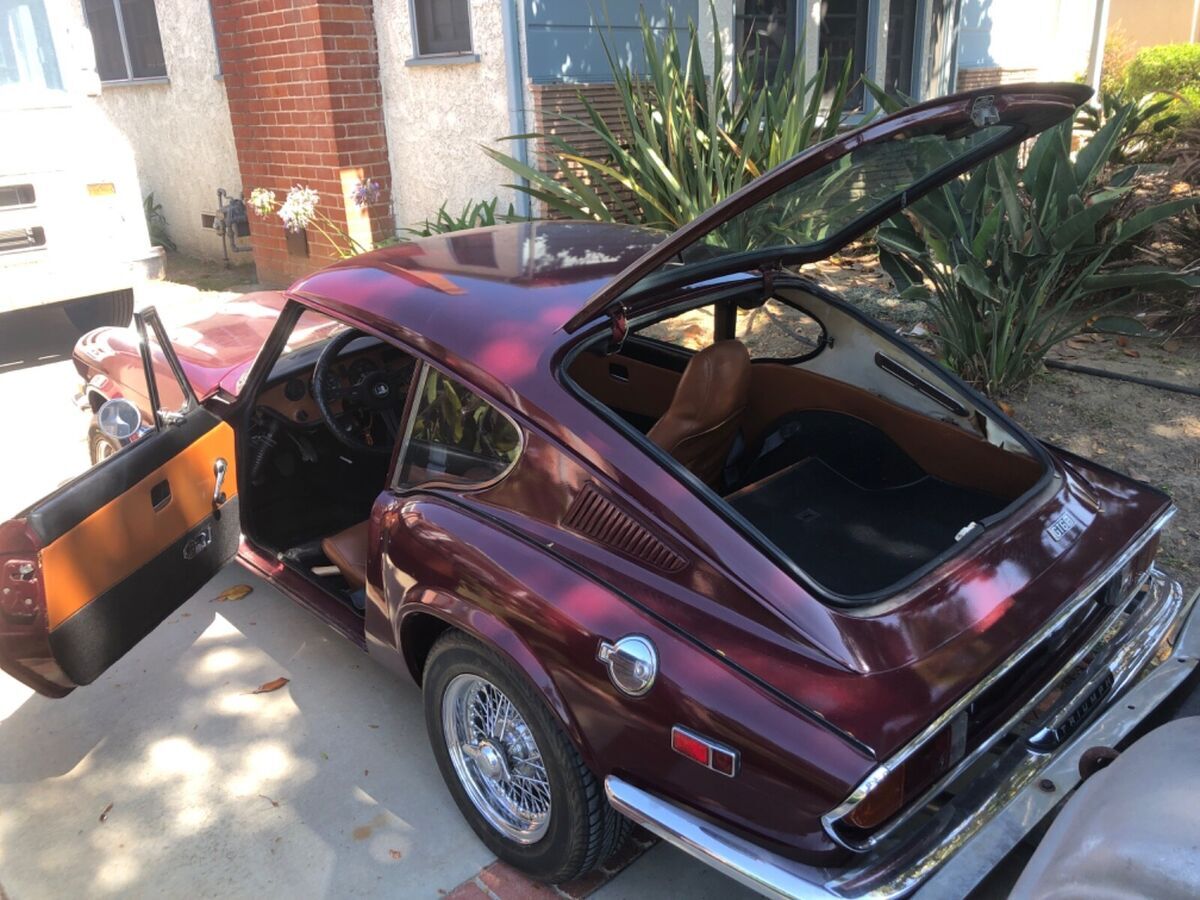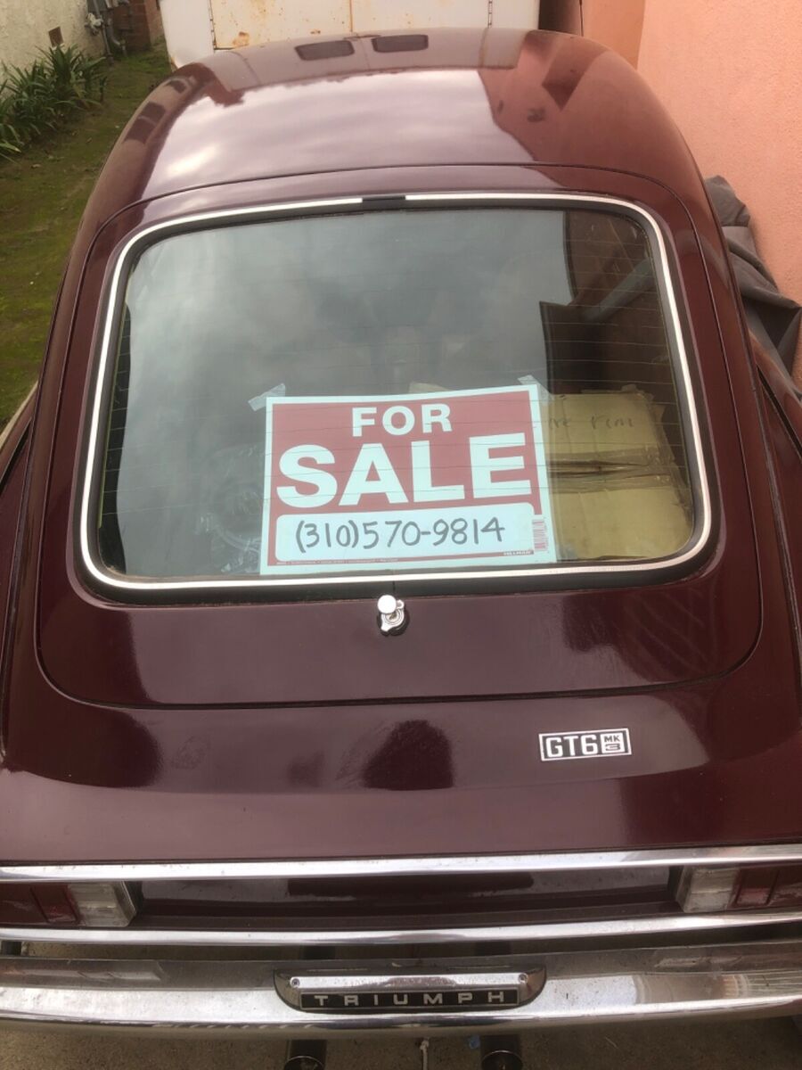 Up for sale is a stunning 1971 Triumph GT6 in a beautiful Burgundy exterior color. This classic coupe has a clean vehicle title and has only 87,803 miles on the odometer.This Gt6 runs well and has been recently serviced. I changed the motor oil, trans and differential oils for you. The car is essentially stock with only minor modifications that make it more user friendly. It has an upgraded 5 speed Tremek 5 gear box instead of the wimpy Triumph 4 speed. This mod alone makes it great to run on the freeway comfortably. The narrow 13" Triumph wheels have been replaced with wider real chrome plated wire knock off wheels. The spare 5th wheel is a matching wire rim also. Beautiful. I also have several spare parts and literature to go along with.It comfortably seats two people and is a two door coupe/ fastback hatch. It resides in sunny Los Angeles and is rust and dent free. The model is a real gem from Triumph and is perfect for collectors and enthusiasts alike. The vintage car is in excellent condition and has been well-maintained over the years. Don't miss your chance to own this timeless piece of automotive history. If you have any questions Billl Three 0ne O, 5 seven O,98 fourteen.Thanks for Looking
