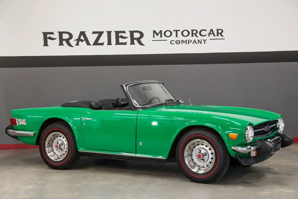 This absolutely well preserved Java green TR6 is as nice as the pictures reflect. If there were an adjective to describe the various components on the car it would be "CRISP"!!! The car looks, drives, and feels as if it were a few months off the new car showroom. .Miles are unknown as original airplane pilot (passed)exchanged head unit, the INTEGRITY is known. The car show, drives, reflect that of a 20-30k car Chrome is excellent, the soft top looks as if it were just installed. When shooting the car and pulling the top boot and tonneau they still looked new with the fold creases dominant in the material. The dash cap is not warped or cracked, the wood dash face is void of any cracks or delamination. Door cards still look like it is 1975,the carpets have the same patina, deep in color and no fraying, Engine compartment shows no signs of age or use. All hose, clamp, battery tray, inner fender wells as well as valve cover, air cleaner housing still look new .Body paint reads as original with the minor flaws that would be apparent in an original paint that is 50 years old.