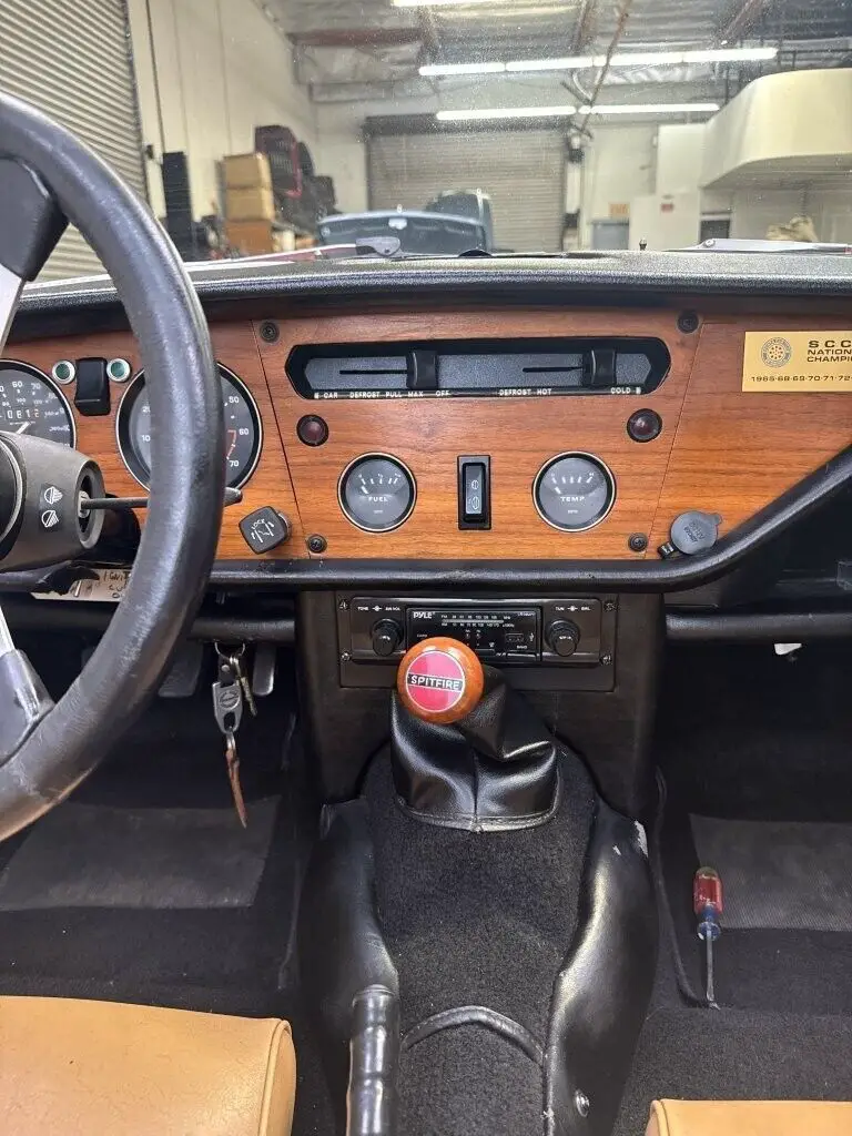 -Recently purchased from an older Triumph club enthusiast/restorer from the Palos Verdes area, this attractive Spitfire is finished in great colors/options with a good California history. California smog exempt vehicle with mechanical upgrades.-Good condition glossy paintwork recently color-sanded, buffed, polished. Very good original chrome bumper set. Original Triplex windshield.-Super good condition interior with excellent vinyl seats, carpet set, panel kit, visors, wood dash facia, dash top pad, seals, black crush grain vinyl soft top, Moss sport padded steering wheel. Correctly finished trunk area with spare/wheel cover. OEM style stainless door mirrors.-Excellent running and driving car. Could use some transmission work. Downdraft Weber carb, header set. Very clean detailed engine compartment.-Overall, a cosmetically very attractive early 1500 Spitfire in great colors with the rare overdrive option.YouTube Video Link (copy and paste)https://youtu.be/cJ2iBgIv-yQ