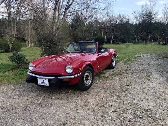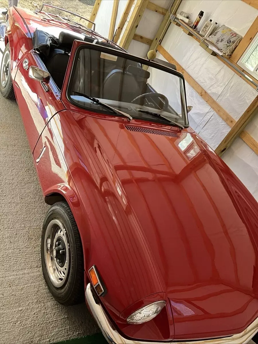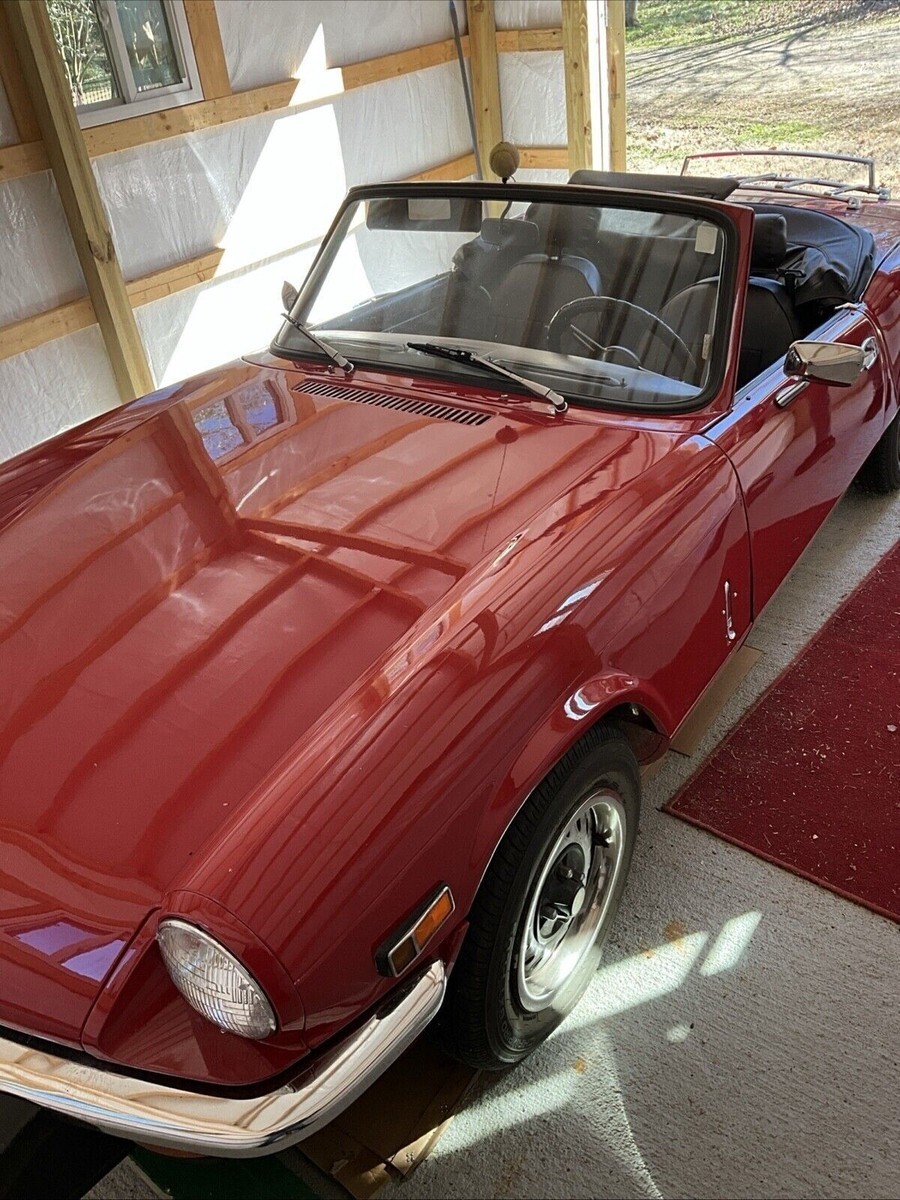 1974 Triumph Spitfire 1500. 99,000 miles. About 90% restored (cosmetically). Car was purchased already restored. Four cylinder. Four-speed manual transmission. Runs good. Tires less than 2,000 miles. Bluetooth radio and new speakers and luggage rack were added. Soft top and tonneau cover. Carmine red. Has been garaged since I took ownership in November 2021. Less than 200 miles per month added since then. Oil and filter change about every 300 miles. Fluid levels frequently checked and maintained.