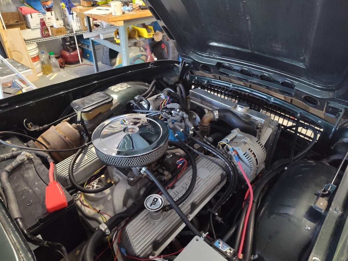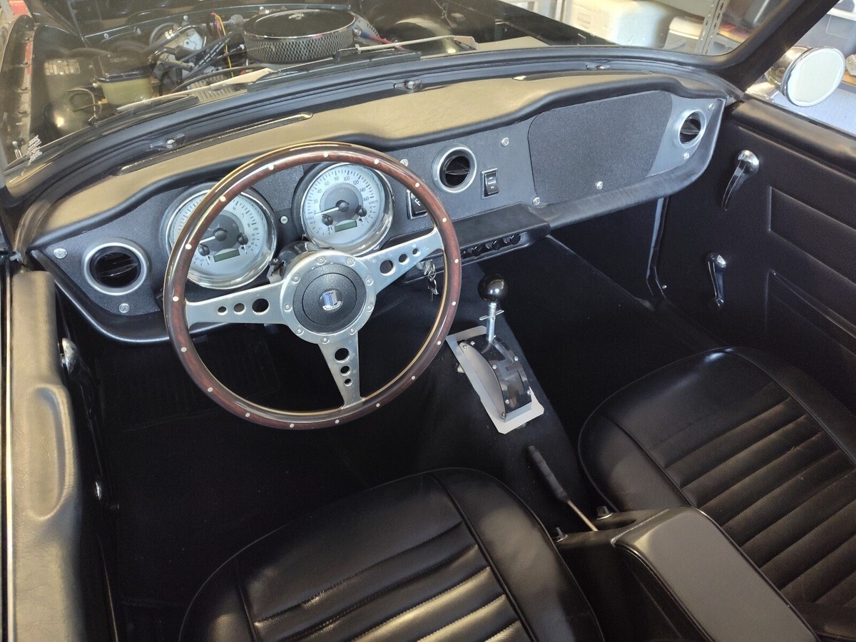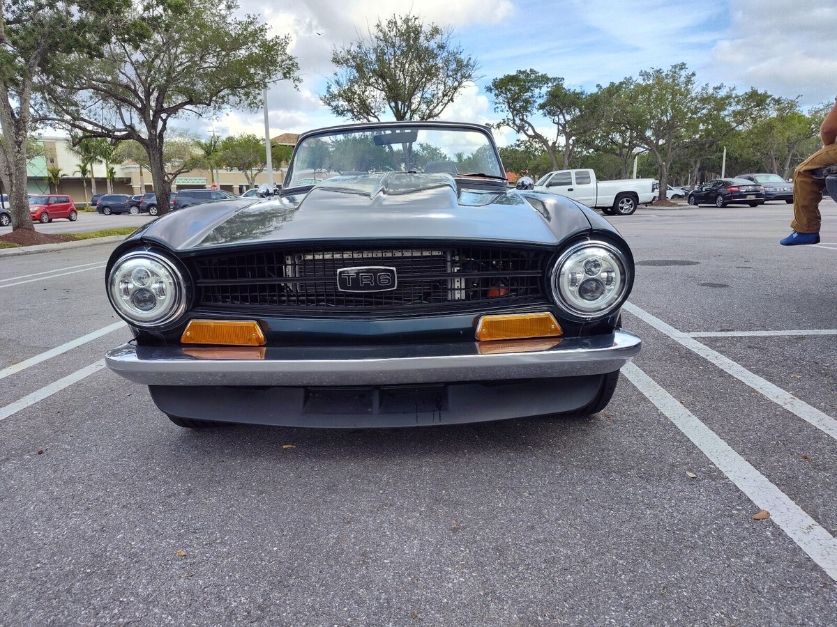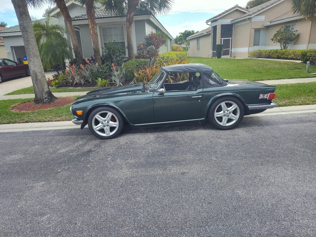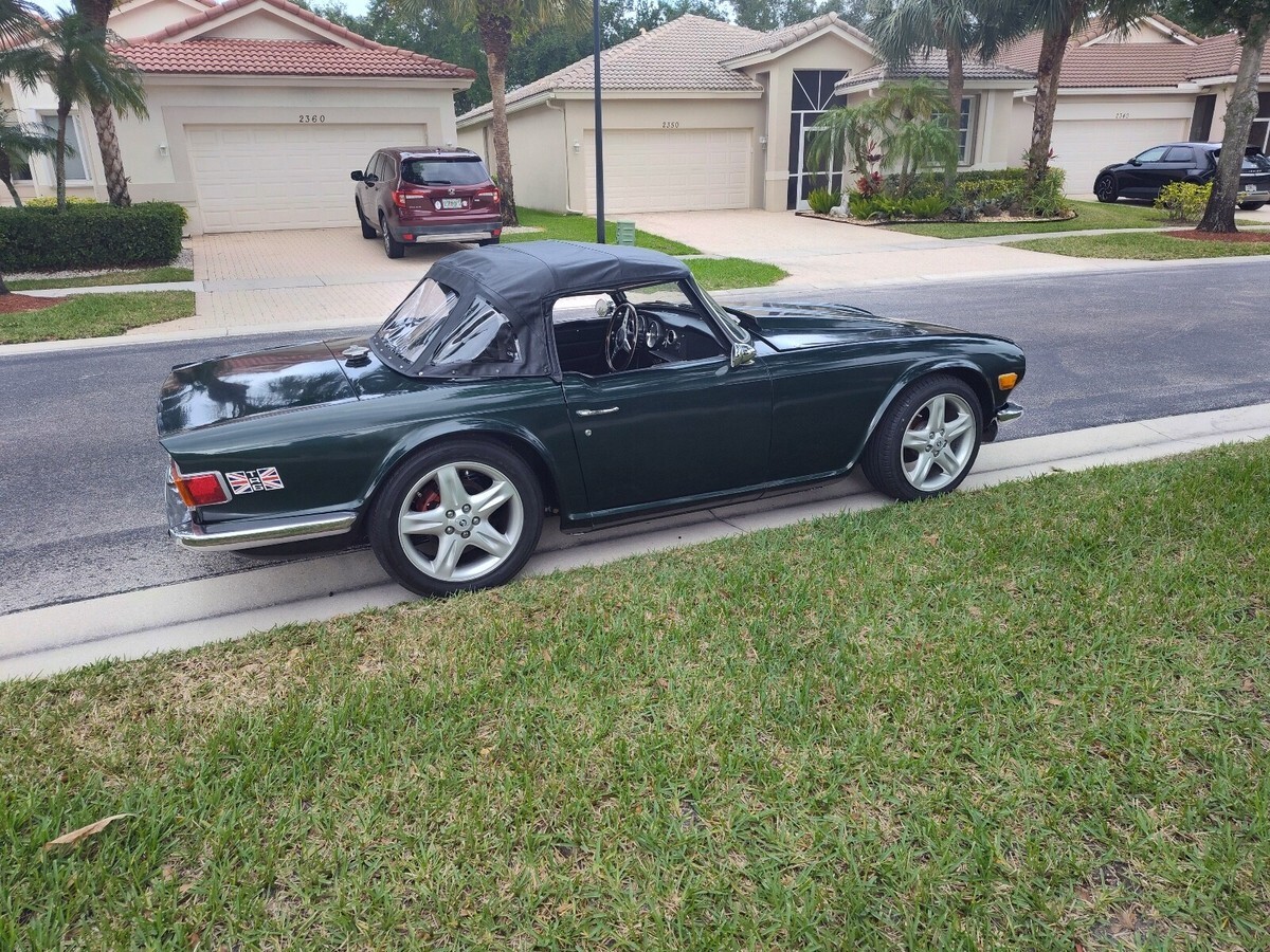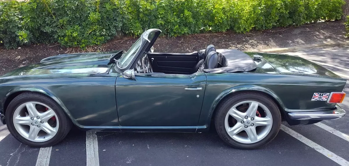 Unique Triumph TR6 powered by a ford 302 V8 with overdrive automatic transmission and modified Lincoln independent rear suspension.Vehicle has been extensively modified and strengthened to accommodate the drive train and additional power.suspension has been upgraded with Alden adjustable coil overs and front and rear sway bars. Brakes are slotted discs at all 4 corners.17" mag wheelsVintage Air AC system, Dakota Digital gauges, PCM transmission controller, Griffin aluminum radiator with electric fan.New carpet and door panels.New soft top and a hard top and car cover