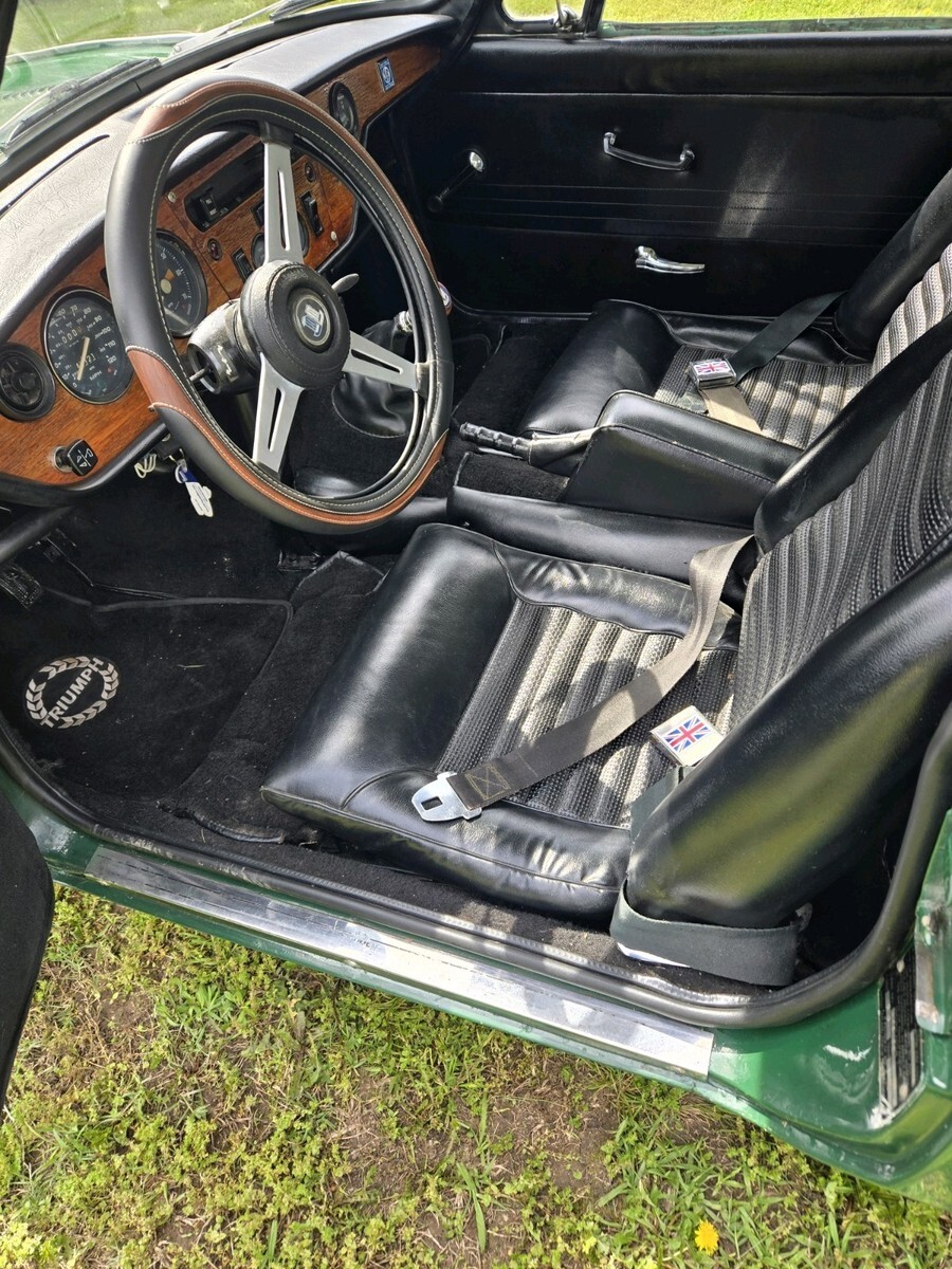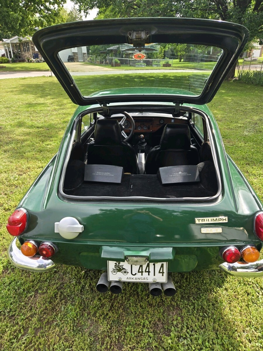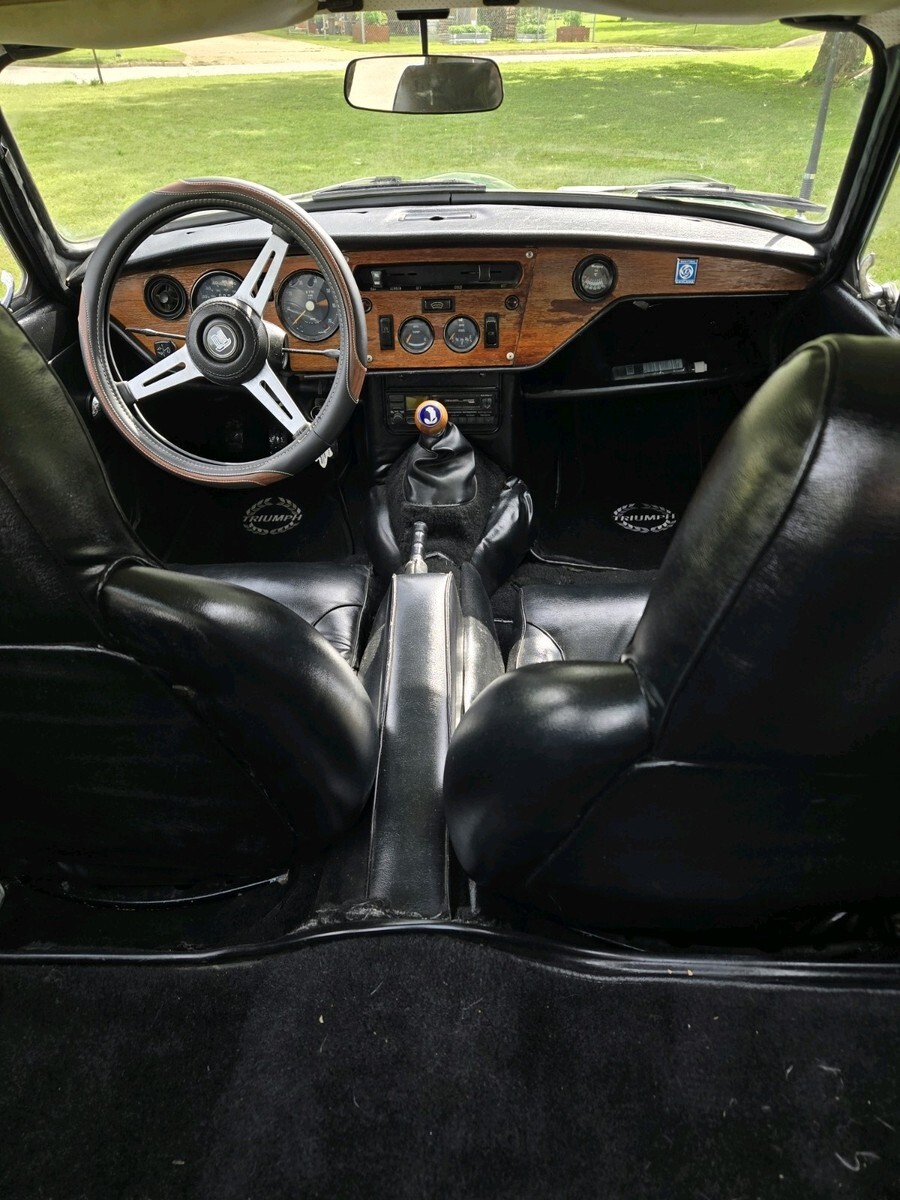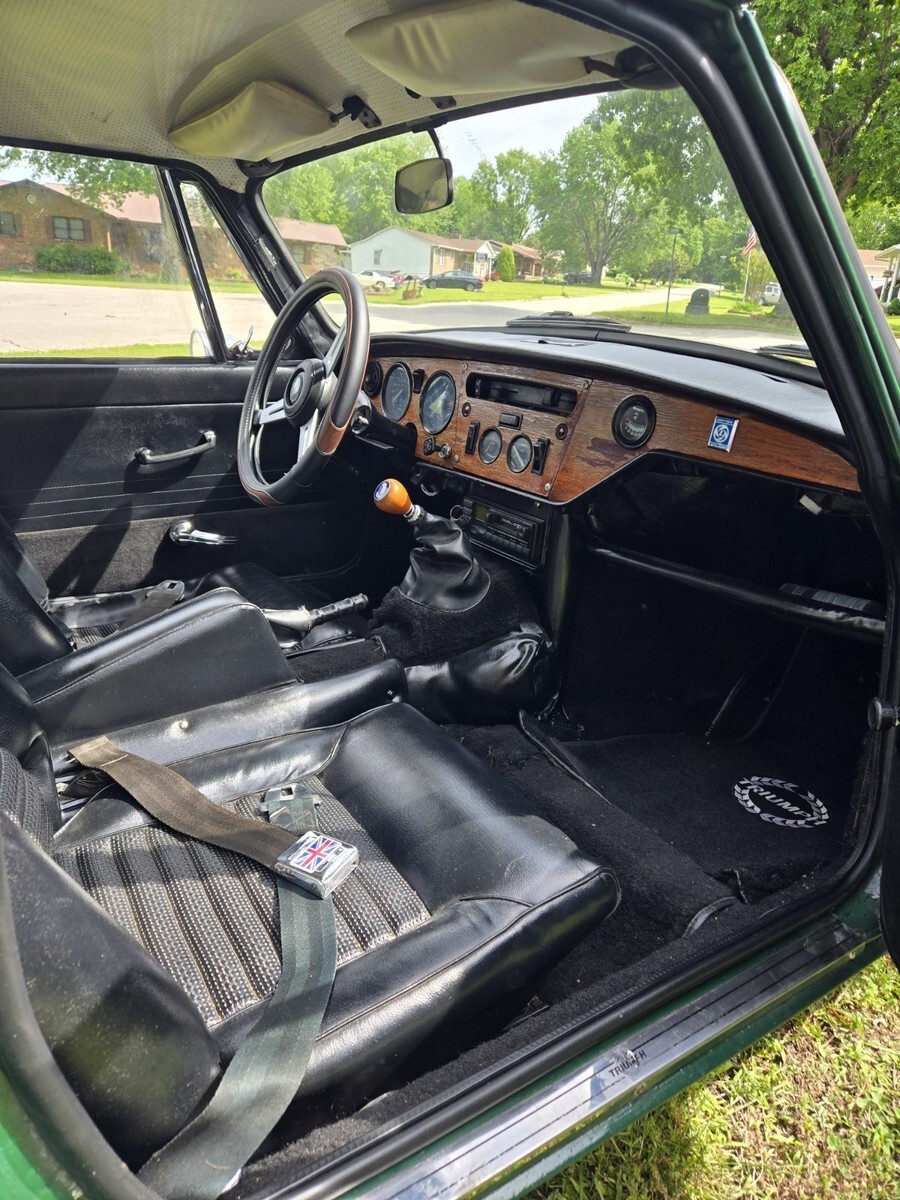 The Triumph Gt6 + is a fairly rare model. The paint and interior is in very good condition. Easy handling with the rack and pinion stering. Braking is good with the new brakes all around.Transmission is tight with new synchronizes installed during the transmission overhaul. The Strogberg carbs have both been overhauled delivering max. power.