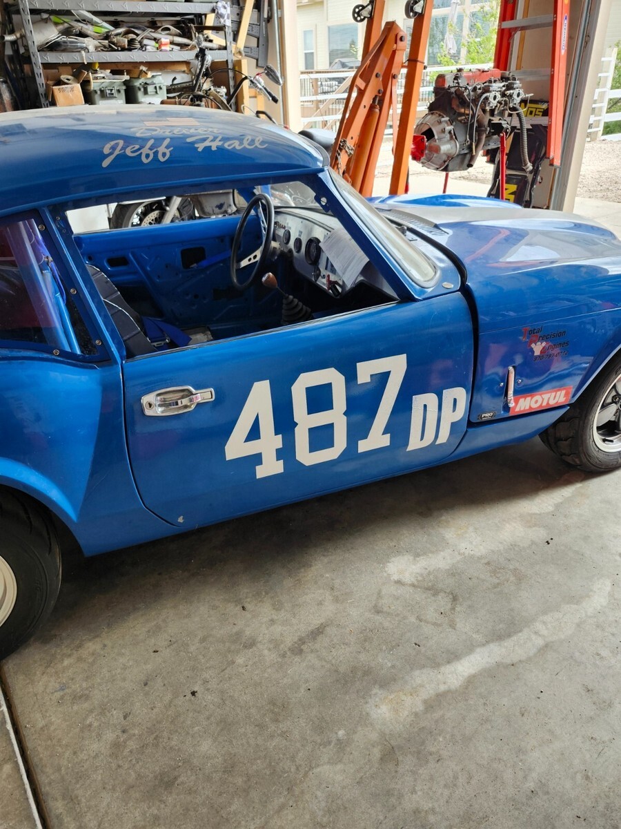 Professionally built GT6 race engine by Pete Christensen of Total Precision Engines of Ft. Collins CO. The engine has approximately 4-5 hours on track over 3 years. It has roller rocker valve train, extended capacity oil pan, windage tray, a spider oiling system, accusump, oil cooler and remote oil filter. The transmission is a 1973 TR6 with a hydraulic throw-out bearing. Slotted front disc brakes, solid axles from the differential, lowered one inch in the rear. The front shocks are coil overs with suspension retaining straps. Custom headers to a single straight exhaust. Stromberg carburetors. and new fire suppression system. Five point seat belts are good through 2025. Eight new TOYO Proxy 888 tires mounted on VTO rims. A spare engine block with head, balanced crank with bearings. The car does also have a clear Colorado title.I also have two drivers suits for a 6 ft. or so tall driver.