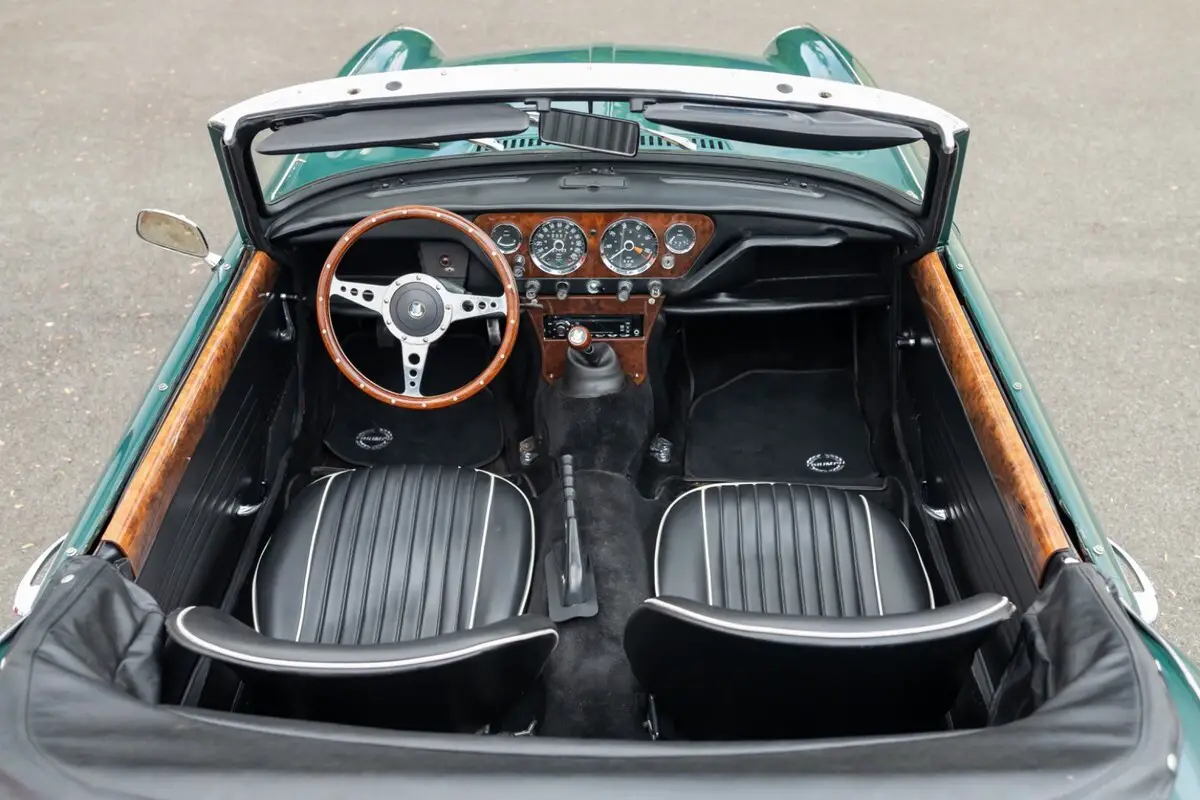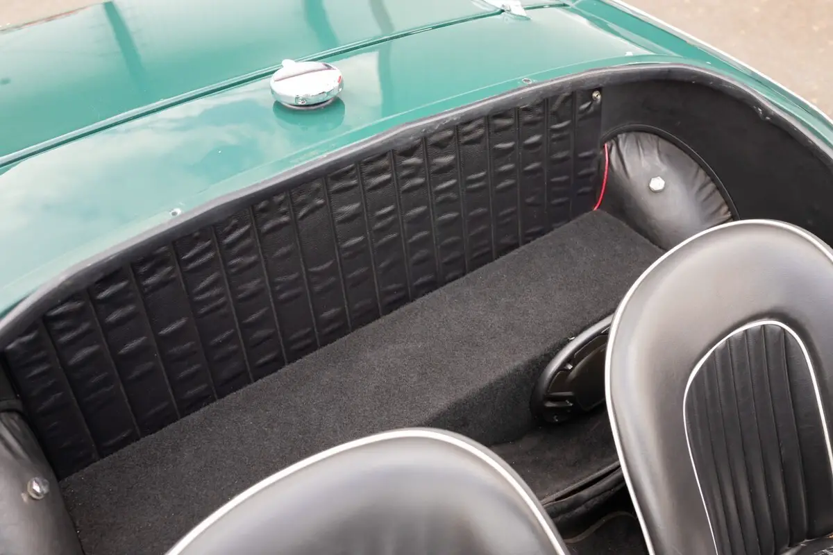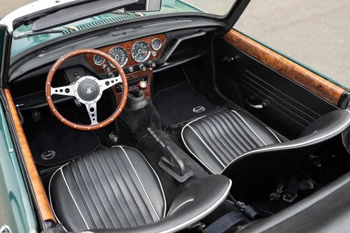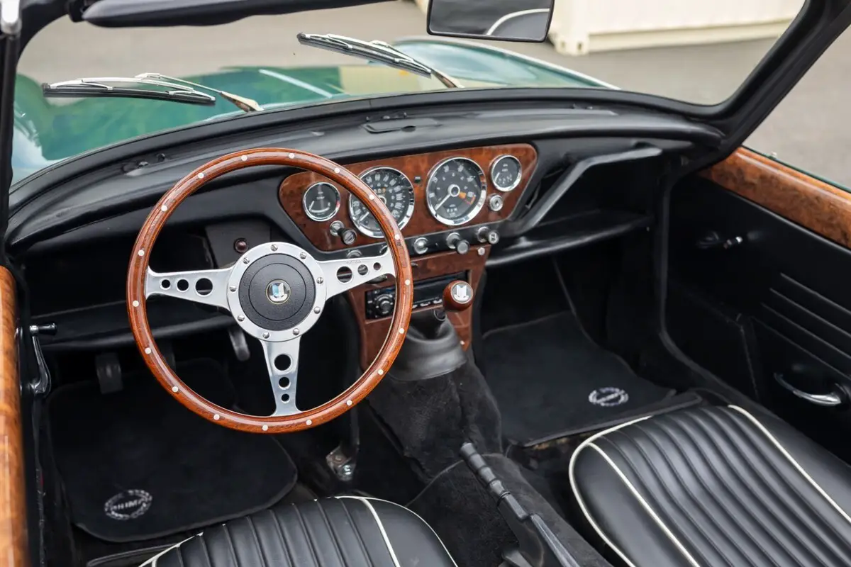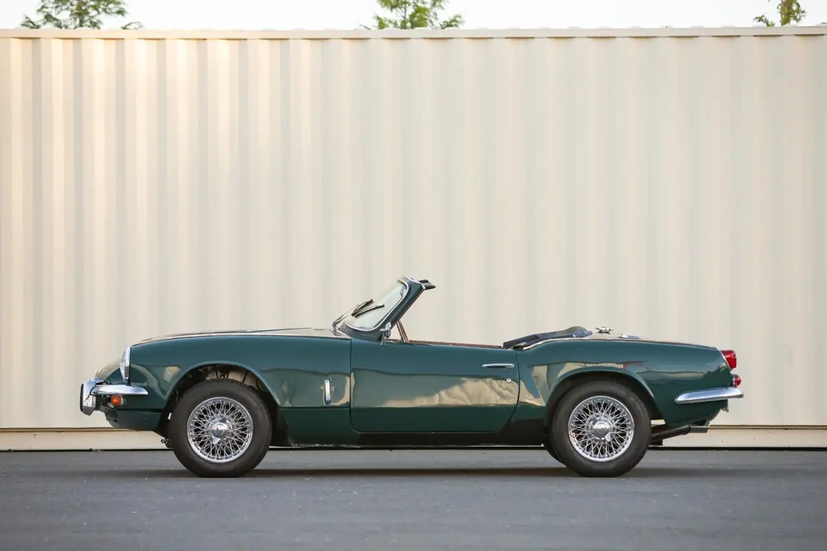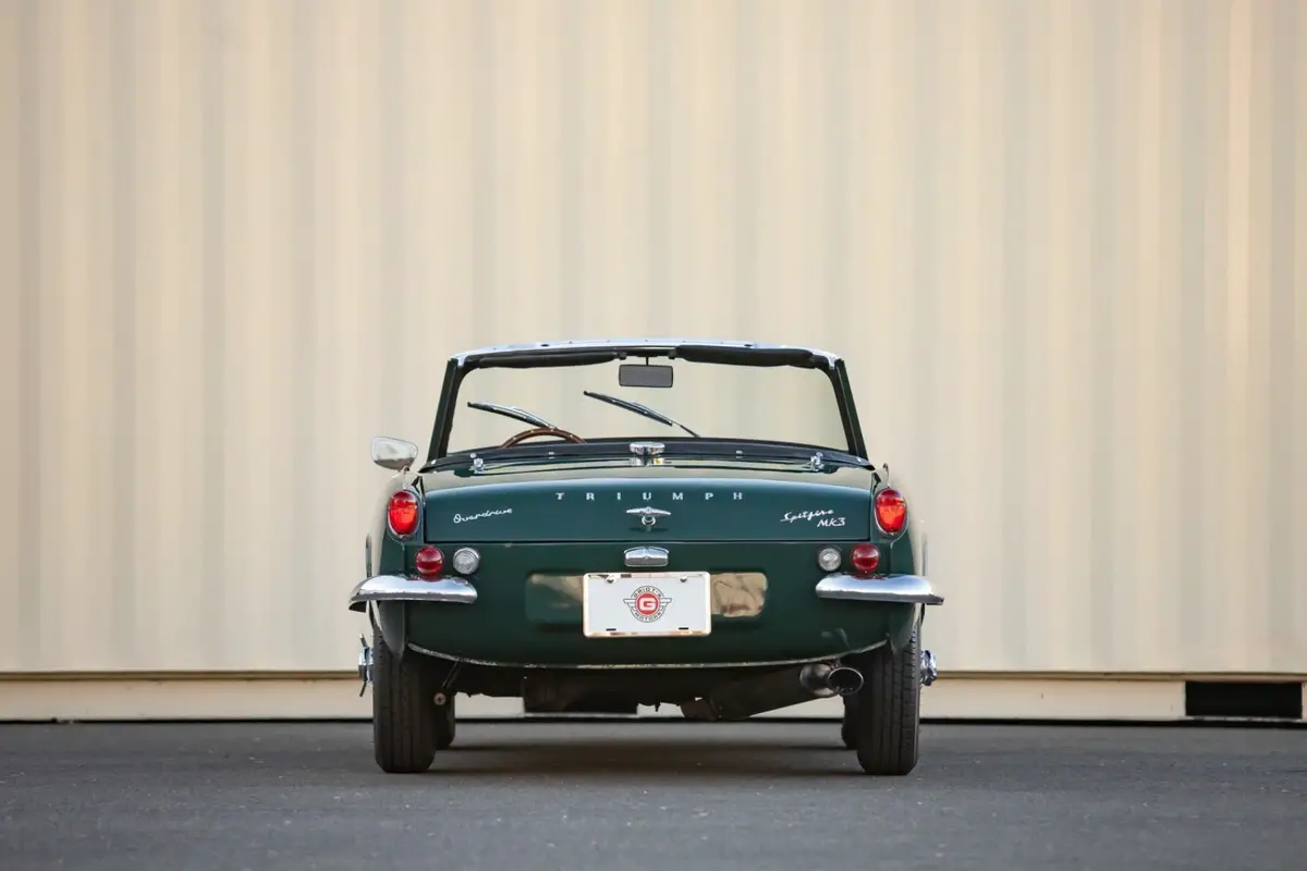 In 2021, a number of mechanical items were addressed by a local shop. At that time, the car received new wheels and tires, along with service that included an oil and filter change, replacement radiator, new water pump and thermostat, fresh spark plug wires, updated shifter bushings, and new brake pads. When the car arrived at our facility, we performed a full inspection, including compression testing. The Spitfire is being sold as a running and driving vehicle that would benefit from additional sorting. The soft top has been removed but is included with the sale. Also included are brand new seat covers and seat foam, a set of custom White Smith gauges, a bullet-style side mirror, two 9-inch electric cooling fans, various reference materials and service literature, and a British Motor Industry Heritage Trust certificate.