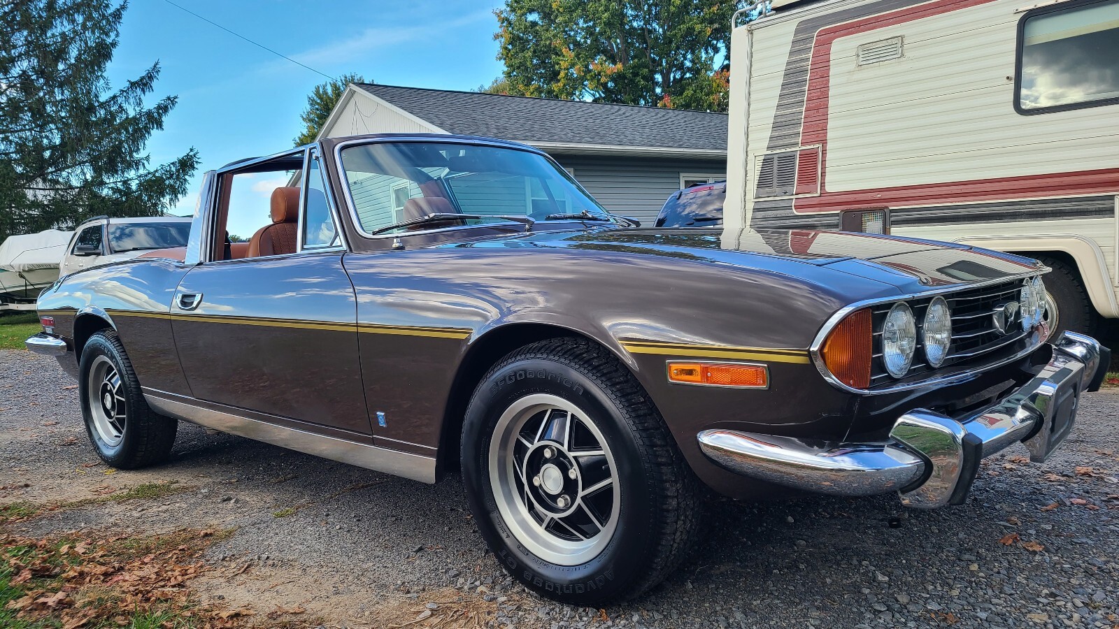 This is great looking and smooth running Stag. If you looking for a very nice Stag this is the one. Starts right up even in extreme cold temperatures. Runs, shifts, and drives smooth, great acceleration. Brakes work perfect evenly, no pulling, firm, and quick.