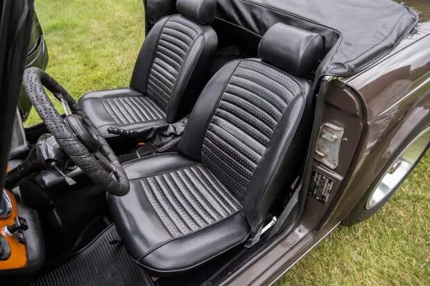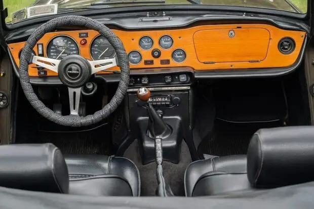 The 1973 Triumph TR-6 is a classic car with a black interior, manual transmission, and a 2.5 straight six engine. Made by Triumph in the United Kingdom, this 2-door vehicle has a left-hand drive and a gas fuel type. With only 107,000 miles on the clock and zero previous owners, this iconic British roadster is a must-have for any car enthusiast looking for a piece of automotive history.