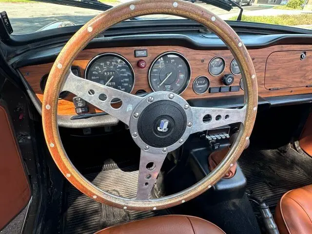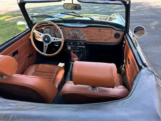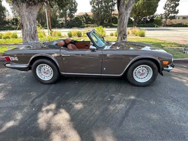 We are proud to offer for sale this beautiful and greatly maintained 1975 TR6. Drives and handles great! Cruse with the top down and feel the sport seats wrapped in leather. Includes a retro-look radio with all AM/FM and Bluetooth.