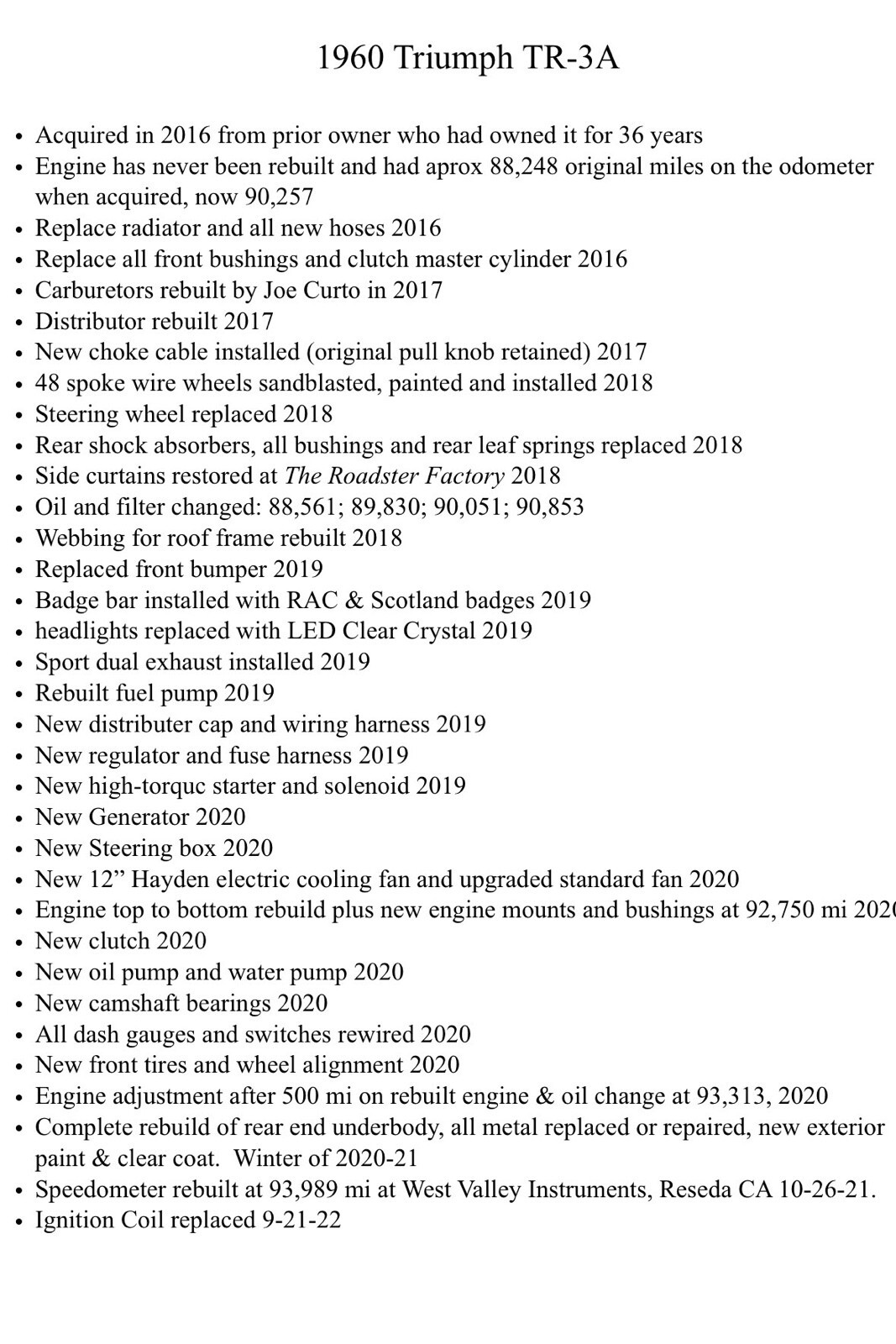 This 1960 Triumph TR 3 is a restored vehicle. The owner has had it for 5+ years. The vehicle runs great and is mainly used for weekend drives.