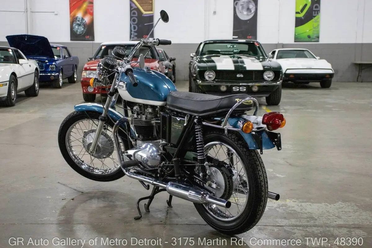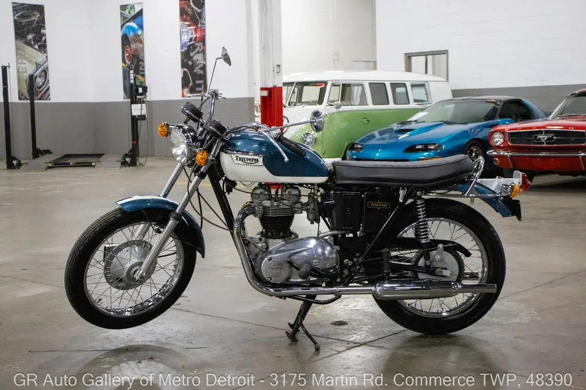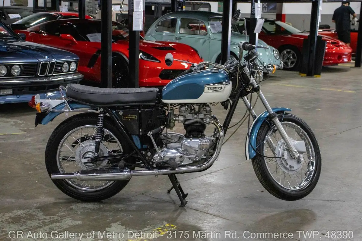 GR Auto Gallery is pleased to present this meticulously restored 1972 Triumph Tiger 650 for your consideration. Finished in a striking Blue and White factory-correct color combination, this motorcycle has undergone a comprehensive restoration with fewer than 1,000 miles on the fresh build. Power comes from a 649cc parallel-twin, four-stroke engine that is air-cooled and runs as beautifully as it looks. The frame was sandblasted and powder coated for long-lasting durability, and the seat has been completely reupholstered to match the factory look. All chrome components have been replaced with brand-new pieces, giving this Tiger a gleaming finish throughout. It also features new tires and comes with numerous receipts documenting the work performed. Ride this one out of our showroom or have us assist with shipping it to you anywhere in the United States! Don't hesitate to call us with any questions or for more information.