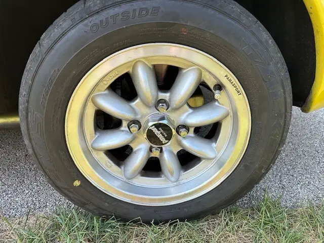 Running gear: The rear end is a BMW 5-series with the following identifiers #84 233 BMW, 5M017, 1210441. The front brakes are BMW 5-series disc brakes with custom machined mountings.. The driveshaft was rebuilt and rebalanced. Wheels are Panasport "minilite" style. The mounting lugs have all been recently replaced with extended studs and new high-strength lug nuts. The tires are new Falken Azenis RT615K 195/60R14 86H for street or track and have excellent grip. Running gear specs comes with the paperwork and receipts.
