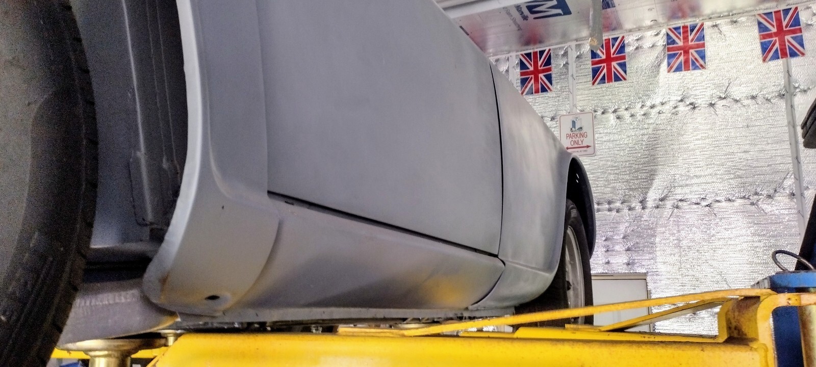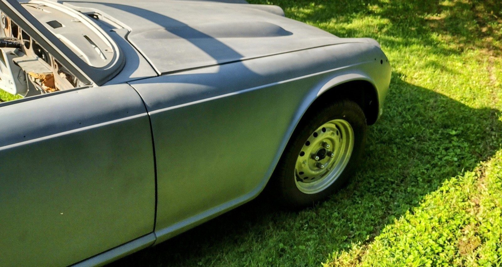 I have not completed the body work! ( see pictures) The car has been media blasted and sealed but will need a few small dents addressed and possibly a new upper valance. I have purchased a new lower valance from Rimmer Bros.