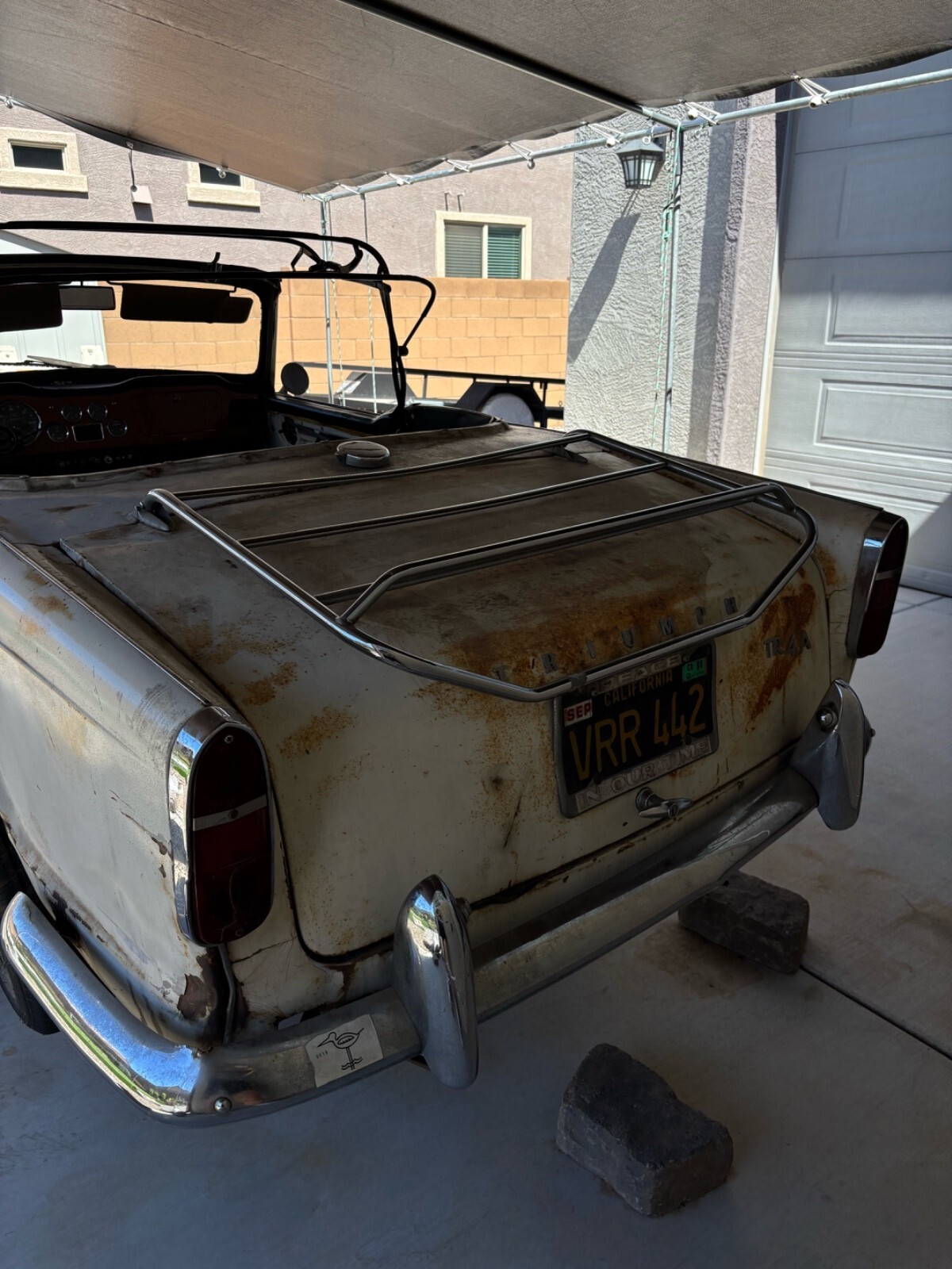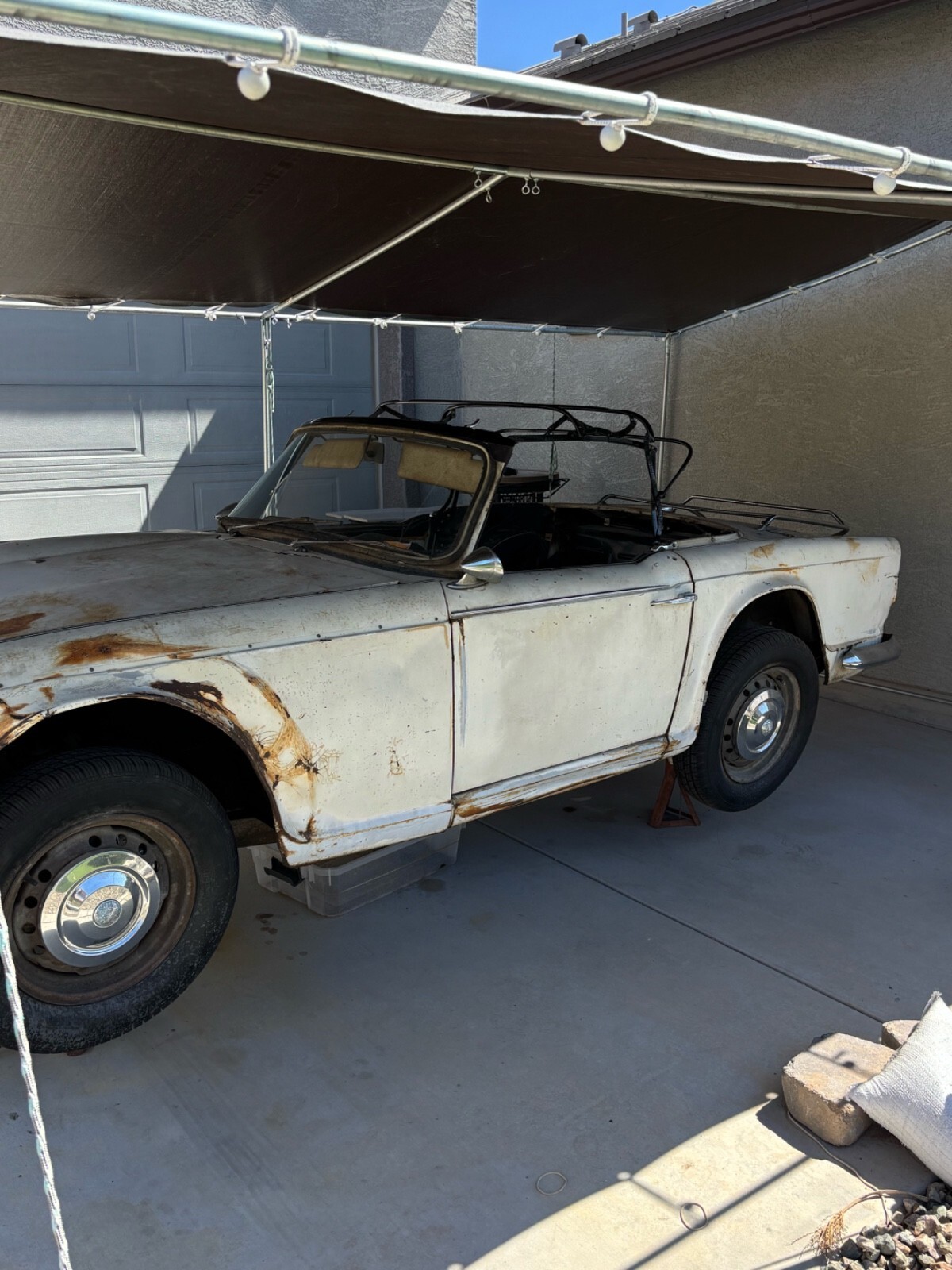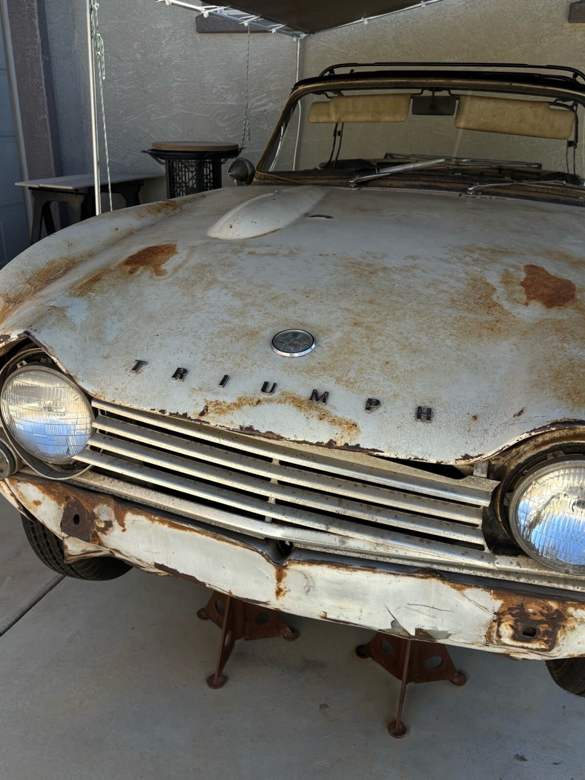The 1967 Triumph TR4-A is a collector car with a convertible body type, seating for 2, and 2 doors. This classic Triumph model features a clean vehicle title, making it a desirable choice for car enthusiasts looking for a unique and iconic piece to add to their collection. With its classic design and vintage charm, this 1967 Triumph is sure to turn heads after restoration and provide a timeless driving experience for any collector. $11,000 in parts are included in the purchase price. New seats, convertible top and many other items. Not shown, but included are the front grill and steering wheel. Complete list of parts is available to interested buyers