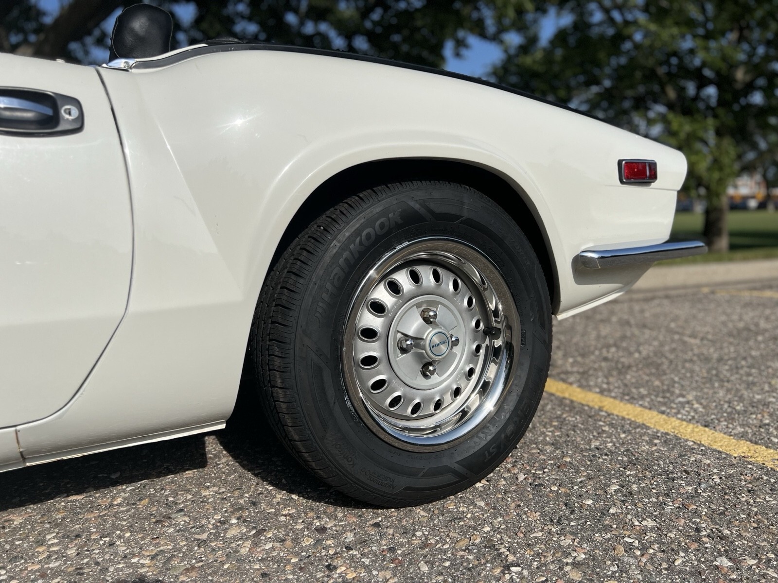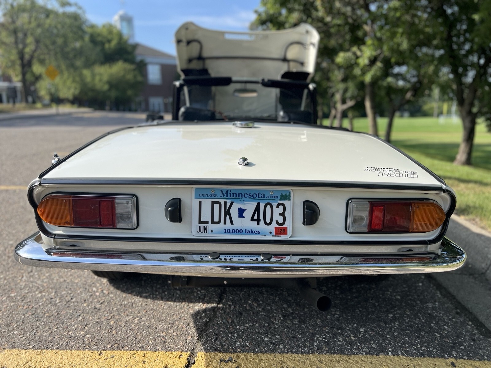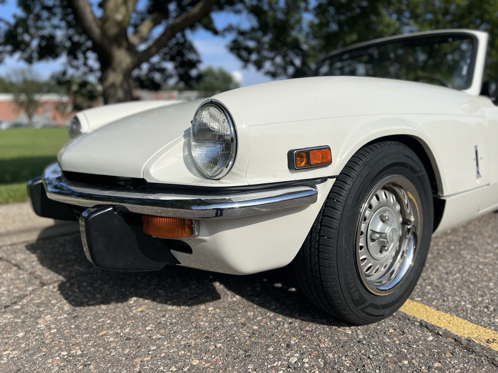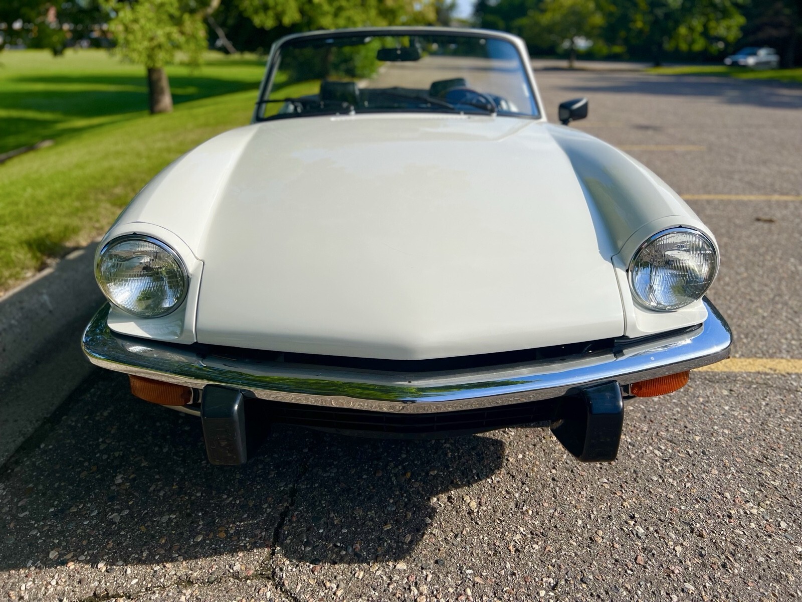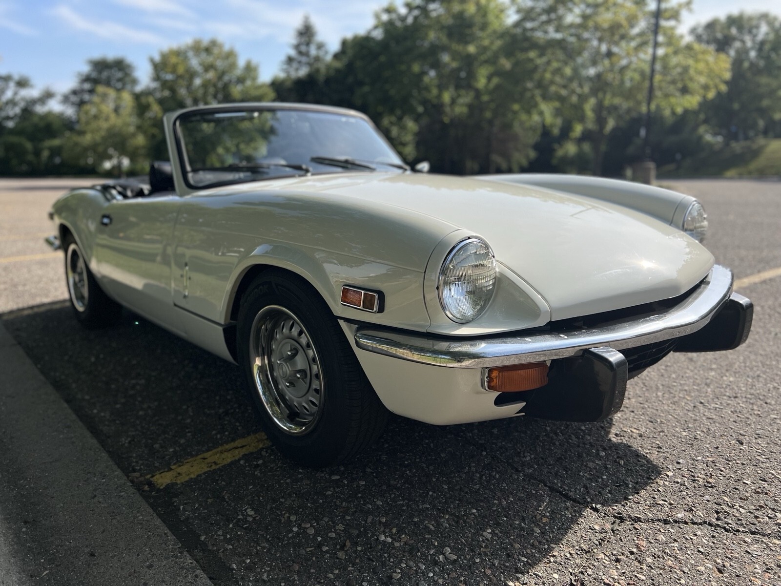 Listing for sale my 1980 Triumph Spitfire 1500. I bought it off a fellow member of the Minnesota triumph club a couple years ago while I was looking for a solid rust free spitfire as a car to improve over the winter. This is my 4th spitfire and my 7th triumph. I’m a big fan of spits. I removed the interior, motor/trans/diff and did a light restoration. The car was solid and ran good but it needed improving. It was repainted in the original white in the 90s and holds up really well. Engine bay was stripped and painted with POR. Engine stripped and painted. Two hairline cracks in the paint on the hood and some light scratches where the hardtop meets the rear deck. The only things that need doing is the windshield has scratch’s where the wiper blade was bad. . Needs new wiper switch( working but won’t turn off) . When you turn the lights on the tach drops a few numbers( a bad ground) That’s all it needs. It starts right up on the choke and runs strong, just drove it 20+ miles. This is not a flip just a hobby of mine. I’ve got over 10k into the spitfire so you get to enjoy the benefits of a well running, solid refurbished Spitfire 1500. Thanks for looking! And feel free to make an offer.
