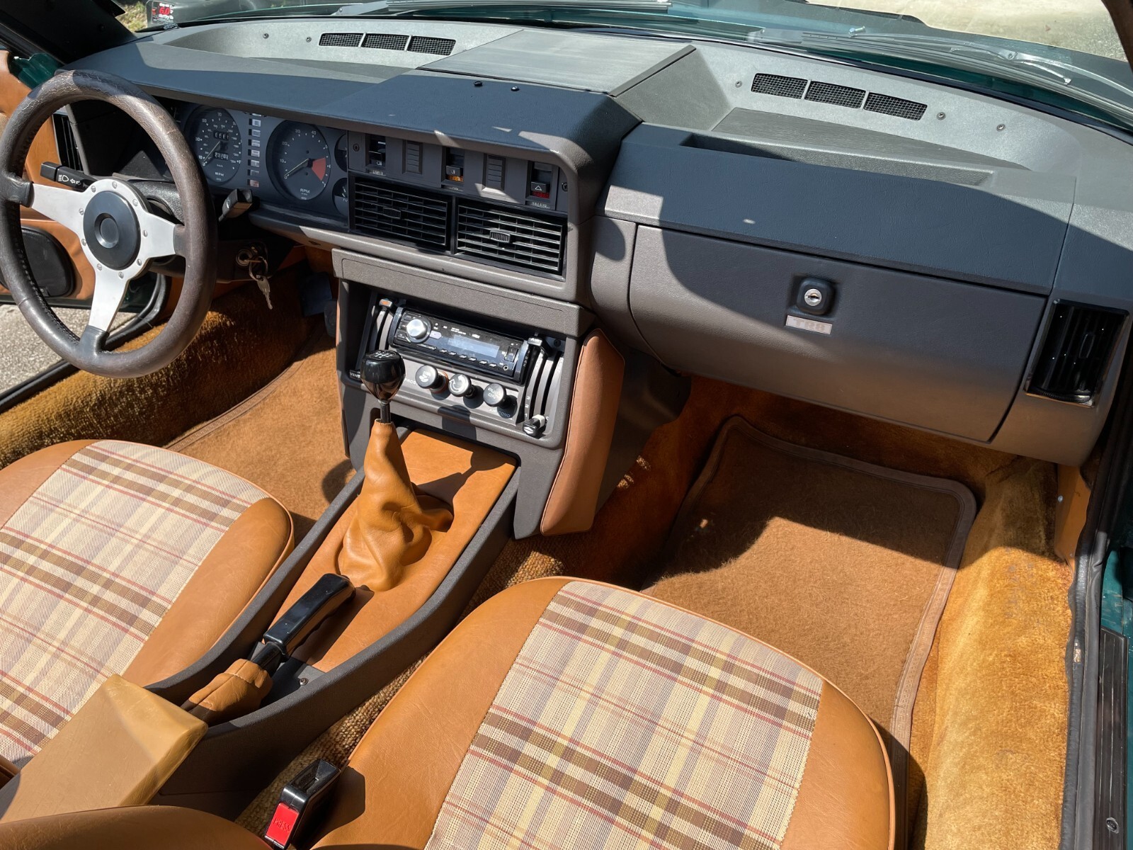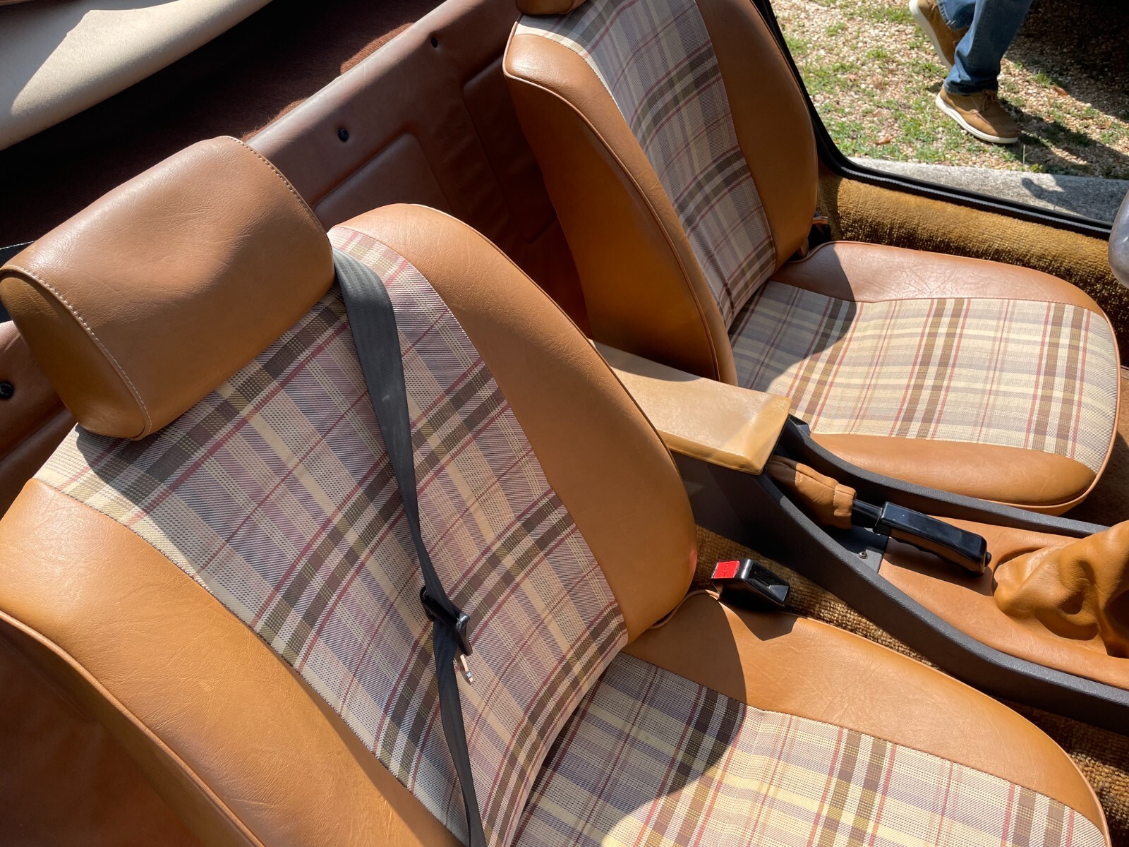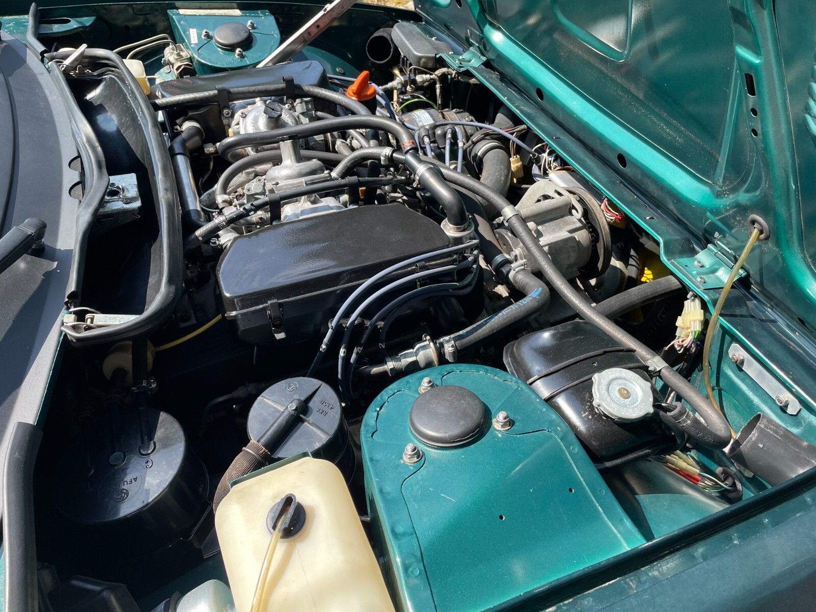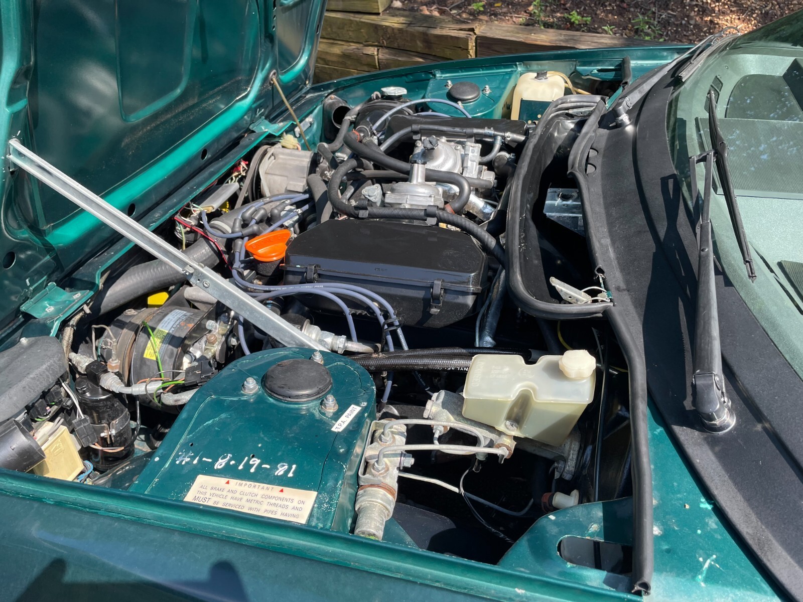 1980 Triumph TR8 Convertible finished in Poseidon Green Metallic with Tan Plaid interior. This rust free example with 32,398 miles (original speedometer was replaced on 7/17/82 showing 8442 miles plus 23,956 now on the replacement) spent the majority of its life in storage, in Texas and is mostly original. The body is straight with no signs of body filler and features a chrome and stainless luggage rack. There are several small scratches and two small dings on the left side and one 6” scratch on the right front fender arch. The paint is faded and shows signs of age. The interior features the original tan Tartan seats and door panels in excellent condition with slight fading on the top surfaces of the door cards. The dash top is in original condition and is entirely without cracks. After removing the original top and frame, the frame was stripped, repainted and fitted with new webbing and felt prior to installing a new premium tan Robbins convertible top. The original black top boot is also included. The clock and gas gauge are not working. A replacement AM/FM Blue tooth radio was installed. The original spare tire and wheel, which have never been on the ground, as well as the original jack, crank and lug wrench are also included. In preparation for sale a major service/update was performed which included replacement of the rear shock absorbers with KYB gas filled units as well as KYB front strut inserts. The entire ignition system was replaced including spark plugs (Champion N12Y), spark plug wires, distributor cap and rotor, ignition coil and a Pertronix electronic ignitor (LU 281) replaced the original problematic Lucas amplifier. Both air filters were replaced. The engine oil was drained and refilled with Castrol GTX 20W50 conventional motor oil and the filter was replaced with a Fram tough guard filter. Power steering system was drained, flushed and refilled with Penzoil power steering fluid and conditioner. Cooling system, which has an upgraded high performance all aluminum radiator was flushed and new anti-freeze/coolant installed. The brake and hydraulic clutch systems were flushed, and brake fluid was replaced with Valvoline synthetic DOT 3-4 fluid. The shifter mounting bushings were replaced. The manual 5 speed transmission was drained and refilled with 2 quarts of GM synthetic synchromesh manual transmission fluid and shifts smoothly. The differential was drained and refilled with Valvoline 75-90w gear lube. The vehicle starts, runs, drives and stops great and is a blast to drive!. The receiver/dryer for the AC system was replaced and the system was evacuated and recharged with R12 Freon. The original Catalytic converters were removed. The original document packet with Owner’s manual and maintenance manual is also included. Originally sold on 9/13/81 and then resold on 4/21/82 to the second owner who kept a meticulous record of all repairs and maintenance, including gasoline purchases with dates, mileage and cost per gallon. The journal is included with the sale. This excellent “daily driver” quality vehicle will be sold with a clean Georgia title and Bill of Sale.