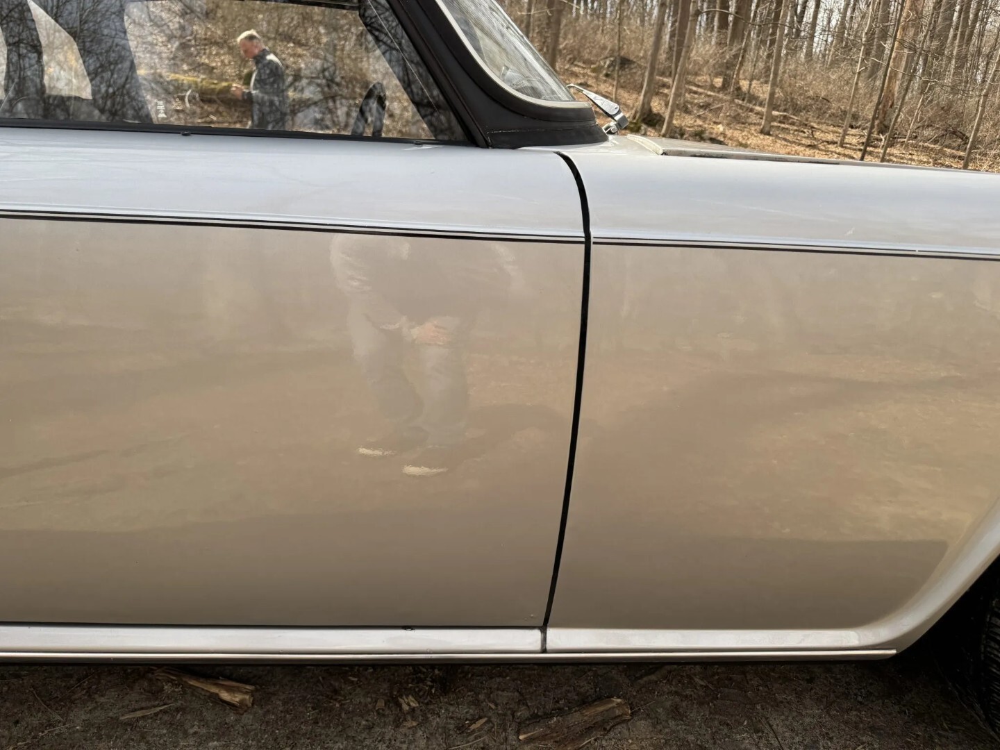 The body and undercarriage are very solid, showing no visible rust or corrosion concerns. Paint quality is driver-level—presentable from a distance, with noticeable blemishes, chips, and imperfections throughout (see images). There is a small area of bubbling on the passenger-side dog leg. The soft top is functional, though a few body snaps are missing, preventing full attachment.