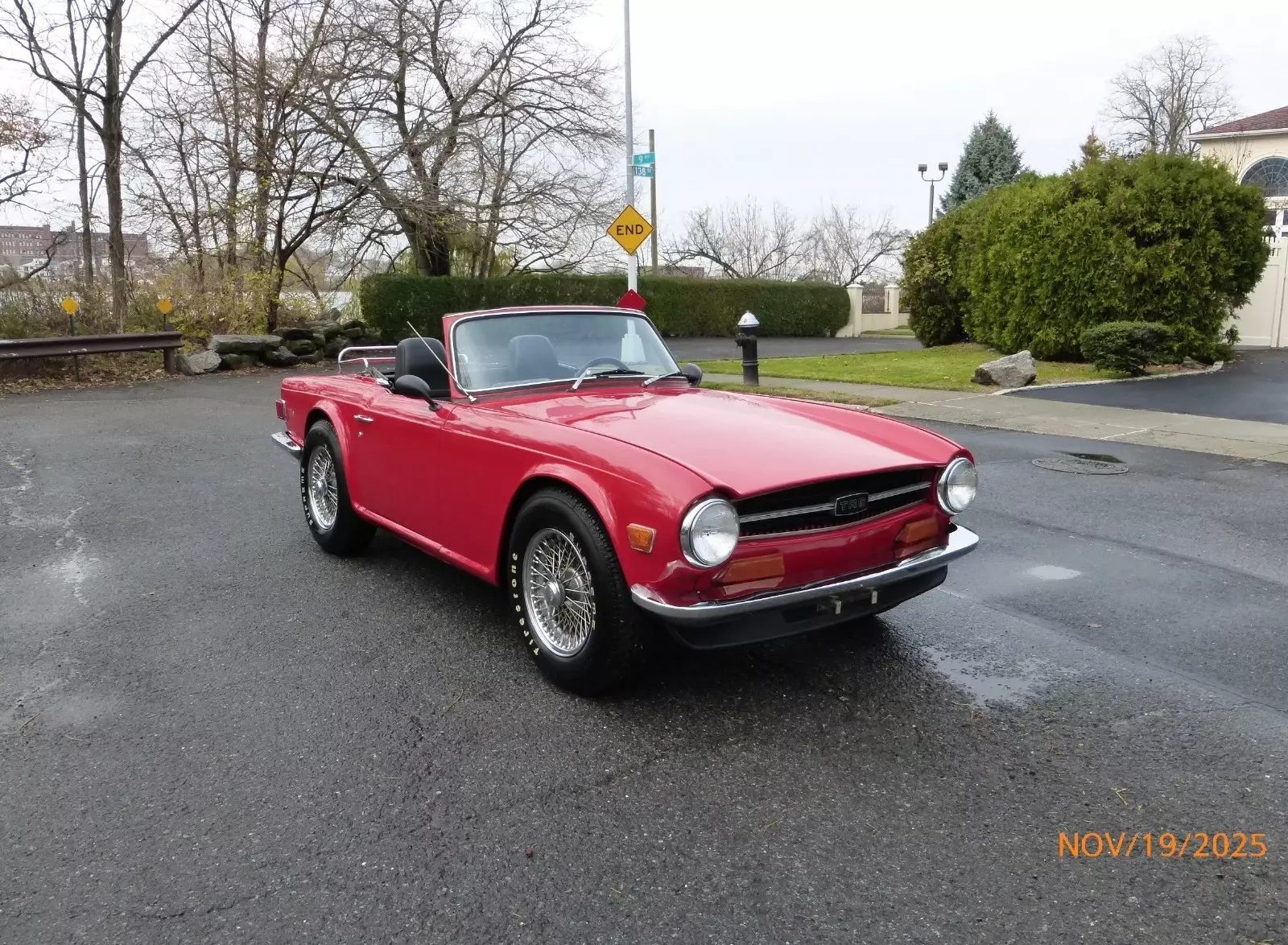 1969 Triumph TR6 that is presentable as it is. The car is in Racing Red with a black interior. It is an early TR6 with the folding headrests and it has the desirable wire wheels. The car presents well all around. Paint is in very good condition with high gloss and deep shine. All the chrome and glass is nice. Interior is slightly dated but usable as it is (driver's seat has two small tears). Carpets are decent. Mechanics are in good working condition - engine starts easily and runs with power. Transmission, brakes and clutch are working well. Car does not overheat on long drives. Recent work includes new exhaust headers and pipes, new alternator, new fuel pump and new gas tank. Trunk and spare tire area appear to be clean. Underside also presents well - frame is straight and solid and the floors appear to be in good condition. The car was originally white from the factory (code 19). Convertible top is old but usable. Car comes with a spare wheel, tonneau cover and some extra parts.More pictures and videos are available on our website. Visit us at Merit Cars.