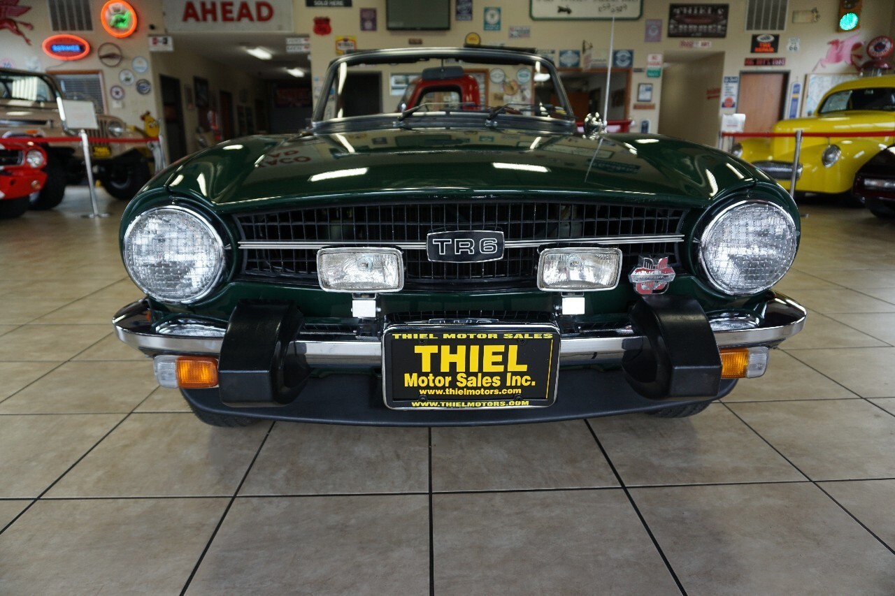WOW What a FIND! JUST IN from SOUTHERN MISSOURI is this BEAUTIFULLY RESTORED 1975 Triumph TR6 Convertible! Talk about an ICONIC British sports car with ALL the RIGHT touches THIS IS THE ONE! Finished in classic British Racing Green with a Tan Convertible Top, Tan Leather Interior, Factory 15-Inch Rally Wheels, and COKER CLASSIC Redline Tires its absolutely STUNNING!And heres the best part this isnt just a GORGEOUS British classic its a SMART INVESTMENT in a RED-HOT TR6 MARKET! With a current NADA Retail Value of $48,600, weve priced this one to SELL FAST at JUST $24,997! Thats right youre not only getting a head-turning classic, but a TON of instant equity too! Whether youre wanting to join other enthusiasts at a CAR SHOW or just a FUN Sunny-Day ICE CREAM getter HERE IS THE ONE TO BUY! Check out the details - Check out the photos - Watch the YouTube Walk-Around Video then CALL or EMAIL us TODAY to BuY-iT-NOW! Need assistance with FINANCING or SHIPPING??? NO PROBLEM!!! We have the resources to get this ICONIC CAR from our SHOWROOM FLOOR to YOUR GARAGE DOOR! 800-605-2252EXTERIOR: British Racing Green - Redone in 2020-21 Tan Convertible Top - New in 2020-21 Cooker Redline Tires (185/R15) Factory Vented Rally Wheels Front & Rear Chome Bumpers Factory Chrome Fog Lights Factory Stainless Headlight Covers Factory Trunk Luggage Rack INTERIOR: Light Tan Leather Interior Factory Bucket Seats Walnut Dash Factory Gauges Walnut Steering Wheel Factory Am/FM Cassette Stereo DRIVETRAIN: 2.5L (2,498cc) In-Line 6-Cylinder Engine 4-Speed Manual Transmission Rear-Wheel-Drive Dual Carbs. Dual Exhaust Nice/Clean/Detailed Engine Bay Starts Easy - Idles Smooth - Runs Strong! (See Video) Again; if youre looking for a NICELY RESTORED Triumph TR6 at a VERY NICE PRICE HERE IS THE ONE TO BUY! NADA BOOK VALUE: $48,600 BuY-iT-NOW: $24,997 CALL or EMAIL us TODAY to BUY-iT-NOW! 800-605-2252*. **. *****TRADE-IN ASSISTANCE AVAILABLE****We take trades, Offer Nationwide Financing, and can assist with SHIPPING Door-2-Door WORLDWIDE! We are a 50 YEAR-OLD FAMILY OWNED & OPERATED DEALERSHIP doing BUSINESS the RIGHT WAY since 1972! We offer 5 ACRES of INVENTORY, LARGE AC & HEATED SHOWROOM AREA, and FULL SERVICE DEPARTMENT with CERTIFIED TECHS on STAFF! ****SEE 50+ DETAILED PHOTOS of this SUPER NICE CLASSIC & MANY MORE CLASSIC and COLLECTORS @ WWW.THIELMOTORS.COM****563-659-9309.#THIELMOTORSDEWITTShipping Assistance:We can assist with shipping quotes and shipping arrangements. We are not affiliated with any specific auto carrier. We assume no responsibility for damages incurred after the vehicle leaves our showroom. Any claims or other communication regarding shipment of vehicles will be between you and the transporter, not with Thiel Motor Sales Inc.Purchase Disclaimer:VERY NICE & EYE-Catching 1975 Triumph TR6 Convertible. NOT a $250,000+ Barrett-Jackson Bank Breaker, nor a perfect show piece, but a good driver plus quality classic car that will turn heads at any classic car event, gas station, or sunny day cruise! Starts Easy, Idles Smooth, Runs Strong (See Video!). As with any vehicle - expect imperfections such as; rock-chips, scratches, dings, dents, etc. to be associated with the vehicle's age, mileage, and previous use. Please call or email with any specific condition questions. 800-605-2252.Due to our inventory size, location, and sometimes inclement weather, we are unable to drive every vehicle for long distances. We also cannot guarantee that every gauge, light, window, horn, option, function, etc., will work as it should. These cars are old, and components can fail at any time with little or no warning. Iowa is a non-inspection state; therefor, please check your local and state inspection/emissions requirements. Please note that we do not guarantee any factory or aftermarket air-conditioning systems, gauges, or electrical systems. Given the nature of the vintage vehicles we sell, these components will need upkeep or attention. In addition, many times these vehicles sit for long periods of time and once you begin to drive them, seals harden and gaskets may begin to leak. Classic cars are like old Harley motorcycles, they always leak. Please make sure you are comfortable with this before buying a vintage automobile. Classic vehicles will always require a certain amount of maintenance and upkeep. The information provided in this ad is solely for your convenience and advertising purposes. The description is an opinion only and should not be considered a complete description of any or all faults; it may not be relied upon nor taken as fact or otherwise a representation or warranty of any sort. Please note, we did not build or restore the vehicle. Some vehicles will come with original paperwork, restoration receipts, books, manuals, covers, additional keys; should the vehicle come with any of these items it will be listed in the description and sometimes shown in the photos. All vehicles are sold AS-IS, WHERE-IS with all faults known/unknown and with no implied warranty. ALL SALES ARE FINAL, with no exceptions. Mileage will be considered exempt due to age, unless otherwise specified in the description. Pre-Purchase inspections are welcomed and encouraged. We provide many detailed photos, YouTube walk-around videos, and describe these vehicles to the best of our ability; however, we are only human and there may be something we miss or see totally differently than you. If you have any questions or concerns, please call or email before making purchase. We do offer a classic car extended warranty package through Freedom Warranties, please contact a Thiel Motor Sales representative for exact coverage and cost.
