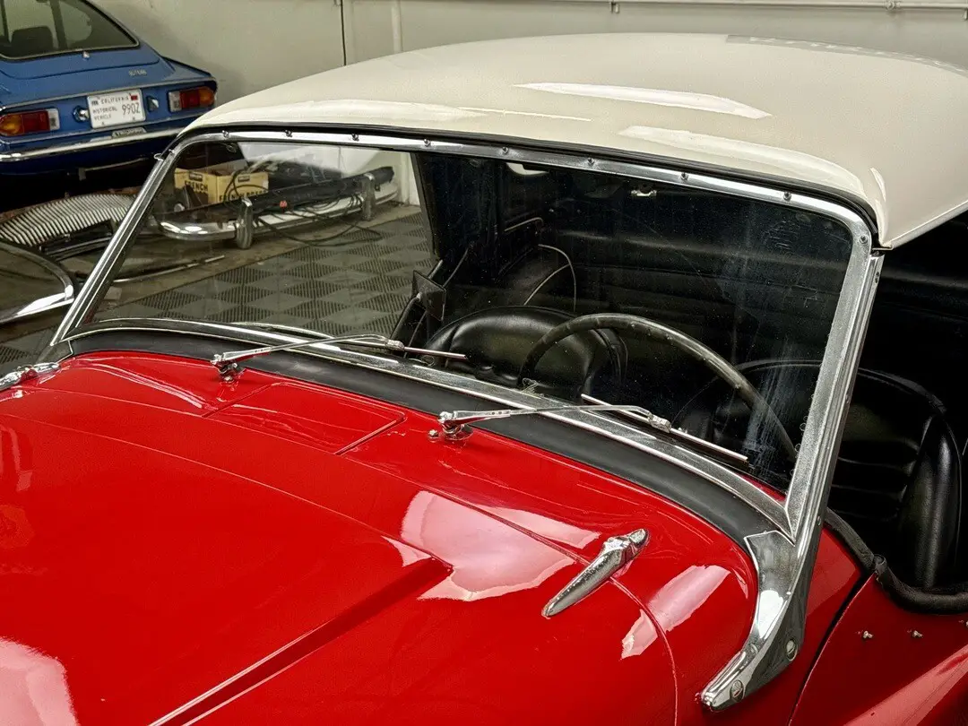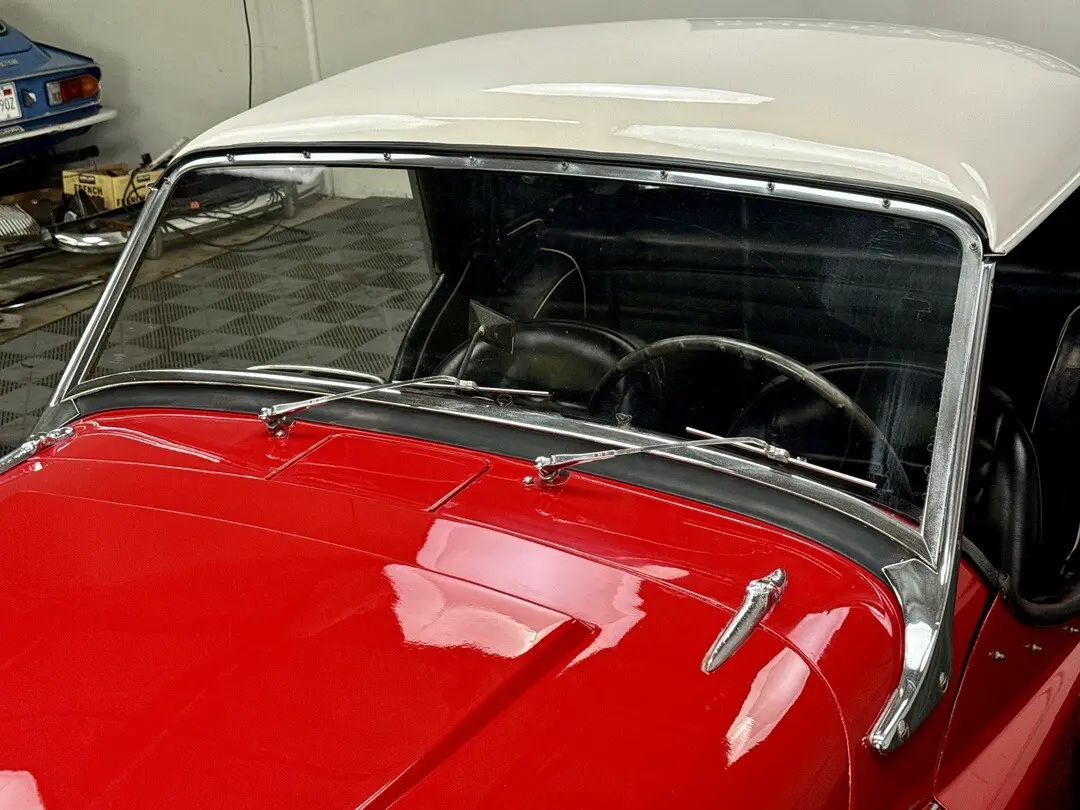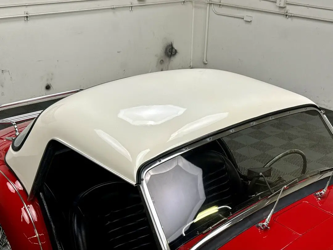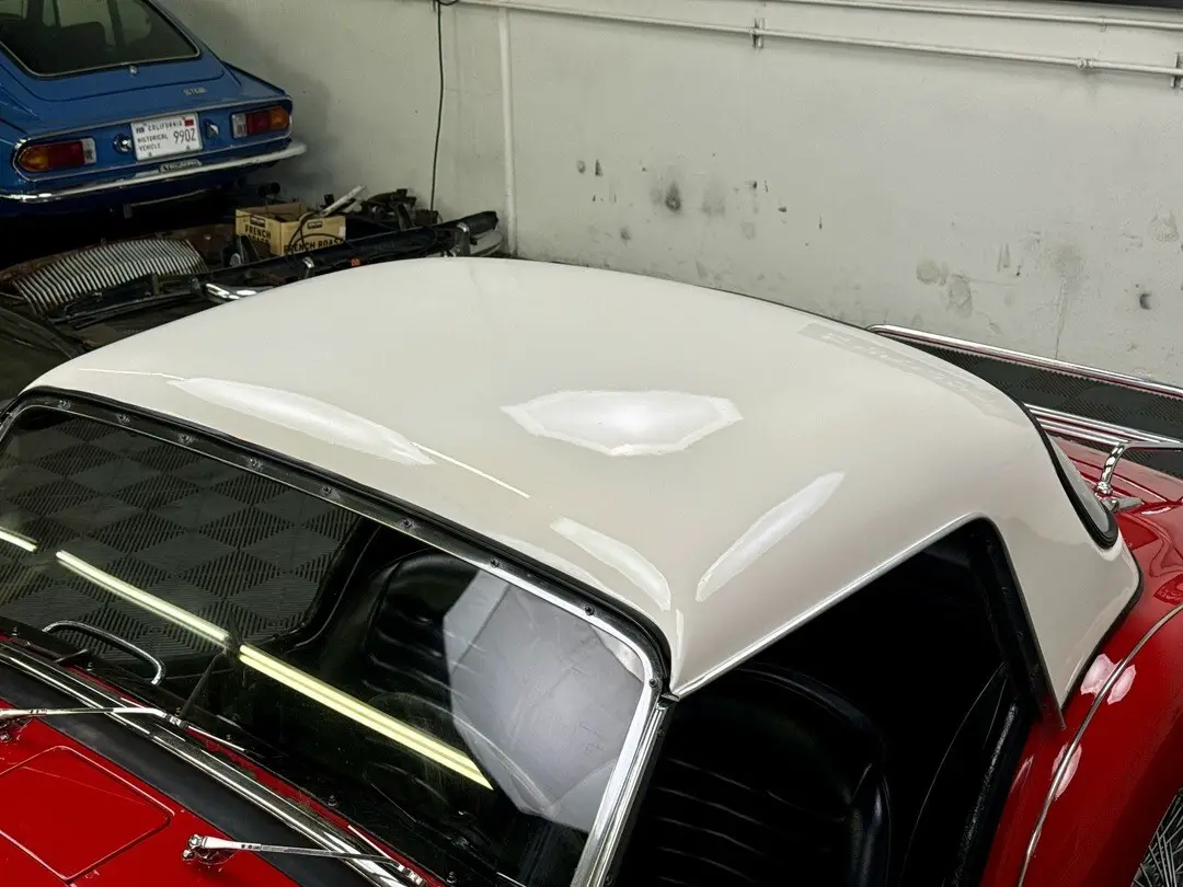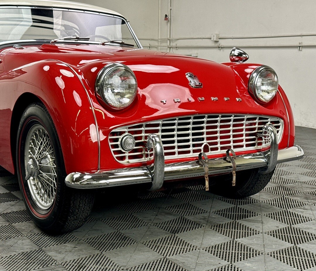 1959 TRIUMPH TR3A ROADSTER. SIGNAL RED, BLACK INTERIOR, BLACK TOP AND TONNEAU COVER, IVORY FACTORY HARDTOP. 4-SPEED, 60-SPOKE WIRE WHEELS, CHROME LUGGAGE RACK. VERY GOOD CALIFORNIA CAR SHOWING 63,011 MILES. GREAT DRIVER.