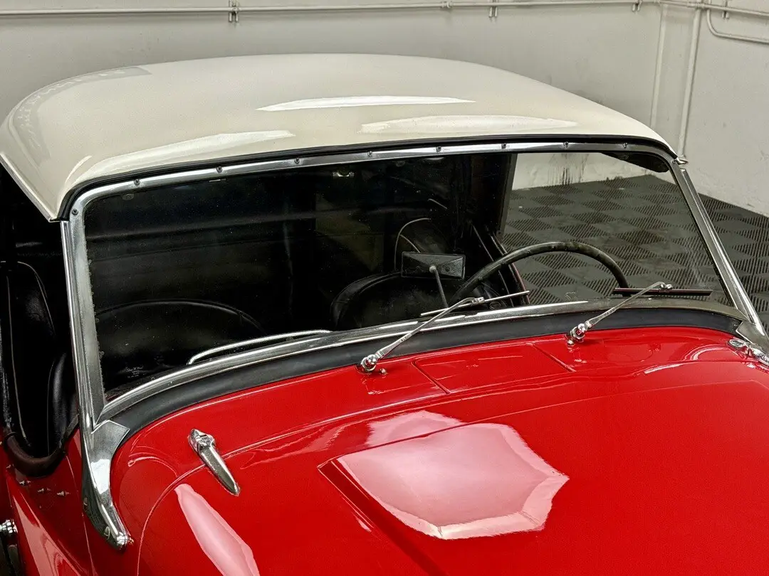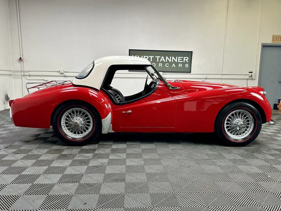 -Highly optioned car fitted with a factory hardtop, wire wheels, and luggage rack. Classic Triumph TR3A color scheme.