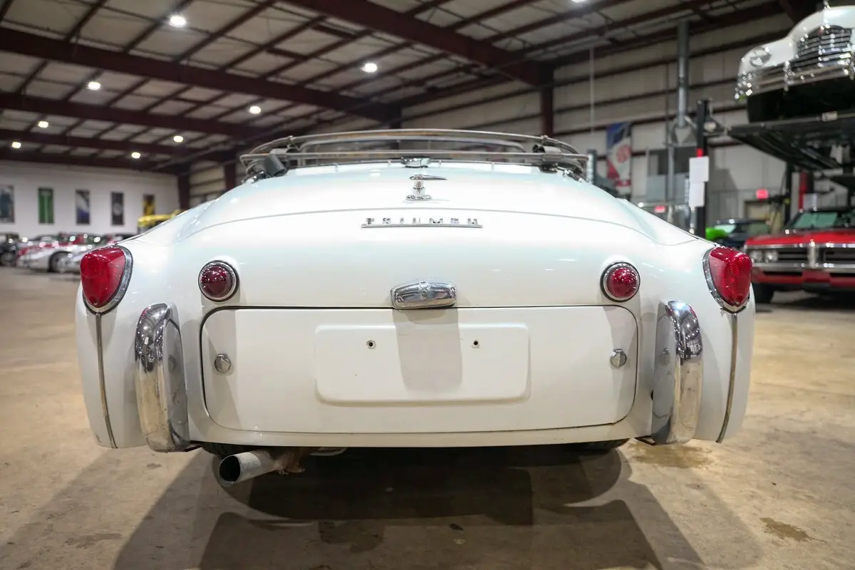 GR Auto Gallery is excited to present this delightful 1959 Triumph TR3, finished in a classic Pearl White over black leather interior with a matching black manual soft top. This compact roadster captures the spirit of open-air British motoring with its timeless lines, low-slung stance, and charming details like the steel wheels with factory hub caps and an exposed front grille.