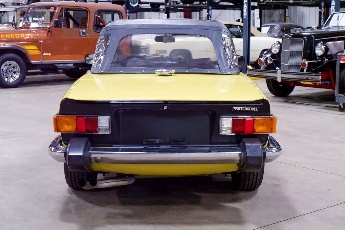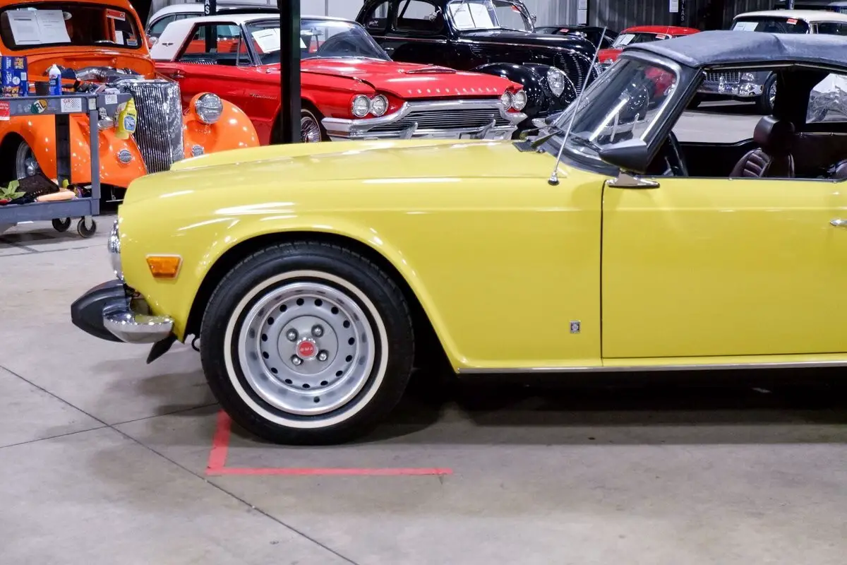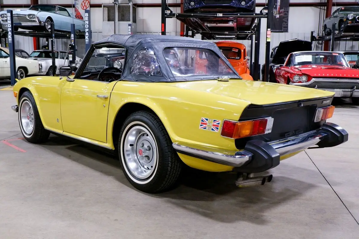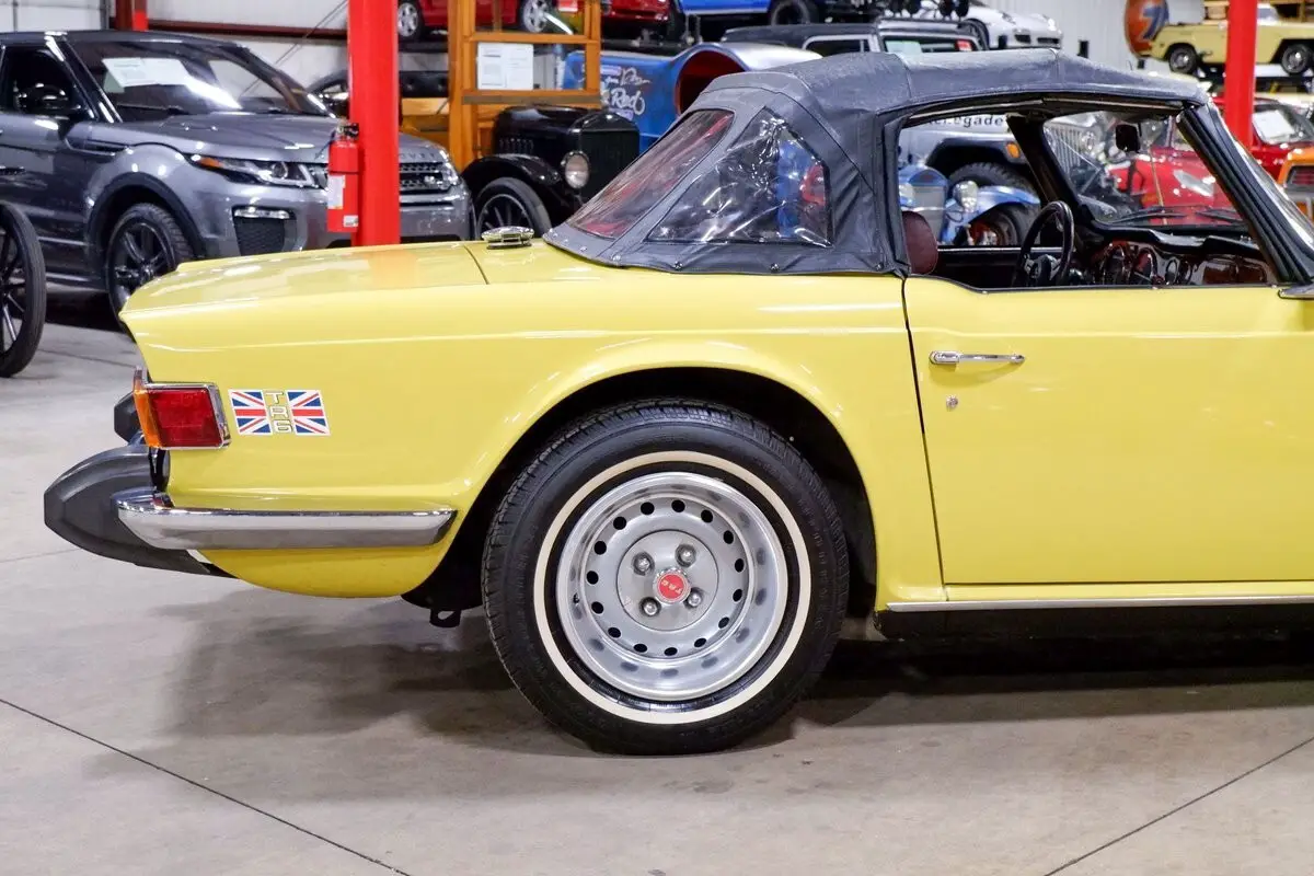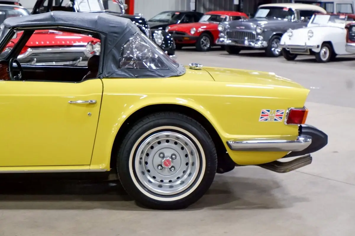 GR Auto Gallery is pleased to present this exceptional 1976 Triumph TR6, a stunning example of British motoring heritage. Finished in striking Mimosa Yellow, this immaculate roadster is complemented by a clean interior and a matching convertible top that is in excellent condition and operates flawlessly. Inside, the Dark Cherry leather seats are beautifully preserved, and the wood dash remains in outstanding condition, adding to the car's classic charm.