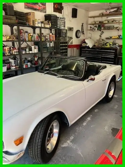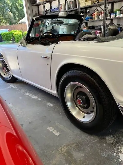 1972 Triumph TR6 Convertible For Sale in Puyallup, WA 98371 This TR6 is powered by a 2.5L I6 engine paired with a 4-speed manual transmission with overdrive. The odometer reads 98,260 original miles and is shown with a white exterior and a black leather interior. This vehicle has been garage-kept and well-maintained. Features Soft Top Leather Bucket Seats Wood-Veneer Dashboard Chrome Accents 15” Wheels with UniRoyal Tiger Paw Tires Tonneau Cover Owner’s Notes “M