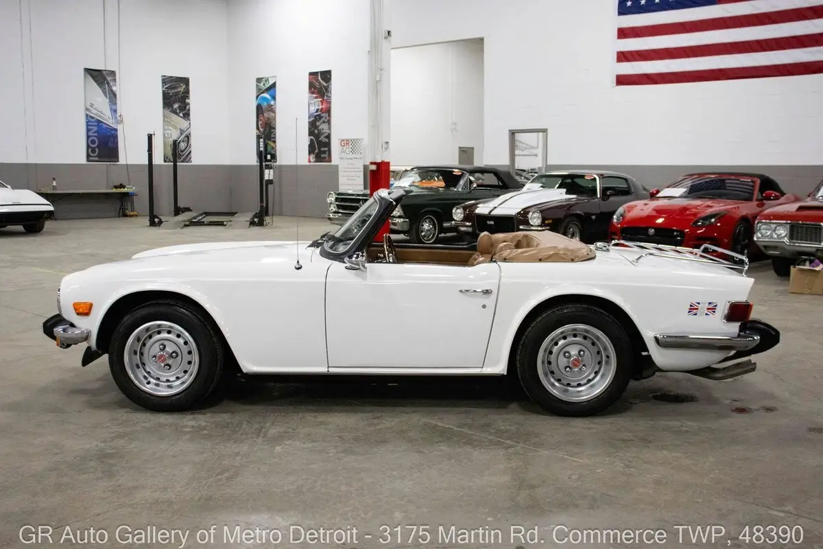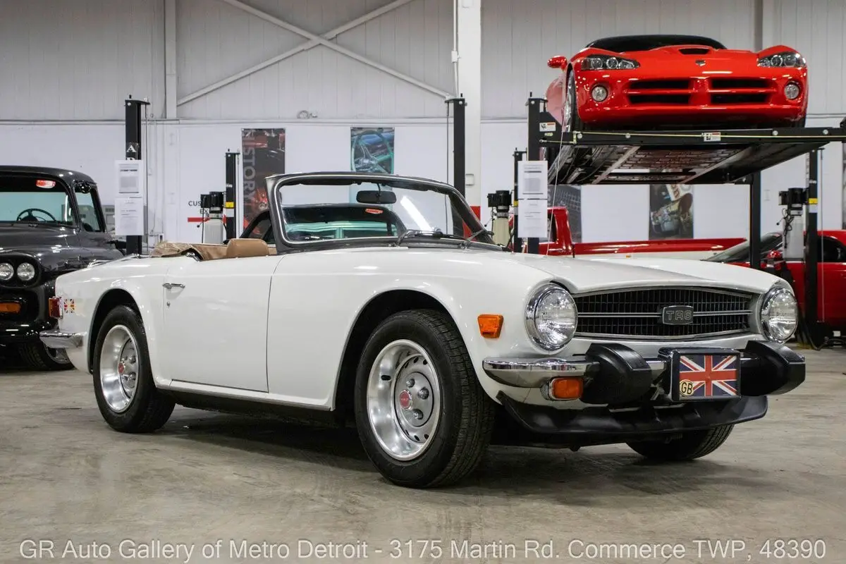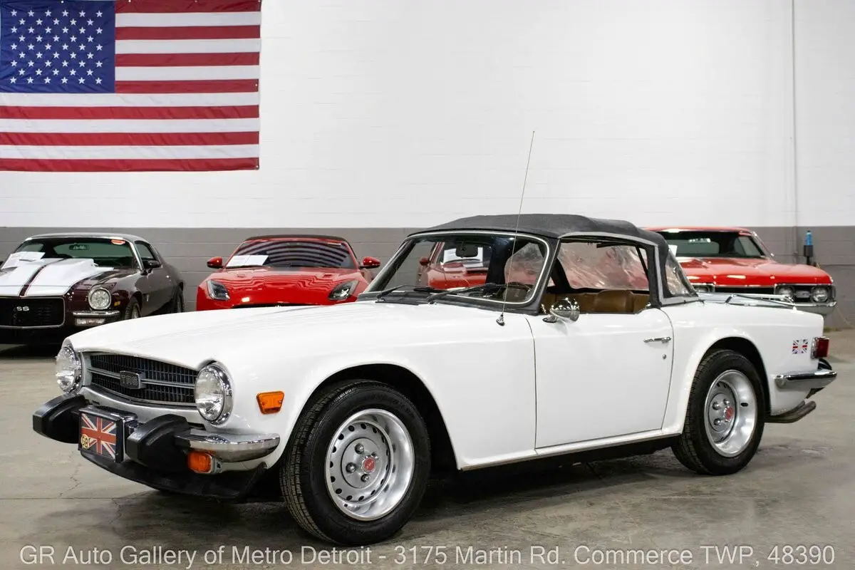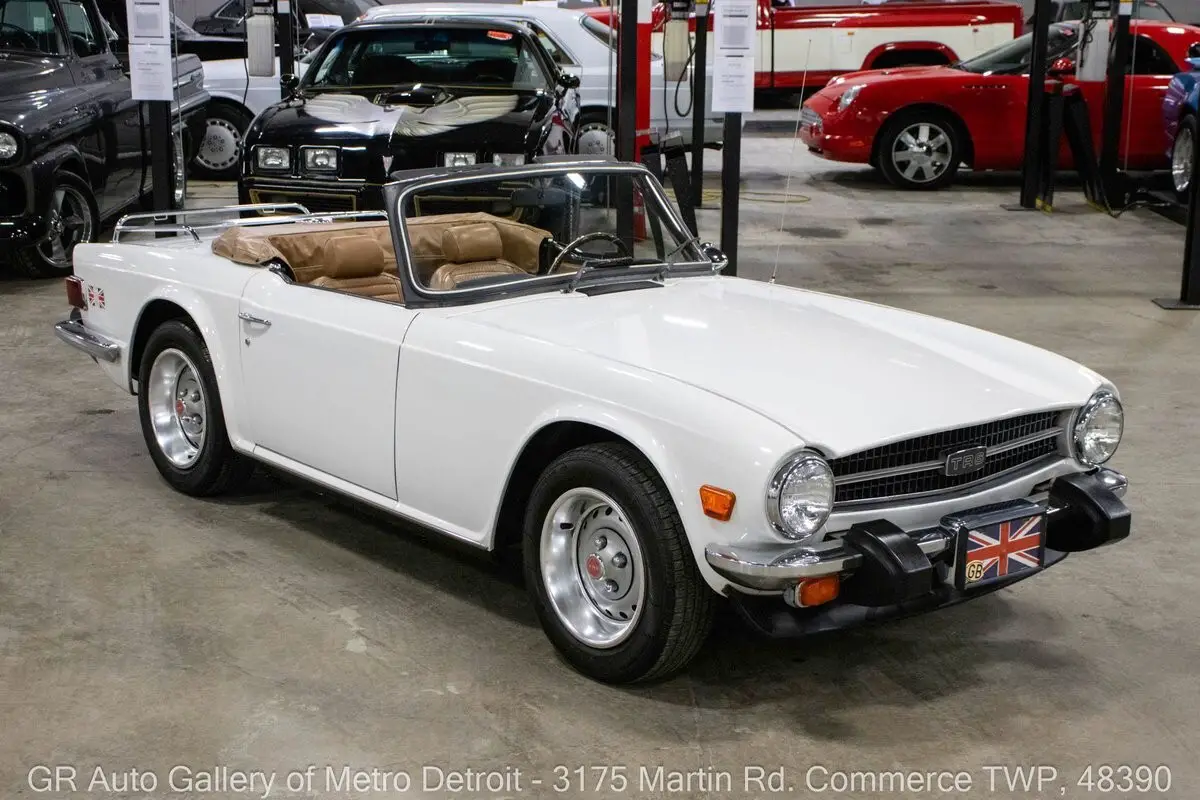 GR Auto Gallery is pleased to present this 1976 Triumph TR6 for your consideration. This TR6 comes in a sharp White exterior over a clean Camel interior and shows just 54,850 original miles. Powering this British roadster is a 2.5L Inline 6 paired with a 4-speed manual transmission, delivering the engaging driving experience the TR6 is known for. This example features all new interior trim pieces installed in 2016, a manual convertible top, beautiful wooden dash trim, crank windows, Renegade speakers, and chrome front and rear bumpers. It is believed to have been repainted prior to current ownership and comes with numerous receipts documenting routine maintenance throughout ownership. The original steering wheel and original owner's manual are included, adding to the car's authenticity and appeal. Drive this one out of our showroom or have us assist with shipping it to you anywhere in the United States! Don't hesitate to call us with any questions or for more information.