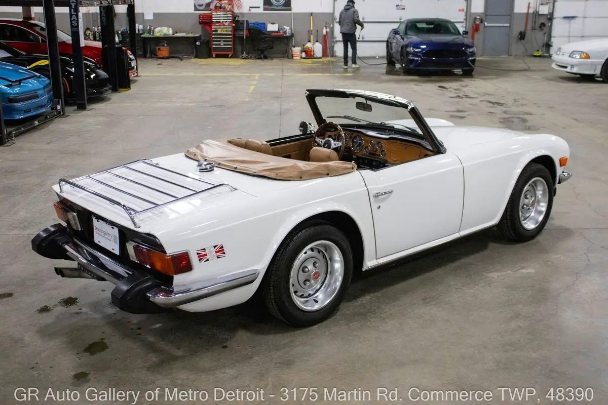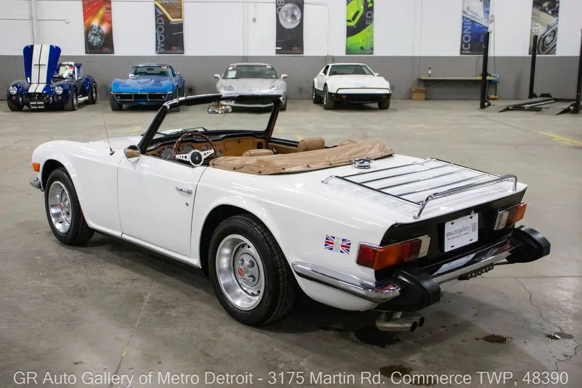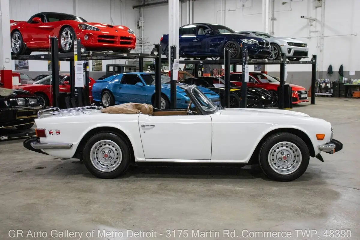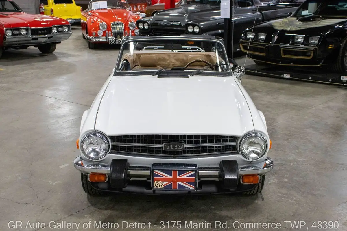GR Auto Gallery is pleased to present this 1976 Triumph TR6 for your consideration. This TR6 comes in a sharp White exterior over a clean Camel interior and shows just 54,850 original miles. Powering this British roadster is a 2.5L Inline 6 paired with a 4-speed manual transmission, delivering the engaging driving experience the TR6 is known for. This example features all new interior trim pieces installed in 2016, a manual convertible top, beautiful wooden dash trim, crank windows, Renegade speakers, and chrome front and rear bumpers. It is believed to have been repainted prior to current ownership and comes with numerous receipts documenting routine maintenance throughout ownership. The original steering wheel and original owner's manual are included, adding to the car's authenticity and appeal. Drive this one out of our showroom or have us assist with shipping it to you anywhere in the United States! Don't hesitate to call us with any questions or for more information.