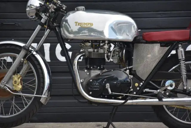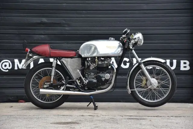 This 750 cc Cafe Racer is built up from a 1977 Tiger frame and a 1979 T140 E Bonneville engine.