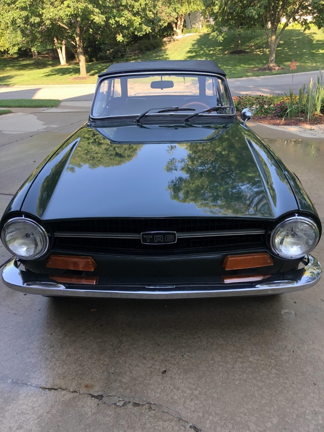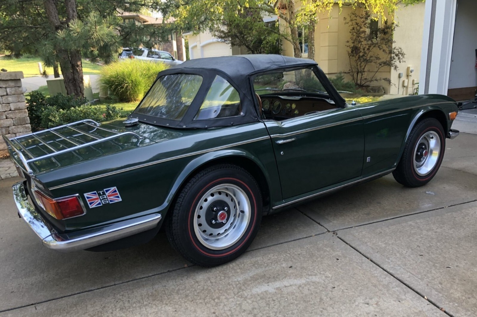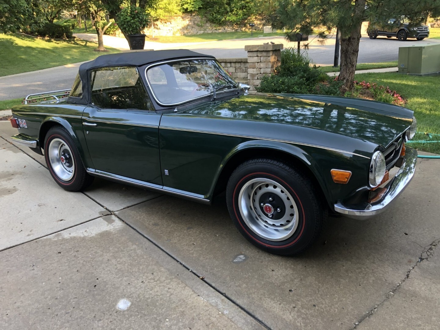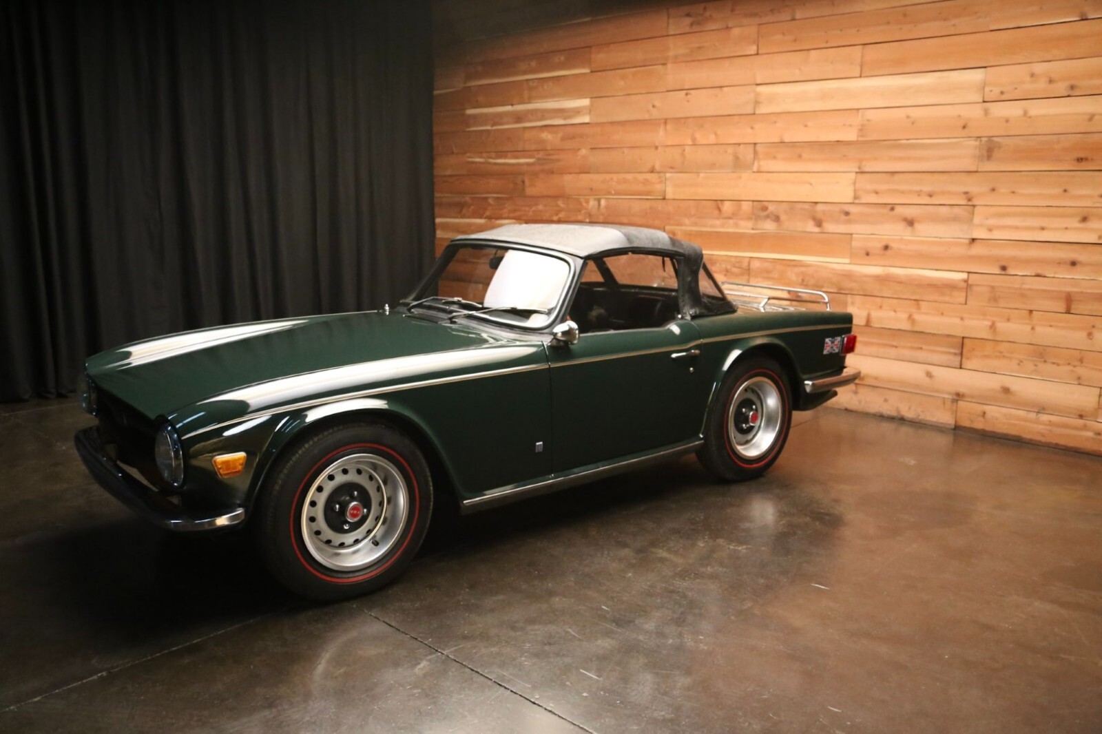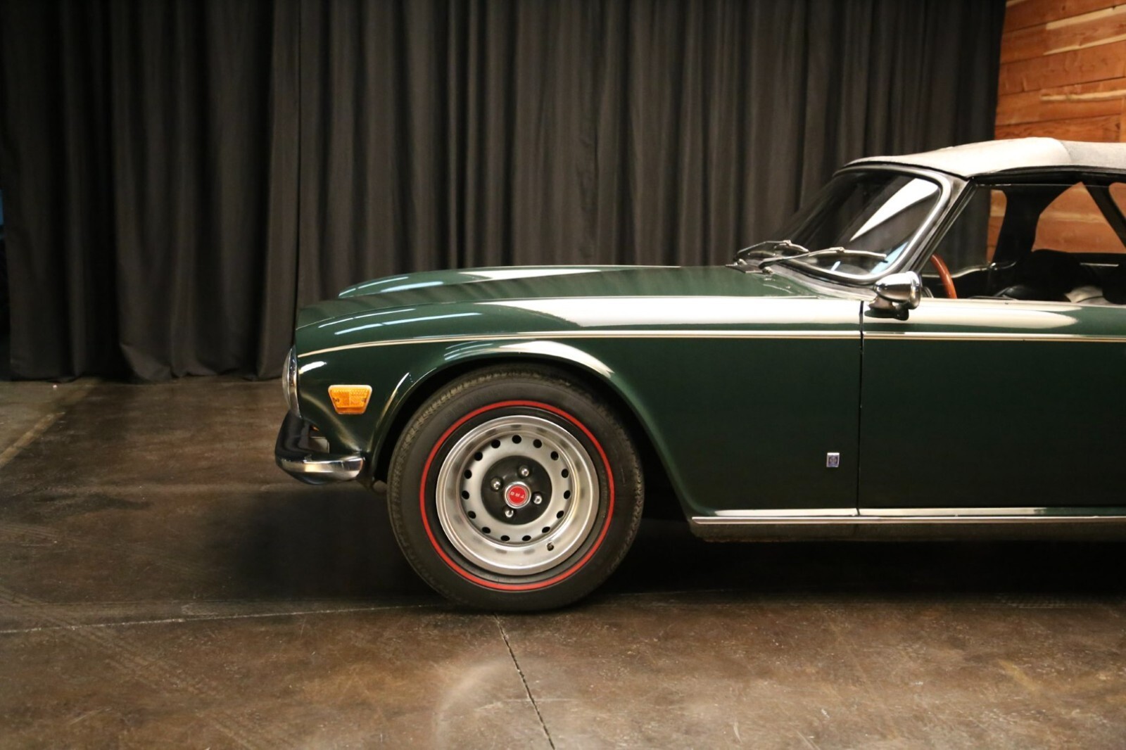 This 1973 Triumph TR6 is a well-presented example that has benefited from extensive work performed under previous ownership. Service and refurbishment efforts included refinishing the exterior, reupholstering the seating surfaces, and replacing the black soft top and windshield. Additional work included replacement of various brake and steering components.