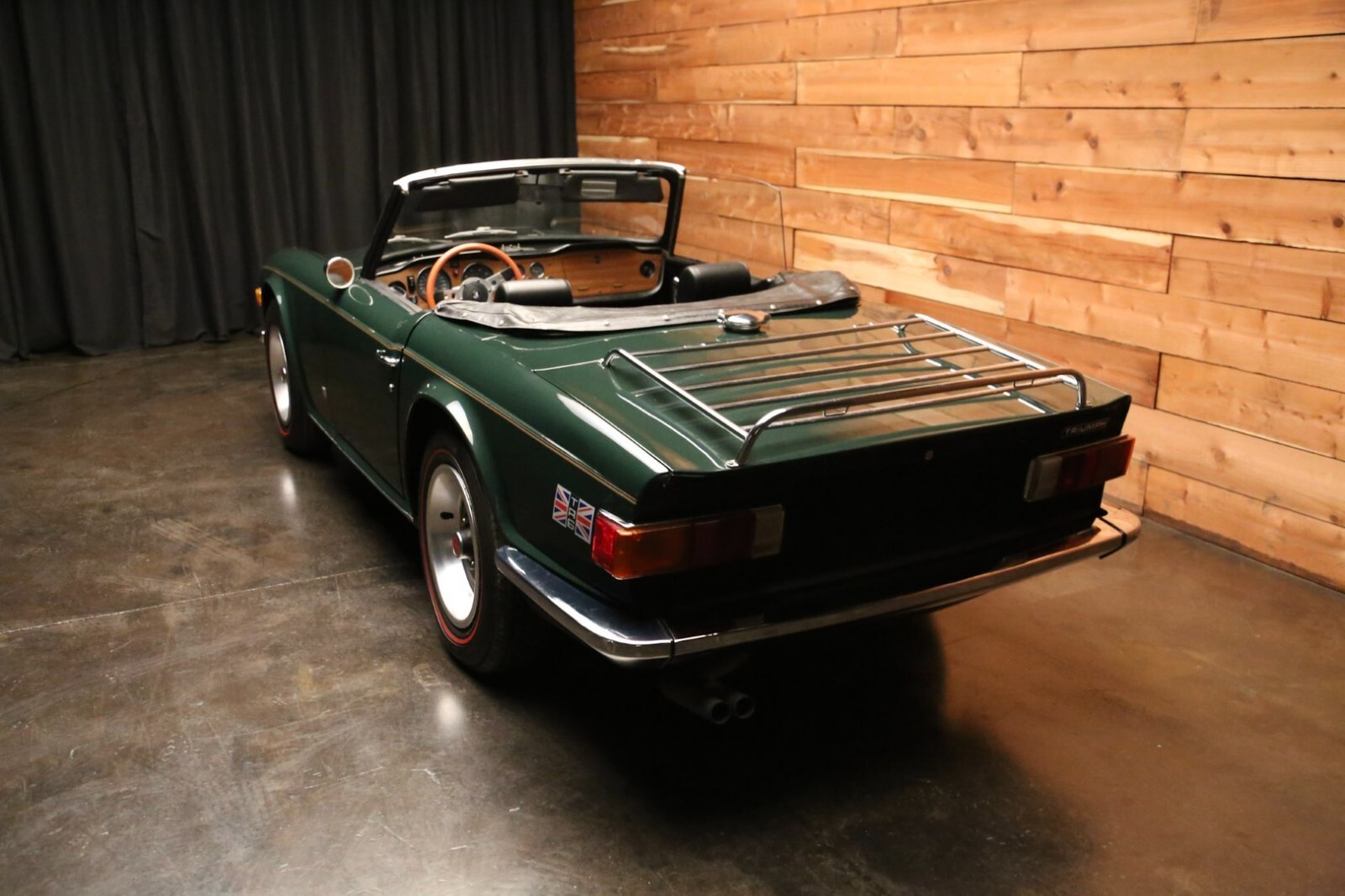 The car is powered by a 2.5-liter inline-six paired with a four-speed manual transmission, and it is equipped with a matching top boot, 15″ steel wheels, a heater, a wood-rimmed steering wheel, and an AM/FM stereo. This TR6 is offered with manufacturer’s literature and partial service records.