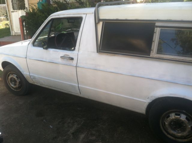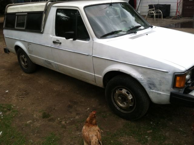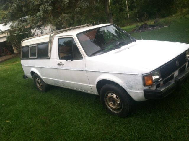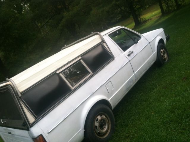 NICE 1981 RABBIT pickup very low miles for the year has 131000 miles on it just this year had new head gasket remaned head installed new water pump and new time belt it ran ok befor but it was leaking oil around the head and rather then just do a gasket we did a valve job too runs relay good also did a upgrad3e to a mark 2 fuel pump wich added to the reliability of the truck ' the trans is a 5 speed goes into gears smooth shifts well clutch is in good shape too " also we put new tires frt and rear along with new frt tie rods and a alighnment drives down the road straight no pulls " and there are several pics with old paint as well a s white primer its in now I was going to paint and keep but I have 1 other pickup that needs paint so I decided to sell the white one as I have a red caddy too and need money to finish 1 , truck also has a veggie oil sstm on it works wellits a heated 10 gal tank in bed of truck this all works and only thing I never liked about it they disconeted the heater to make this work im sure it can be hooked back up everything there . truck also has new frt struts saches type almost forgot?? new alternator and starter" and comes with top as seen in pics this has been my daily all summer and is a very reliable truck and ide trust to drive it anywhere