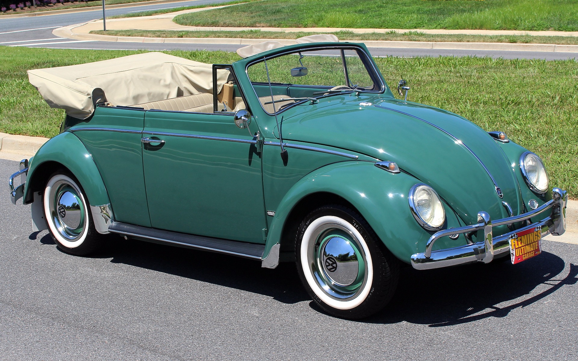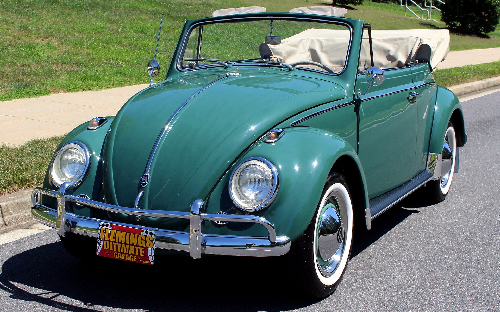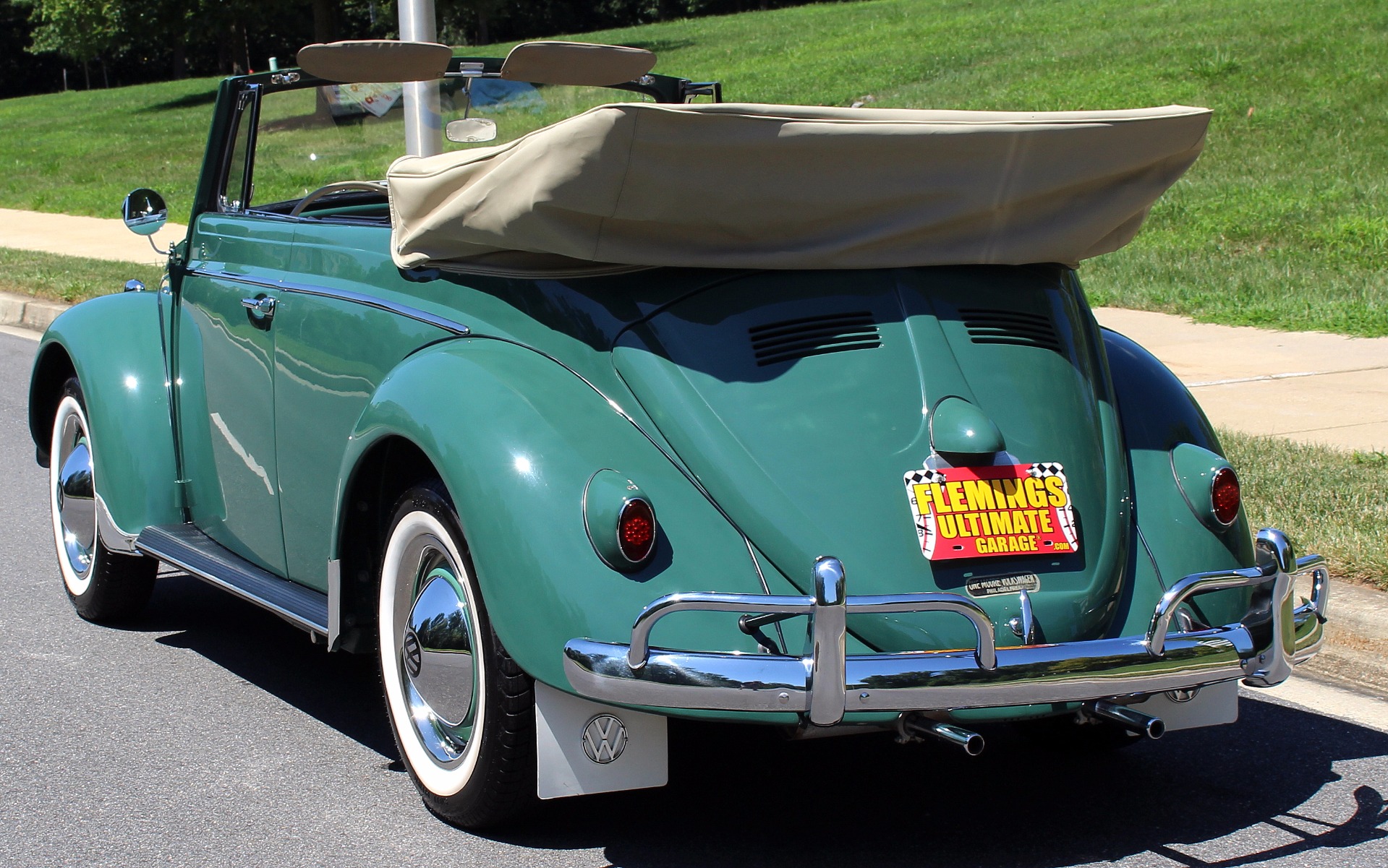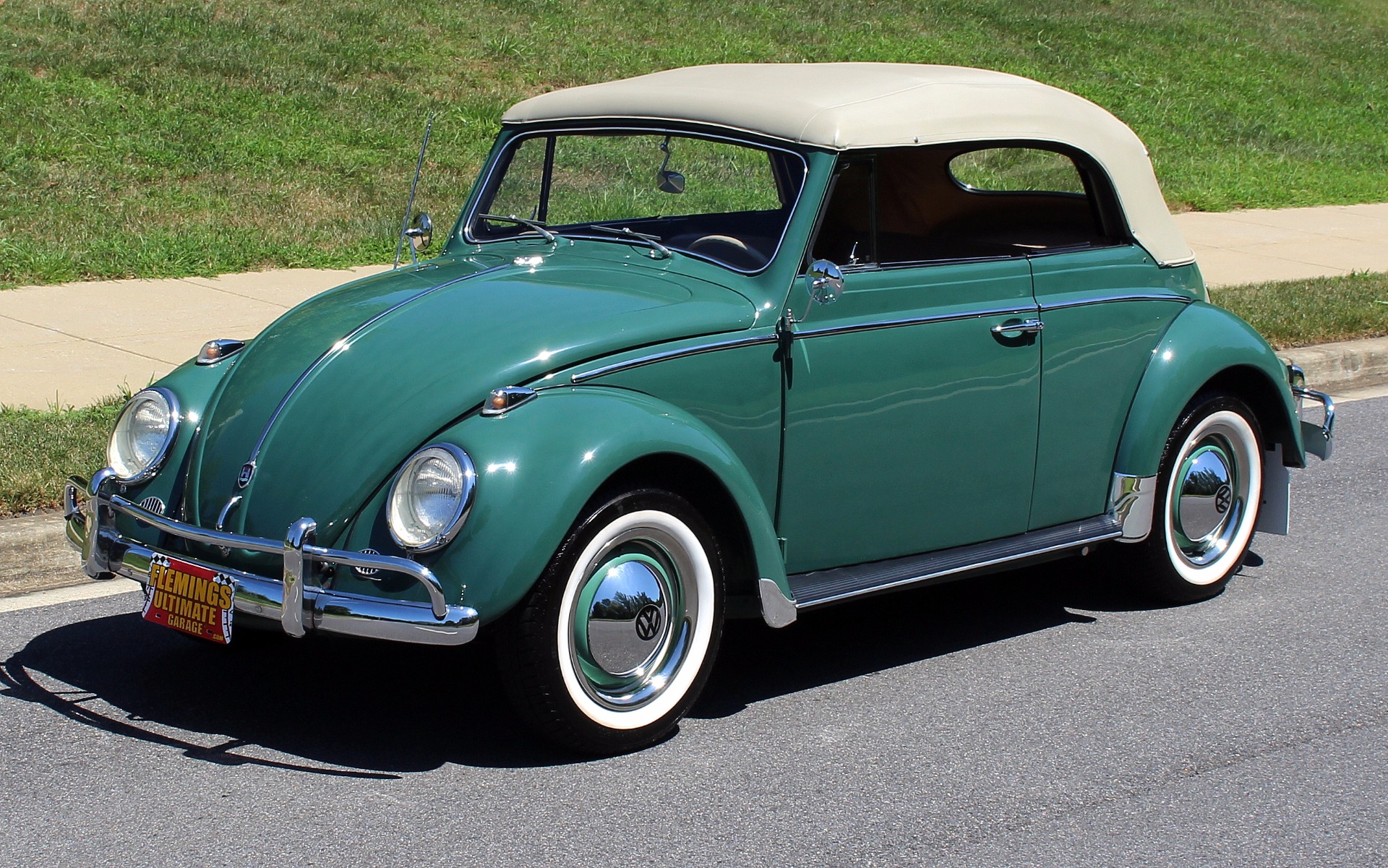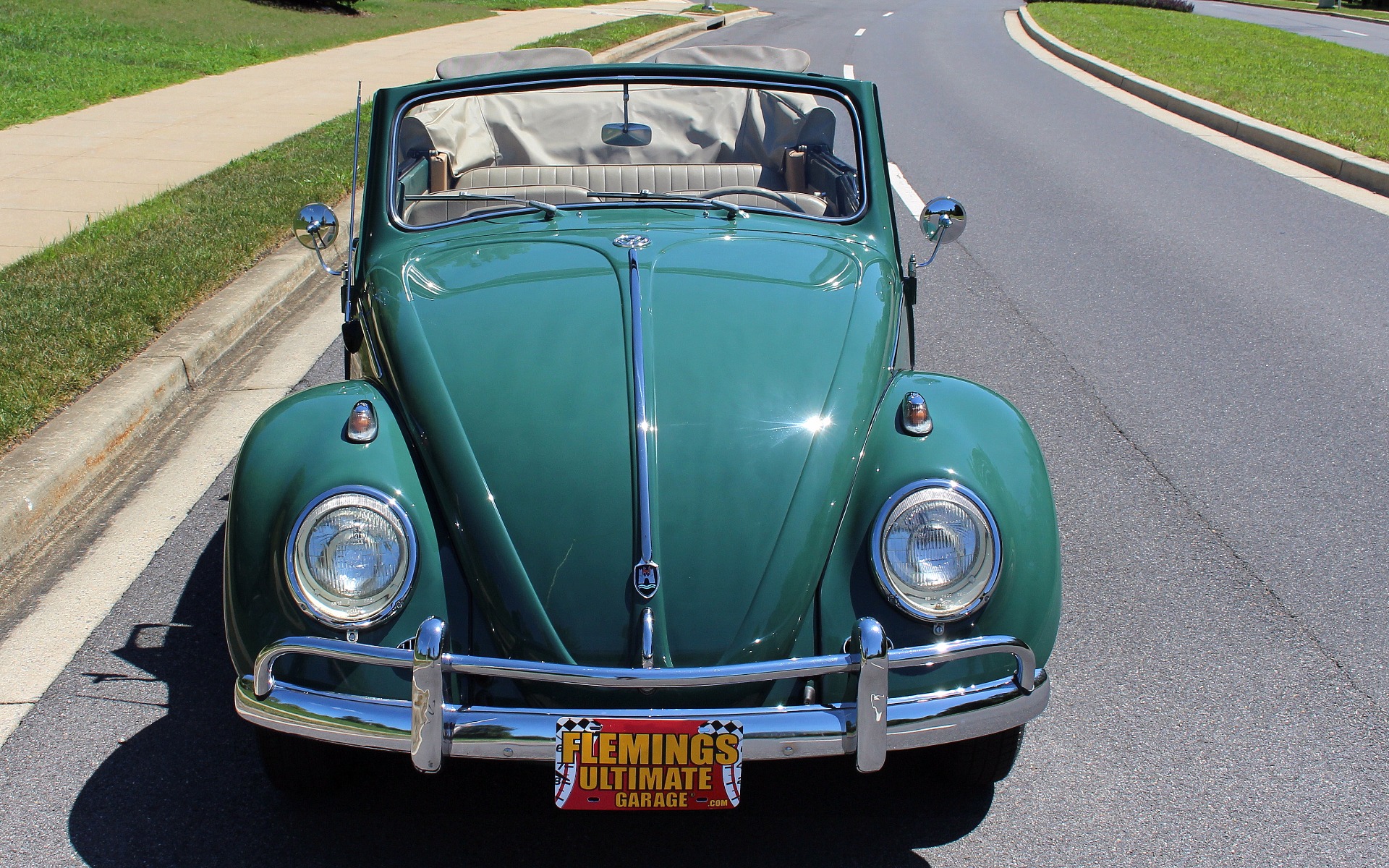 60 V.W BEETLE CABRIOLET Beautiful, No-Expense-Spared($60K reportedly spent), Rotisserie restoration of this iconic beach cruiser (Look underneath this car!!)) Rebuilt original famous VW 1200cc virtually Indestructible aluminum 4 cylinder, Freshly rebuilt 4 speed synchromesh trans, 4 wheel fully independent suspension, Mirror finish Ceramic Green paint, professionally show waxed and detailed, New Stone Beige convertible top w/matching boot, All new Stone Beige bucket seat interior and correct matching square weave carpeting, Restored dash with original 80 MPH Speedo, Original Becker AM/FM radio, All new Chrome & Stainless trim, Period correct Volkswagen Moon disc wheels with Wide White-line tires, Great sounding, factory dual exhaust system, Nice enough to show or just drive this collector quality, fully restored classic bug! Any car that makes you smile like this when you see it needs to be in your life ( just sayin)