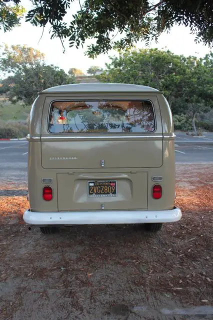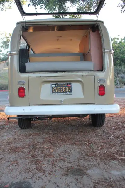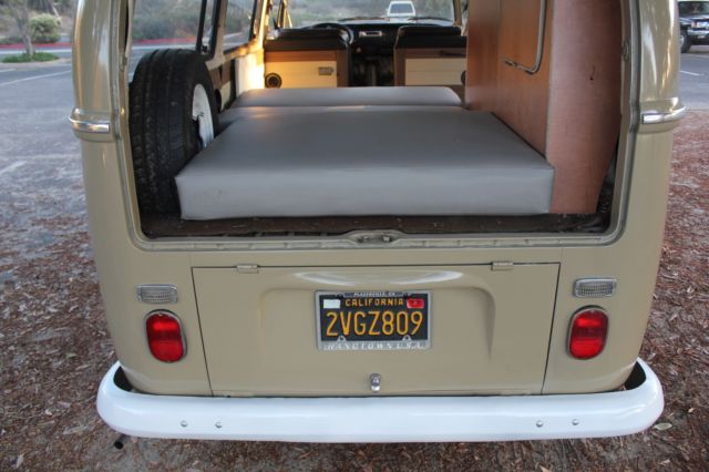 Always kept up and maintained, has been repainted in its original color Savannah Beige. I had the interior reupholstered since I have owned it. Window seals are original and dried out but I liked the old original look. New front door seals. I can include a set of Westfalia louvered side windows I bought but never installed.Long ago, the previousowners installed a Westfalia Camper kit inside- closet, Z-bed and table, making this bus the best of both worlds. Has curtain rods as well if you wanted to put some in. Original interior panels and white headliner in surprisingly good condition.Cosmetically I would say it's an 8/10- has typical wear and imperfections for its age -windshield has some pits, dash has little cracks here and there, but really perfect for daily use and in one of the most unique VW colors of the era. This bus spent almost itsentire life in the dry Placer County Region of California and has had no rust issues except under the battery tray, which has been patched (Bus Depot sells a new one for $29.95). Front floors, belly pan, doors, frame all solid.