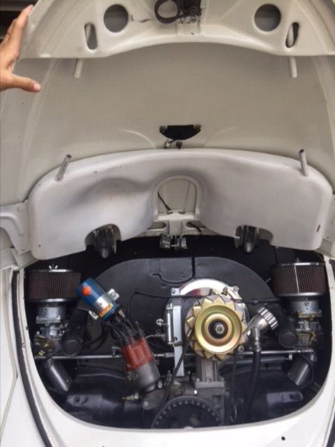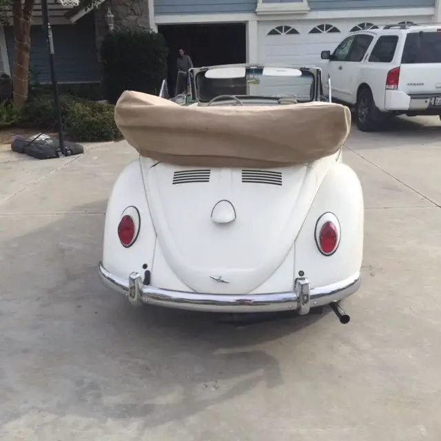 Up for sale is a 1963 karmann cabroilett vw bughas a fresh rebuilt 1915 engine with dual kadronselectric fuel pump, transmission has also been rebuil, has disc brakes ..all new bushings brake lines padsnew pirelli tires, shifting coupler was replacedeverything mechanical has either been replaced with new or it has been rebuilt making this car drive like a dream, seats were reupholstered new carpet kit, convertible top was completely rebuilt opens closes flawlesslythe bug has all new seals, it has been completely rewired using a new wire loom and new electrical components pan has been powder coated and sealedmatching pan and body.