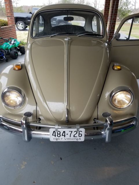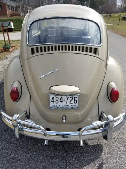 THIS IS A VERY NICE ORIGINAL 1967 BEETLE, VERY SOLID WITH THE FLOORPANS BEING ALL ORIGINAL EXCEPT BATTERY TRAY. ALWAYS GARAGED AND WELL MAINTAINED BY OLDER GENTLEMAN WHO IS NOW IN NURSING HOME. HE OWNED THIS JEWEL SINCE 1980. VERY NICE PAINT CHROME AND RUBBER TRIM ALL REDONE AND RESTORED IN THE MID 80S/ RUNS PERFECT,DRIVES AND HANDLES PERFECT,BRAKES PERFECT, VERY NICE LITTLE CAR ALL ORIGINAL INTERIOR VERY NICE SHAPE EXCEPT NEW CARPET KIT, YOU WILL NOT FIND AN ALL ORIGINAL WELL KEPT BUG FOR THIS DEAL....LOW RESERVE SET FOR FAST SALE...BID TO WIN, CAN REMOVE AT ANYTIME DUE TO BEING FOR SALE LOCALLY...CALL FOR MORE INFO, 434-770-*2845... THANKS, VINI...ALSO HAVE ORIGINAL OWNERS MANUEL WITH SERVICE RECORDS AND ORIGINAL REGISTRATION CARD SOLD NEW 3-08-1967...PRETTY COOL STUFF